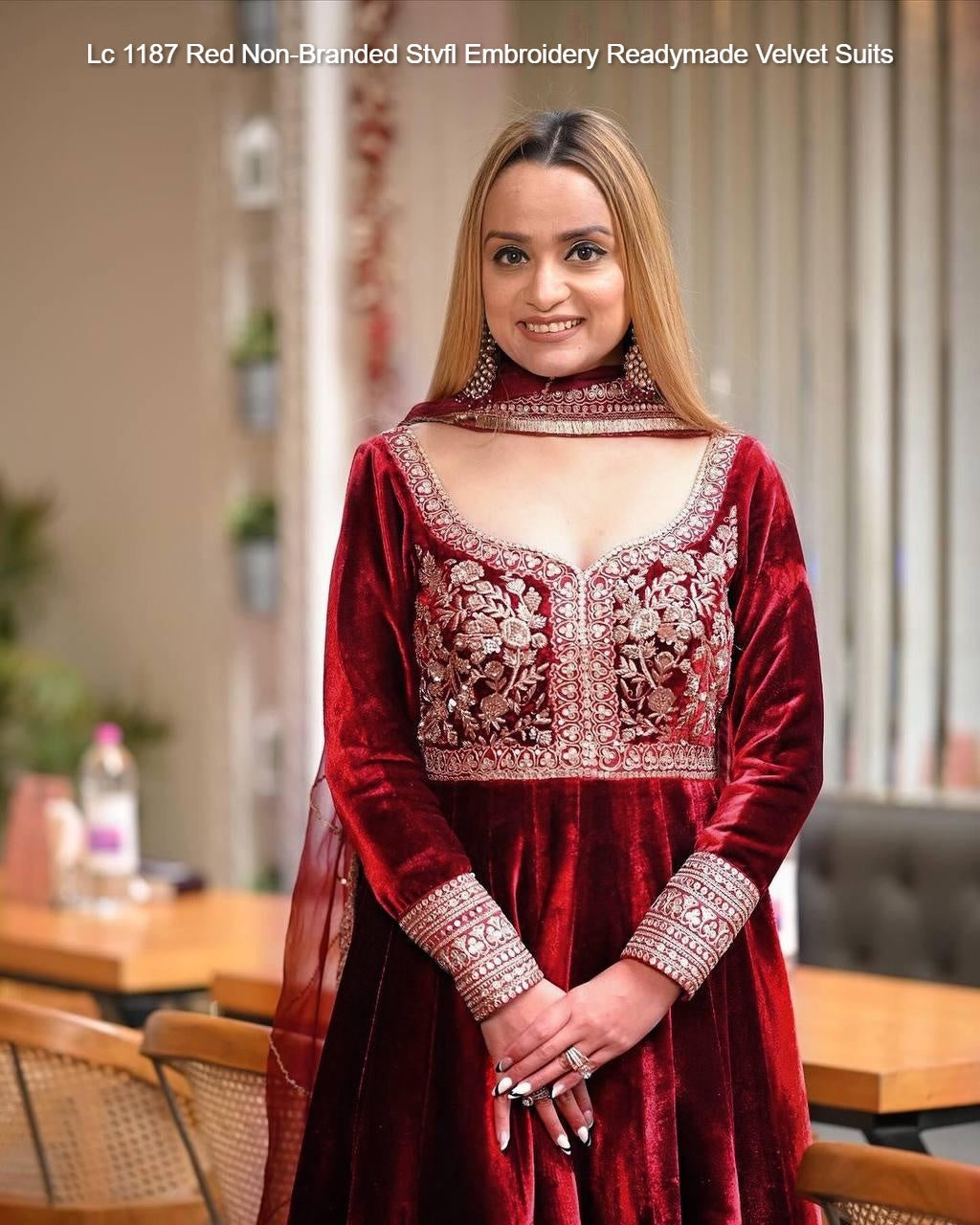 Lc 1187 Red Non-Branded Stvfl Embroidery Readymade Velvet Suits