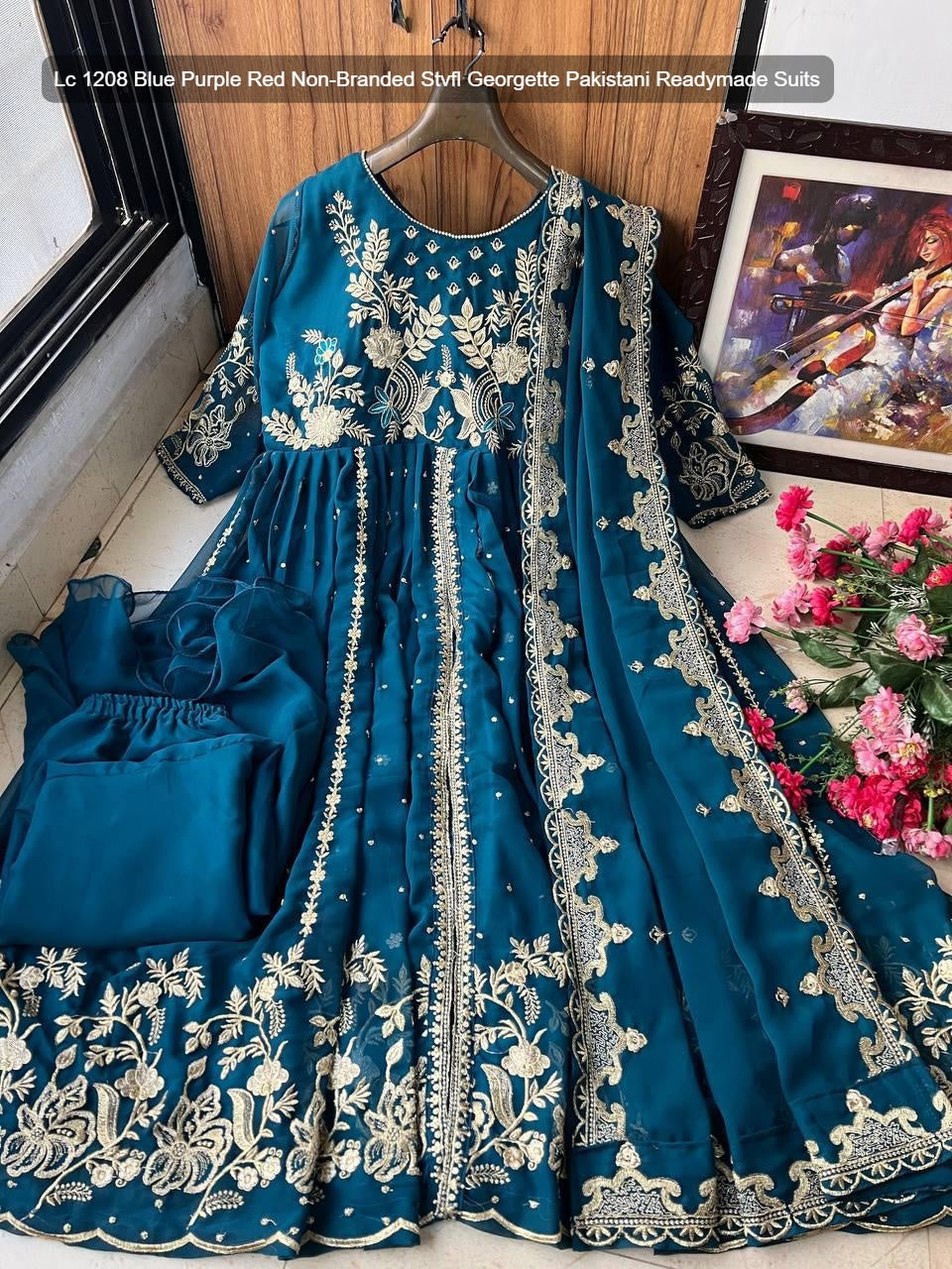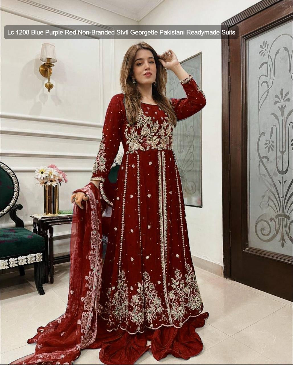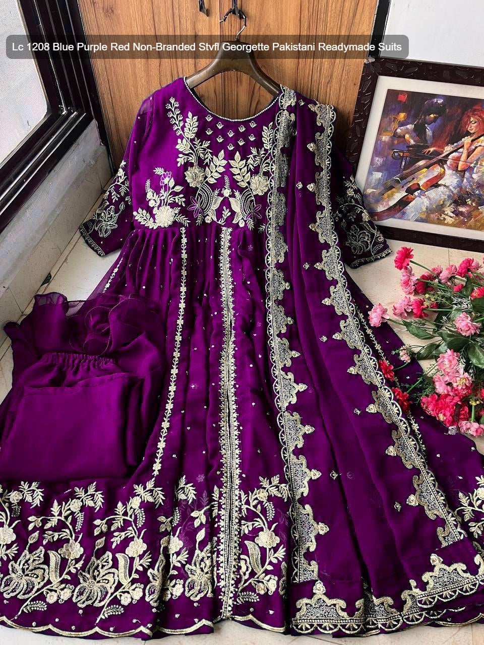 - Lc 1208 Blue Purple Red Non-Branded Stvfl Georgette Pakistani Readymade Suits Dealer Ahmedabad Surat Wholesale Gujarat India Lowest Price Best Quality Buy Purchase Shipping Kurta Salwaar Kameez Also free Cash on delivery