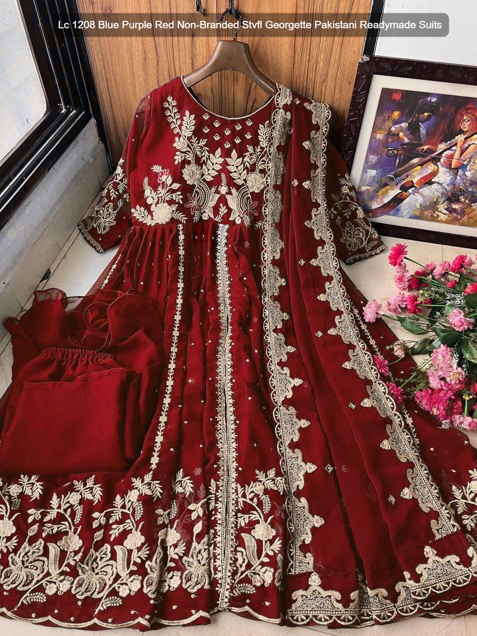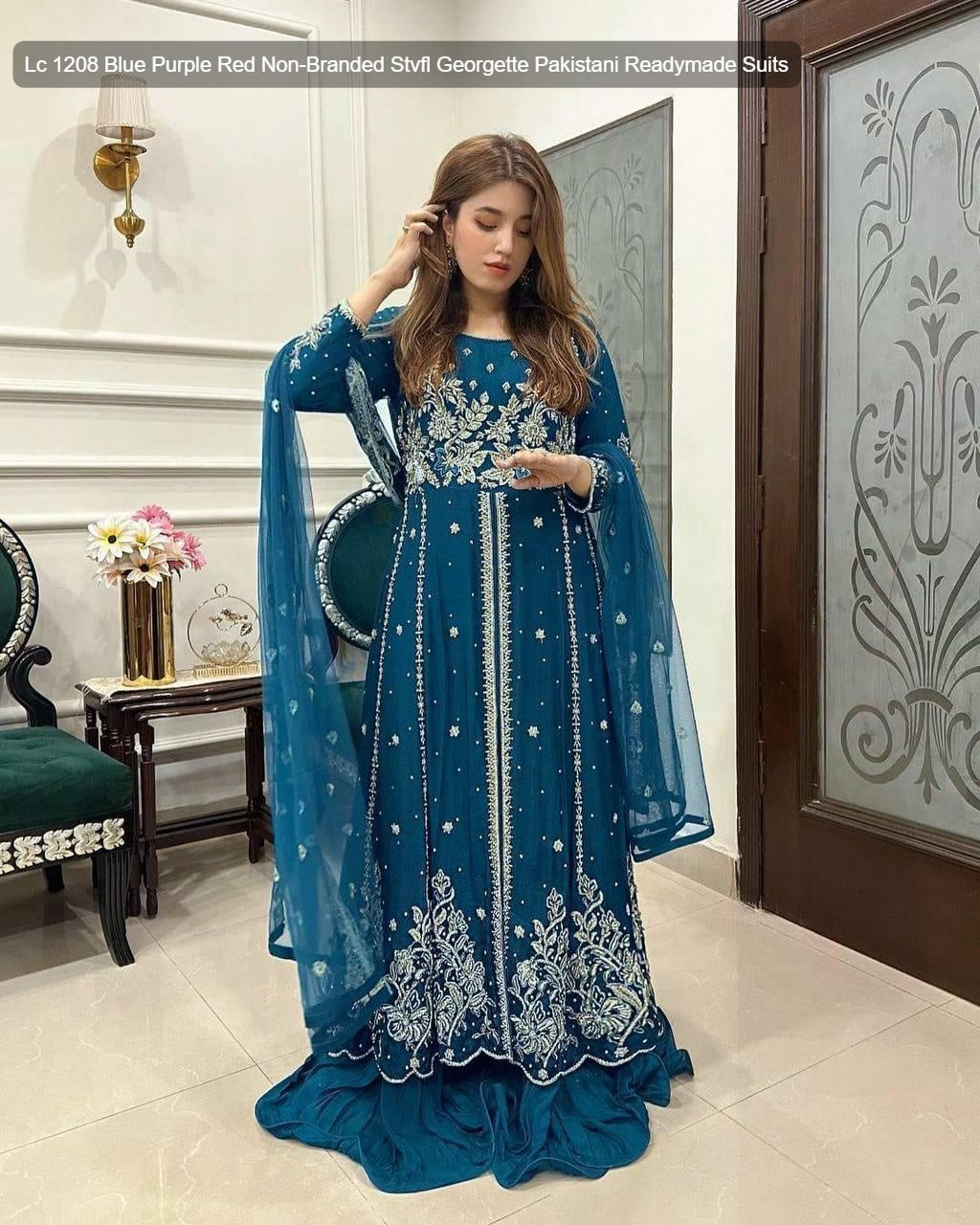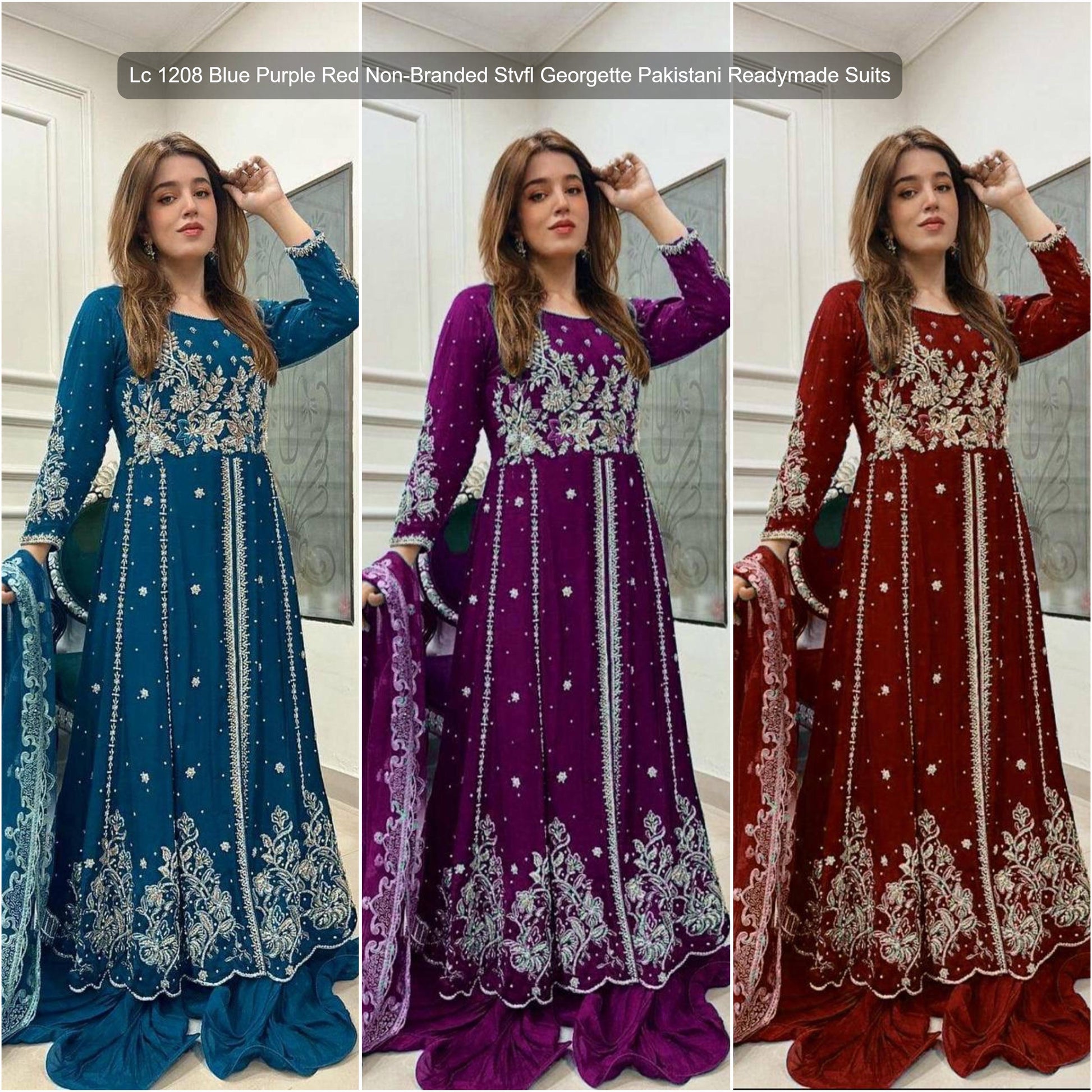 Lc 1208 Blue Purple Red Non-Branded Stvfl Georgette Pakistani Readymade Suits
