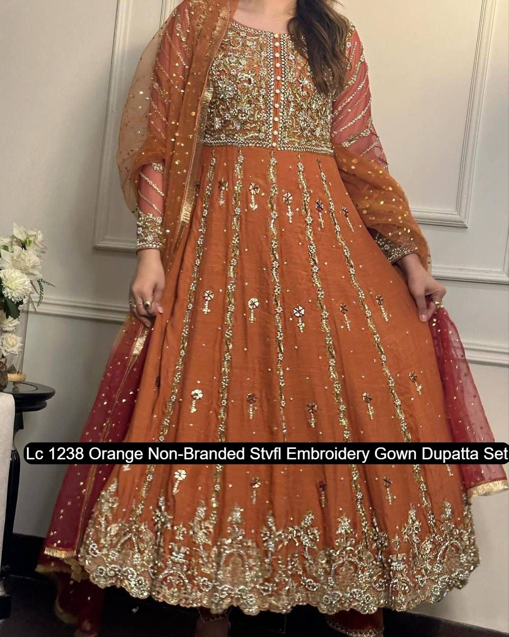 Lc 1238 Orange Non-Branded Stvfl Embroidery Gown Dupatta Set