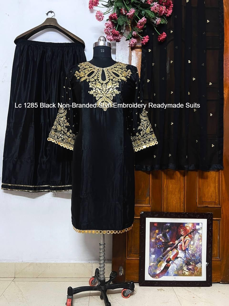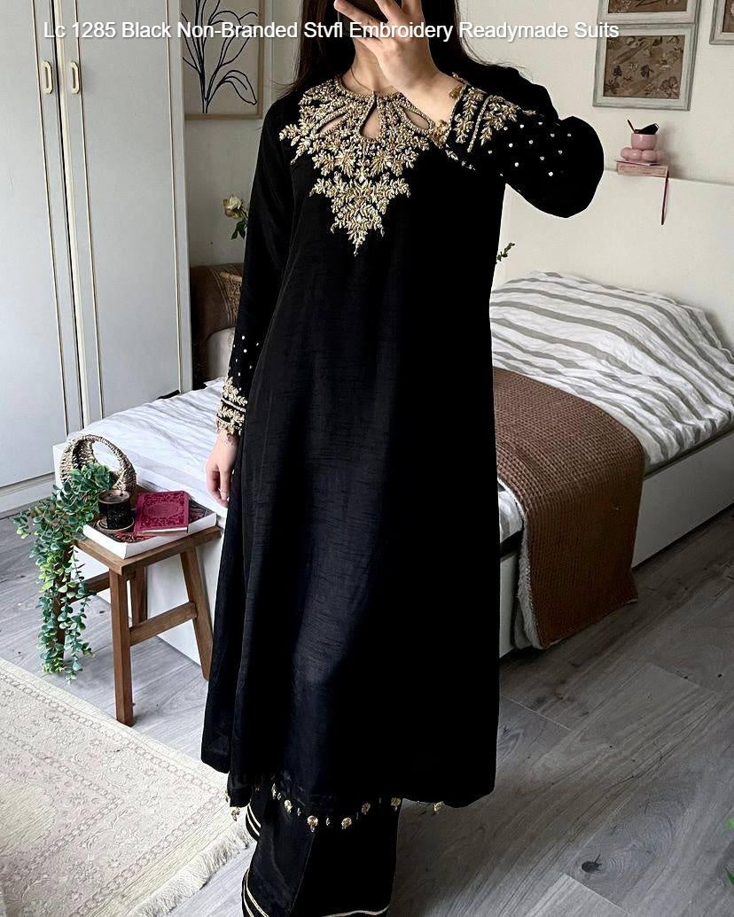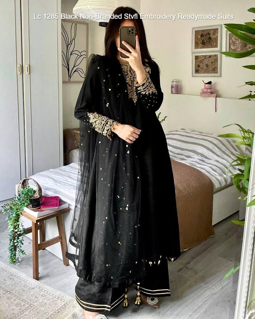 Lc 1285 Black Non-Branded Stvfl Embroidery Readymade Suits
