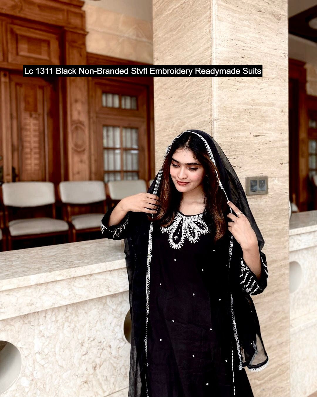 Lc 1311 Black Non-Branded Stvfl Embroidery Readymade Suits