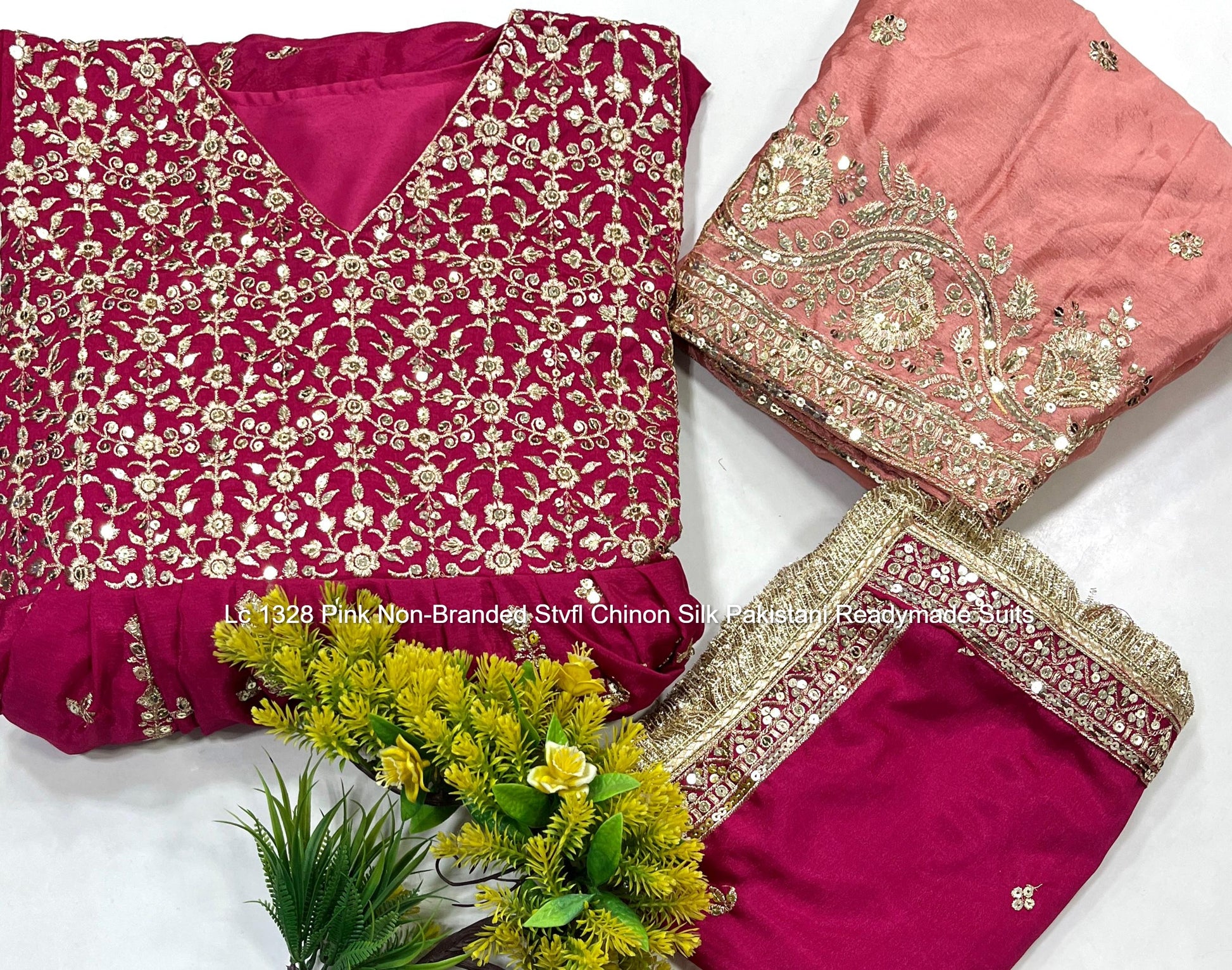 Lc 1328 Pink Non-Branded Stvfl Chinon Silk Pakistani Readymade Suits