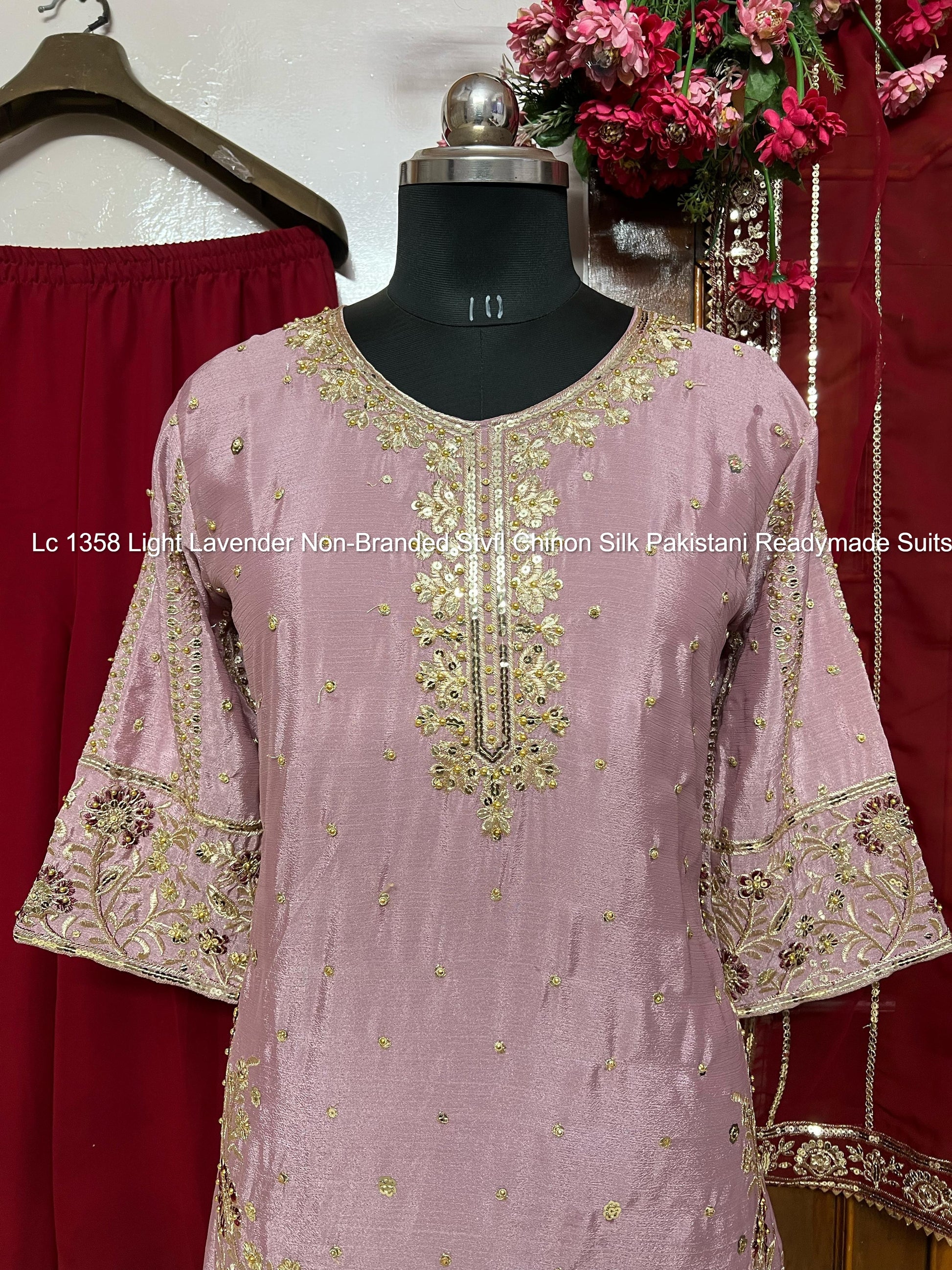Lc 1358 Light Lavender Non-Branded Stvfl Chinon Silk Pakistani Readymade Suits