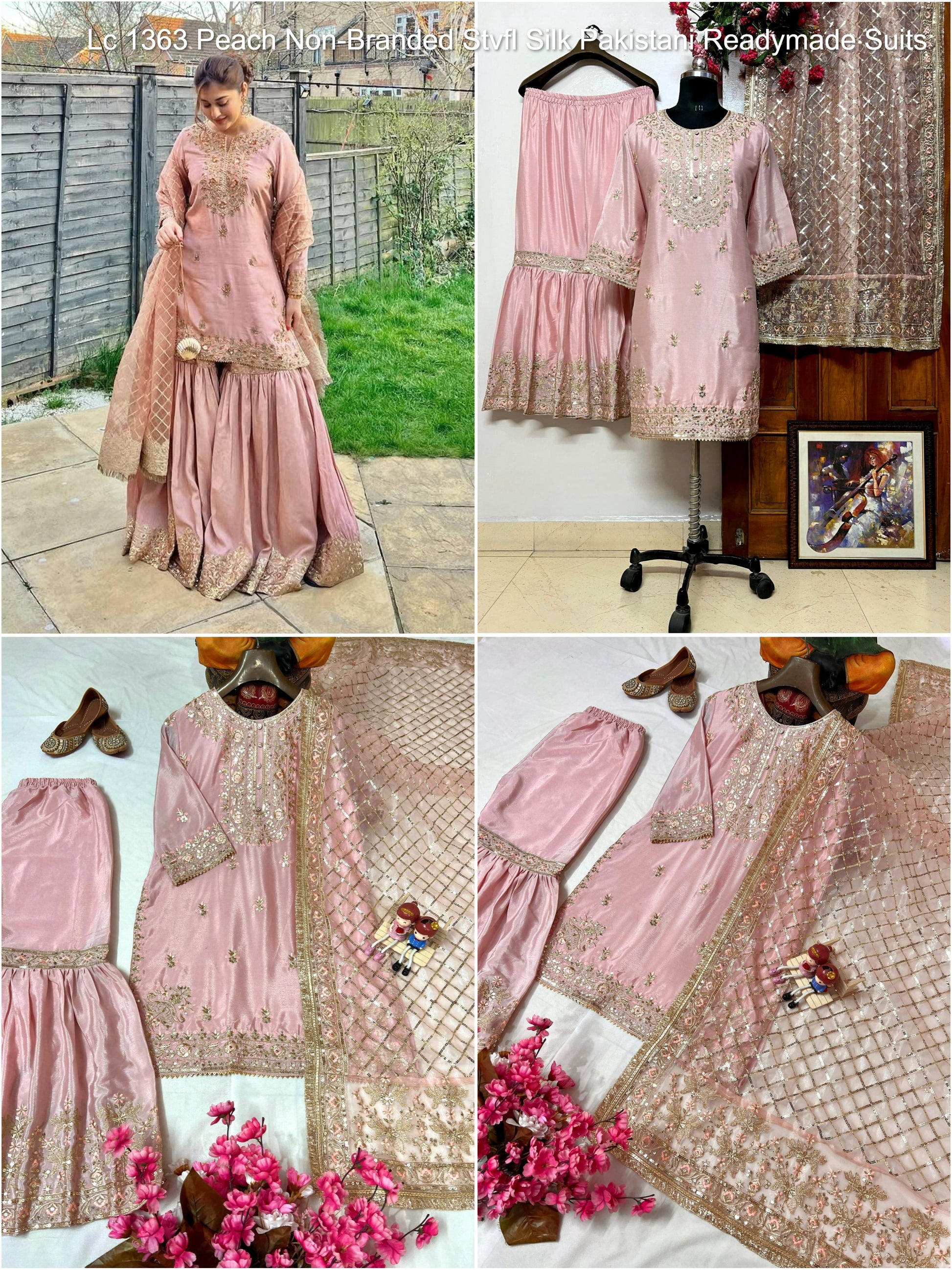 - Lc 1363 Peach Non-Branded Stvfl Silk Pakistani Readymade Suits Dealer Ahmedabad Surat Wholesale Gujarat India Lowest Price Best Quality Buy Purchase Shipping Kurta Salwaar Kameez Also free Cash on delivery