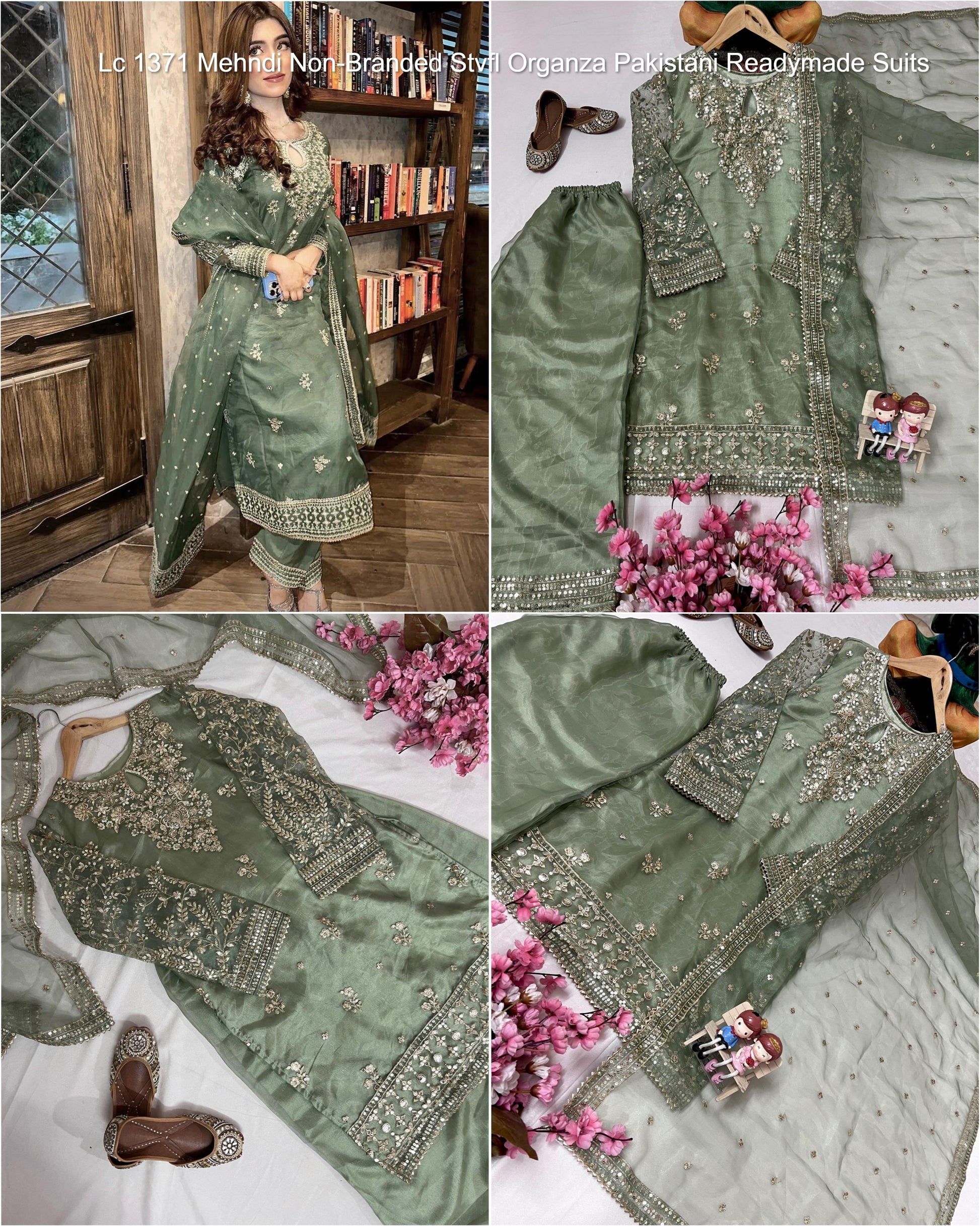 - Lc 1371 Mehndi Non-Branded Stvfl Organza Pakistani Readymade Suits Dealer Ahmedabad Surat Wholesale Gujarat India Lowest Price Best Quality Buy Purchase Shipping Kurta Salwaar Kameez Also free Cash on delivery