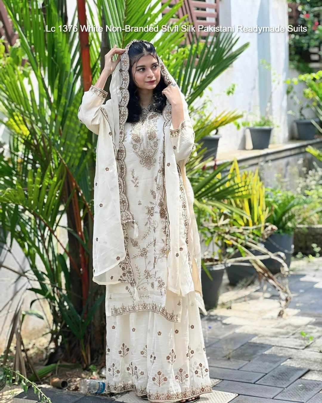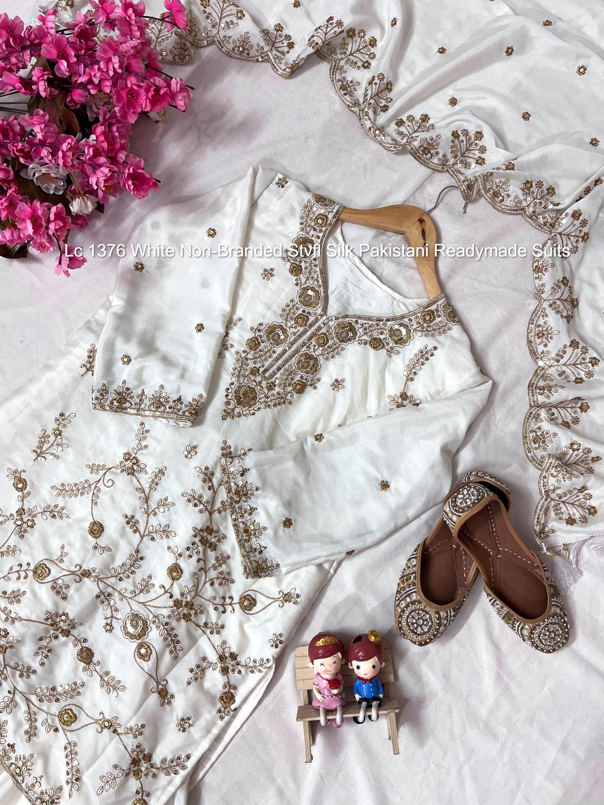 Lc 1376 White Non-Branded Stvfl Silk Pakistani Readymade Suits