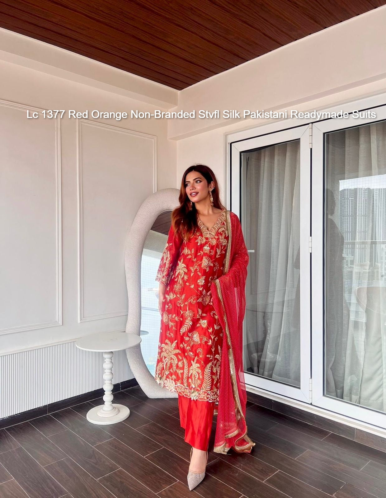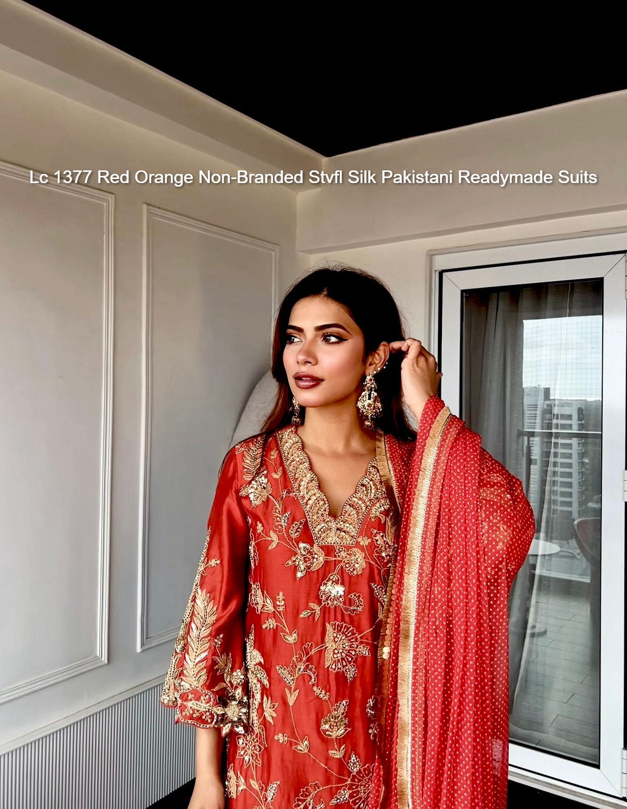 Lc 1377 Red Orange Non-Branded Stvfl Silk Pakistani Readymade Suits