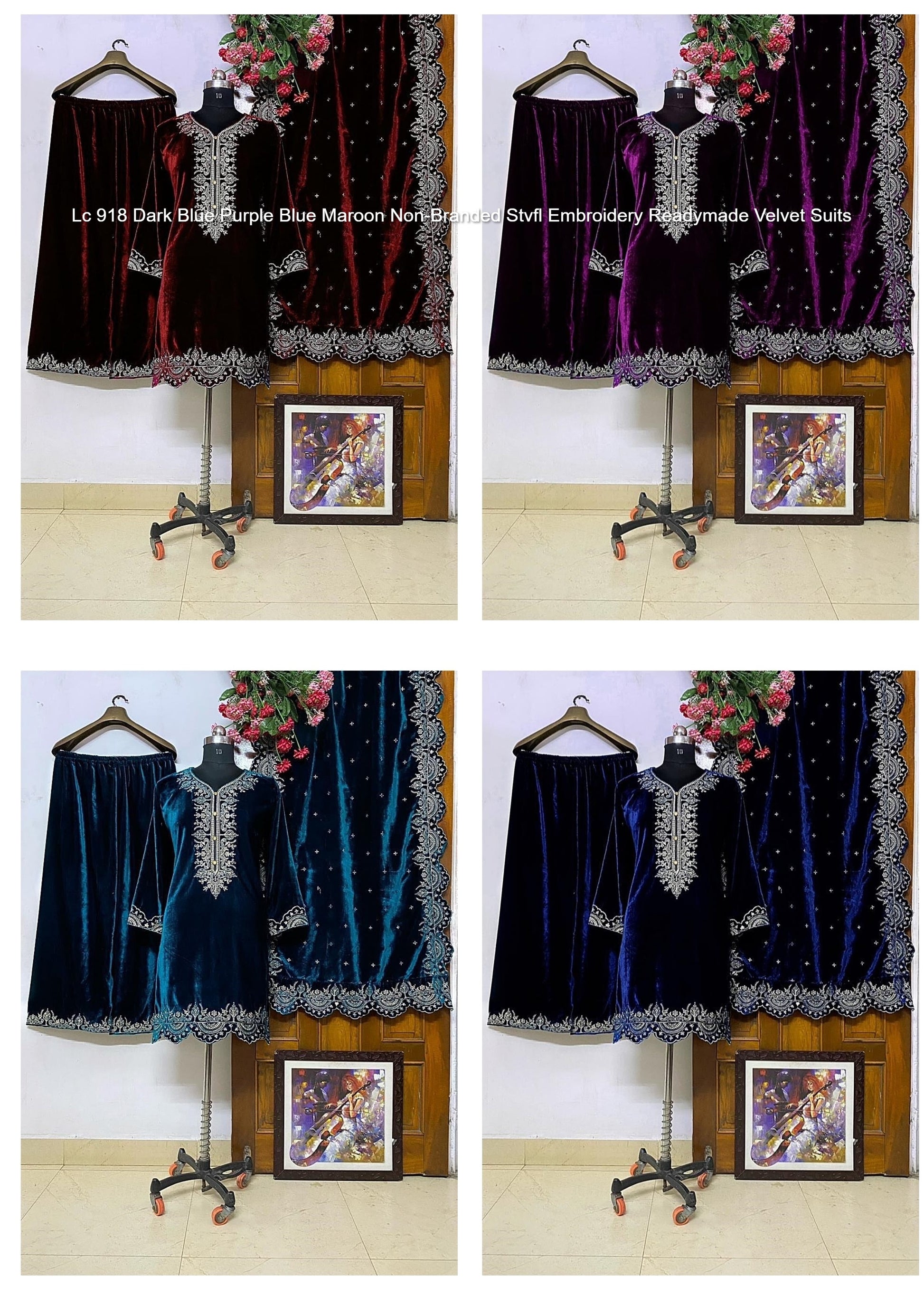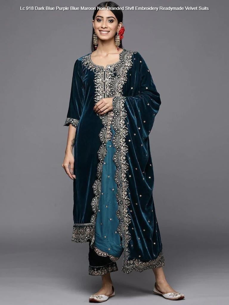 Lc 918 Dark Blue Purple Blue Maroon Non-Branded Stvfl Embroidery Readymade Velvet Suits