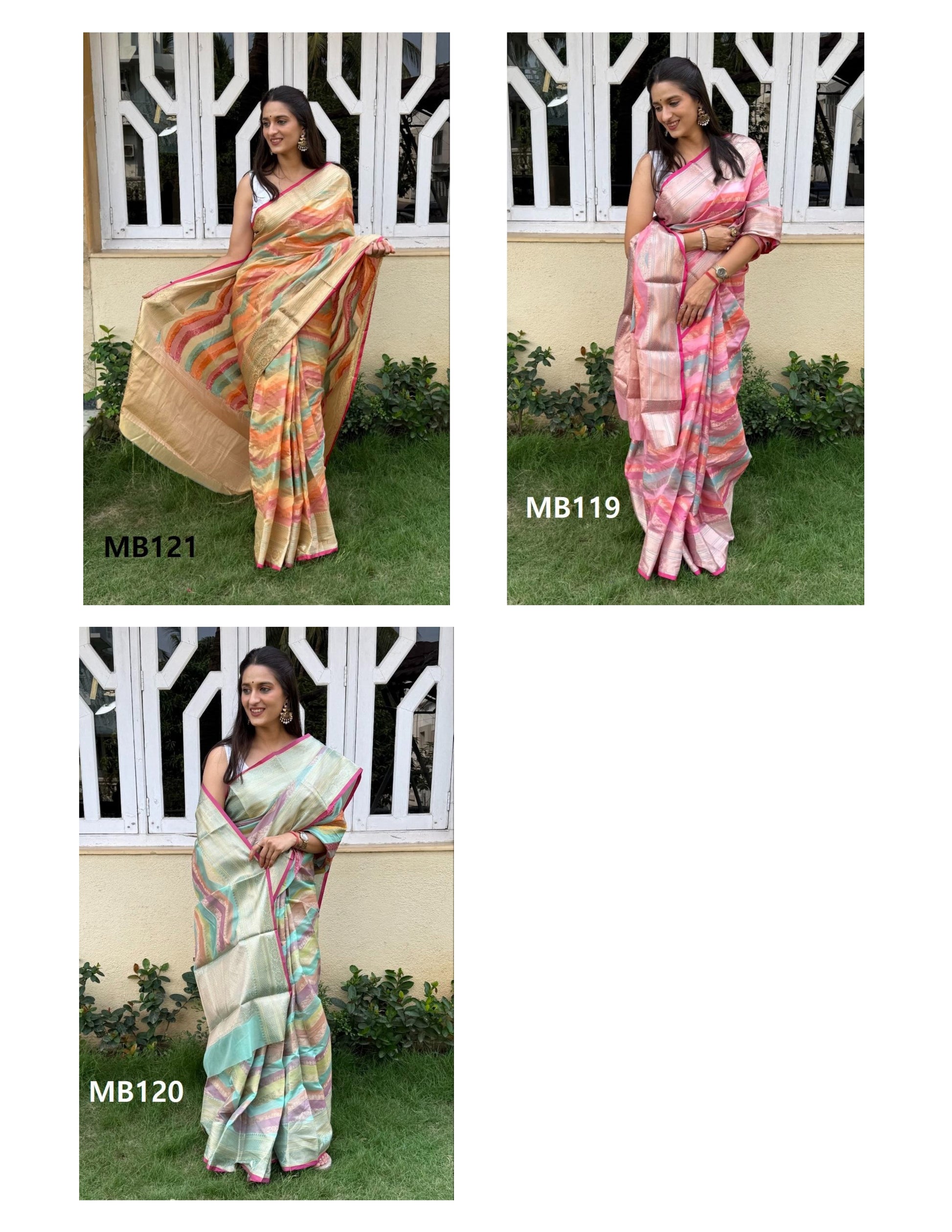 - Fabric Detail: Super Fancy Silk All Over Weaving Lehariya Pettern Crepe Silk Saree , ( Series : Mb119, Mb120, Mb121 ) , ,