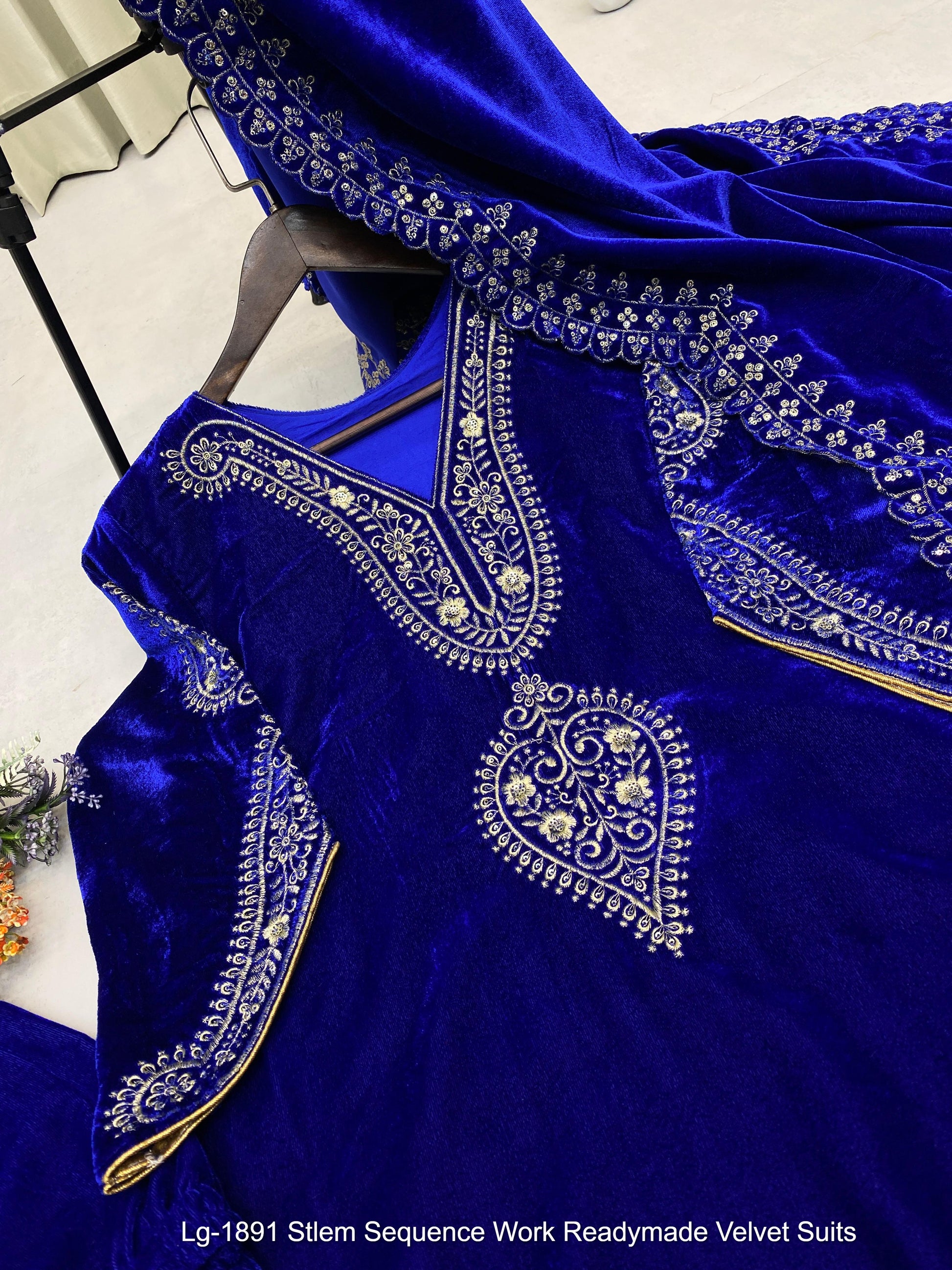 Lg-1891 Stlem Sequence Work Readymade Velvet Suits