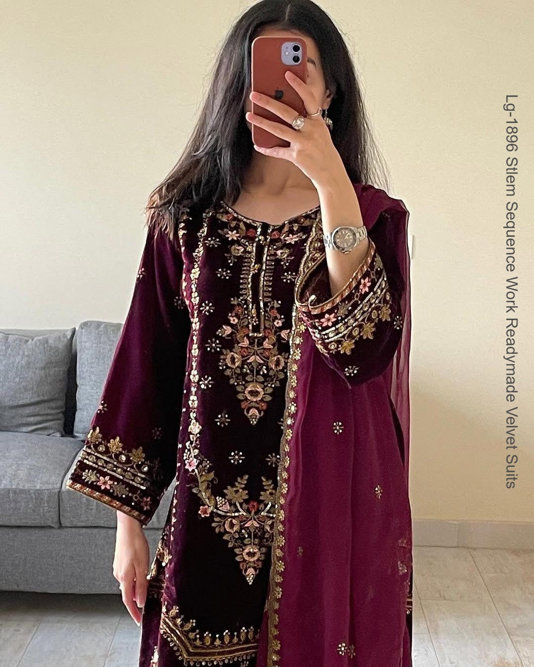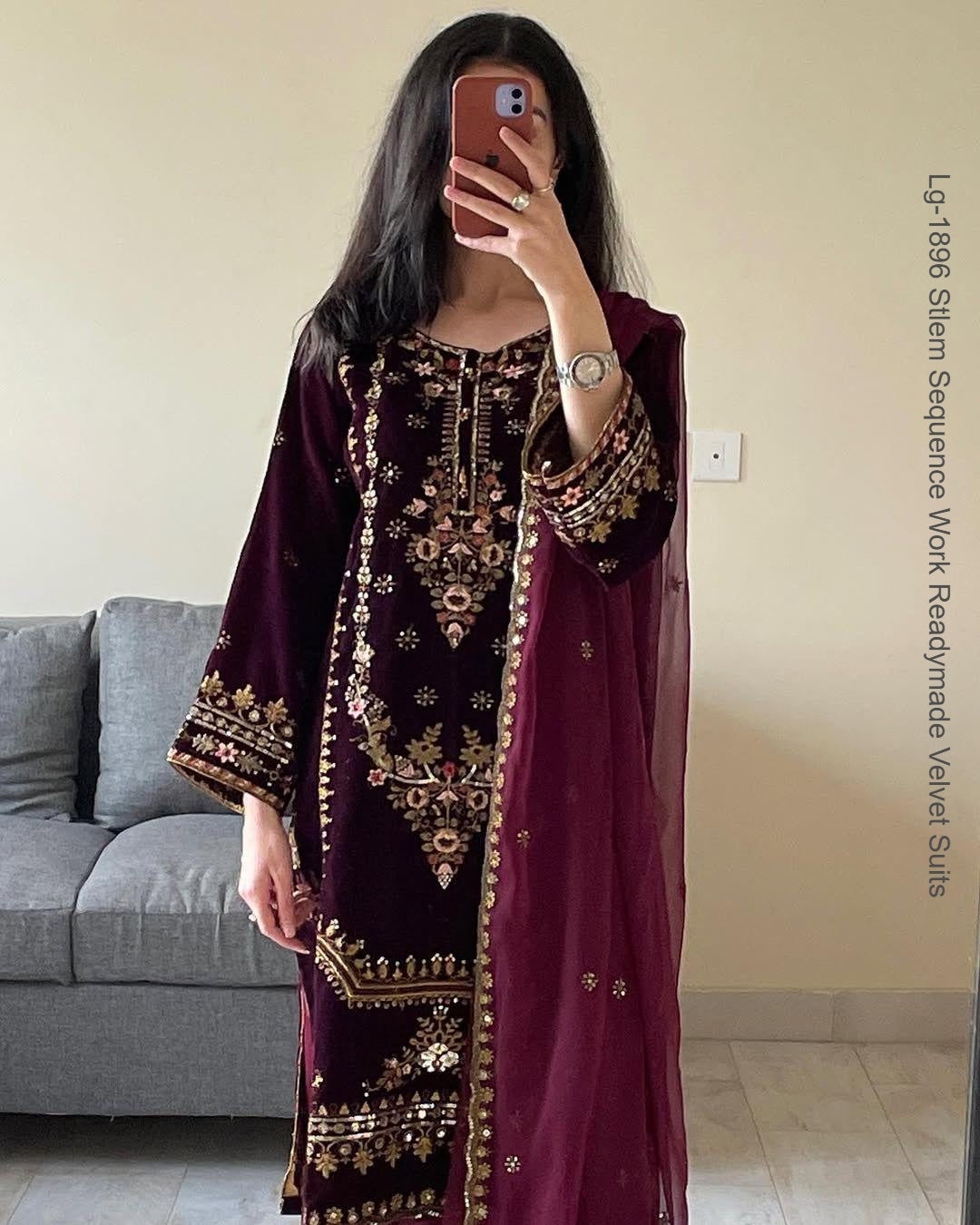 - Lg-1896 Stlem Sequence Work Readymade Velvet Suits Dealer Ahmedabad Surat Wholesale Gujarat India Lowest Price Best Quality Buy Purchase Shipping Kurta Salwaar Kameez Also free Cash on delivery