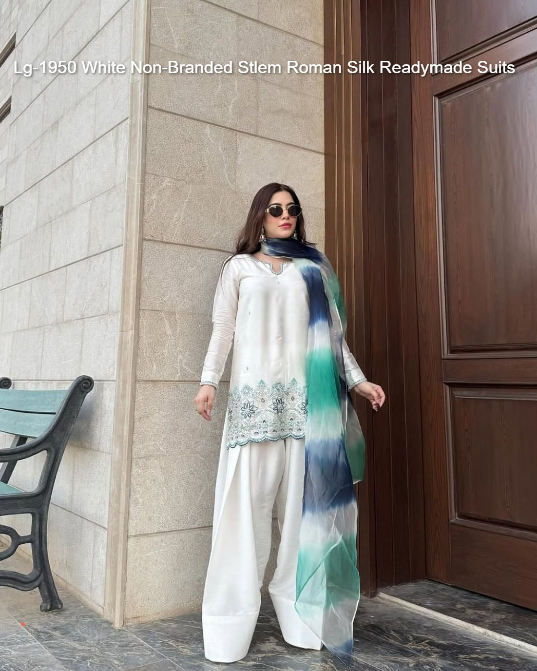 - Lg-1950 White Non-Branded Stlem Roman Silk Readymade Suits Dealer Ahmedabad Surat Wholesale Gujarat India Lowest Price Best Quality Buy Purchase Shipping Kurta Salwaar Kameez Also free Cash on delivery