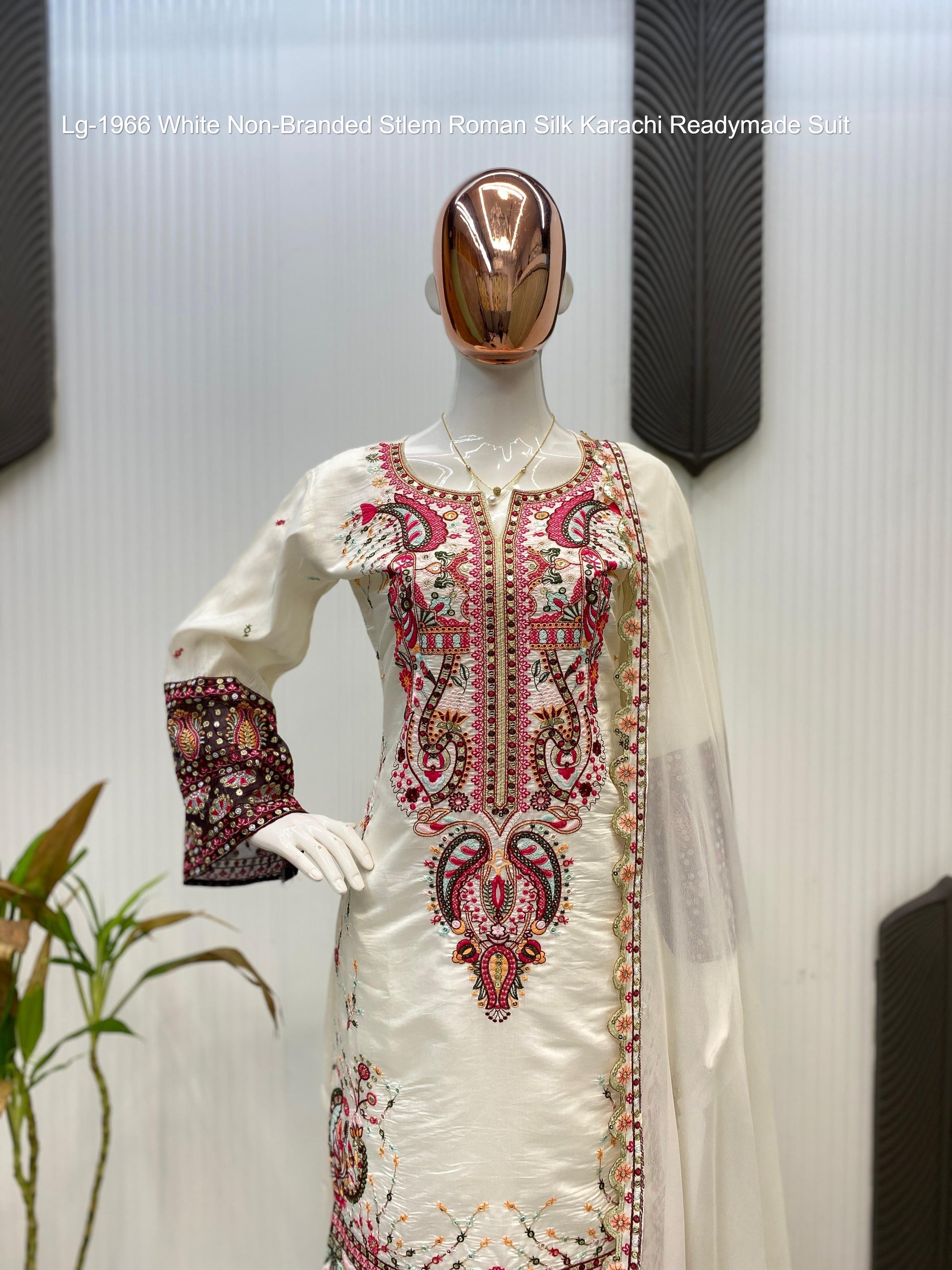 - Lg-1966 White Non-Branded Stlem Roman Silk Karachi Readymade Suit Dealer Ahmedabad Surat Wholesale Gujarat India Lowest Price Best Quality Buy Purchase Shipping Kurta Salwaar Kameez Also free Cash on delivery