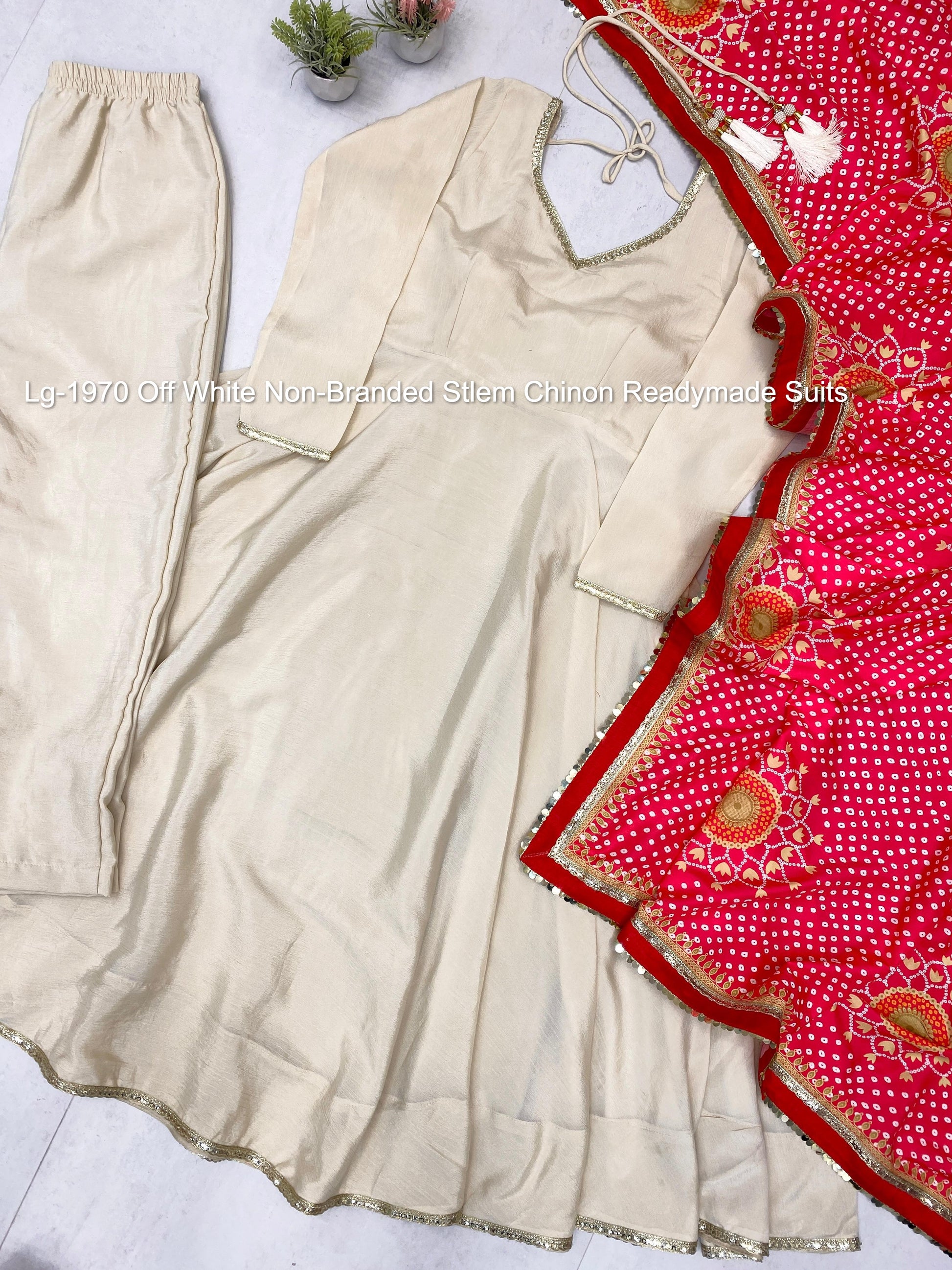 - Lg-1970 Off White Non-Branded Stlem Chinon Readymade Suits Dealer Ahmedabad Surat Wholesale Gujarat India Lowest Price Best Quality Buy Purchase Shipping Kurta Salwaar Kameez Also free Cash on delivery