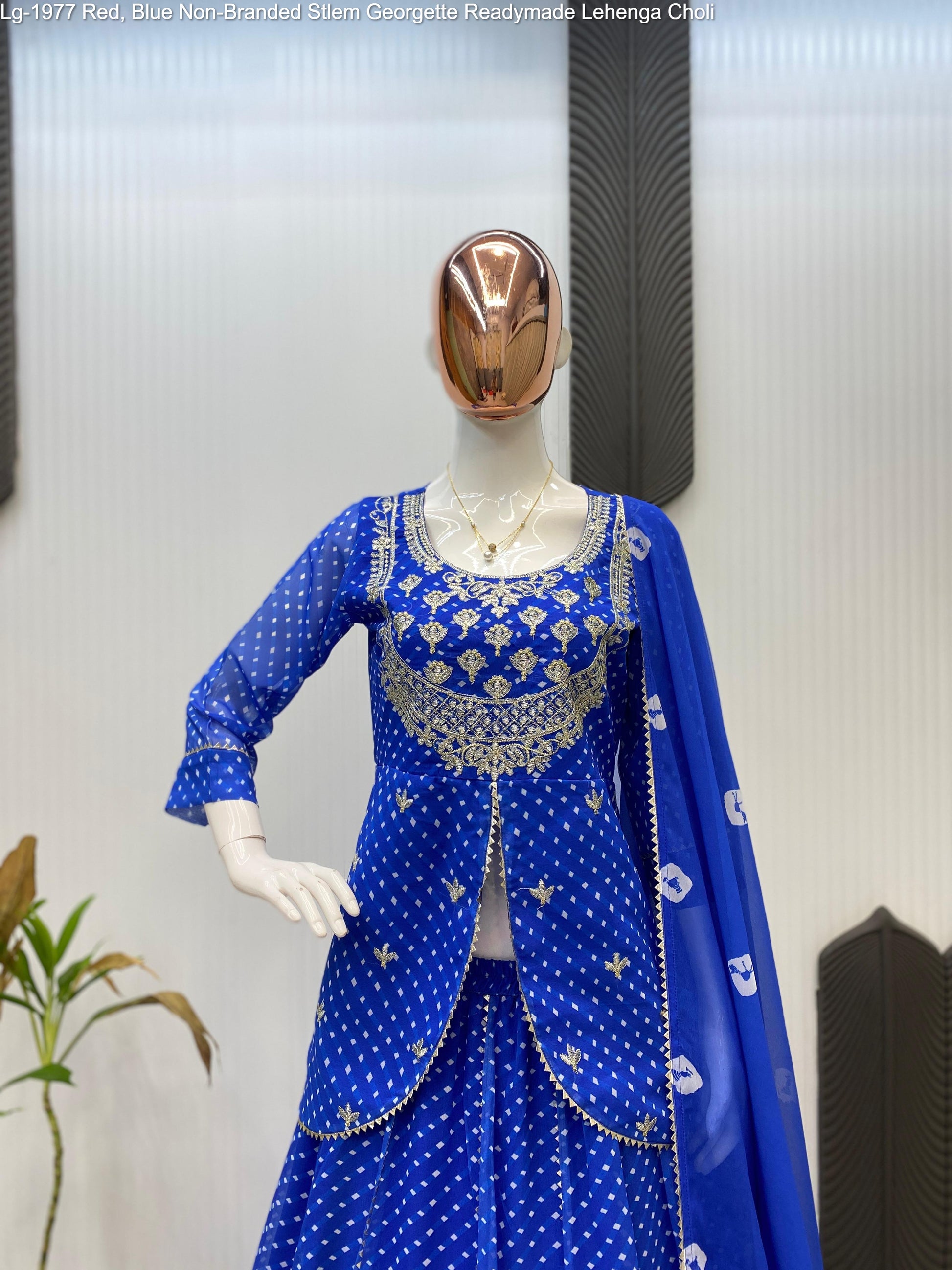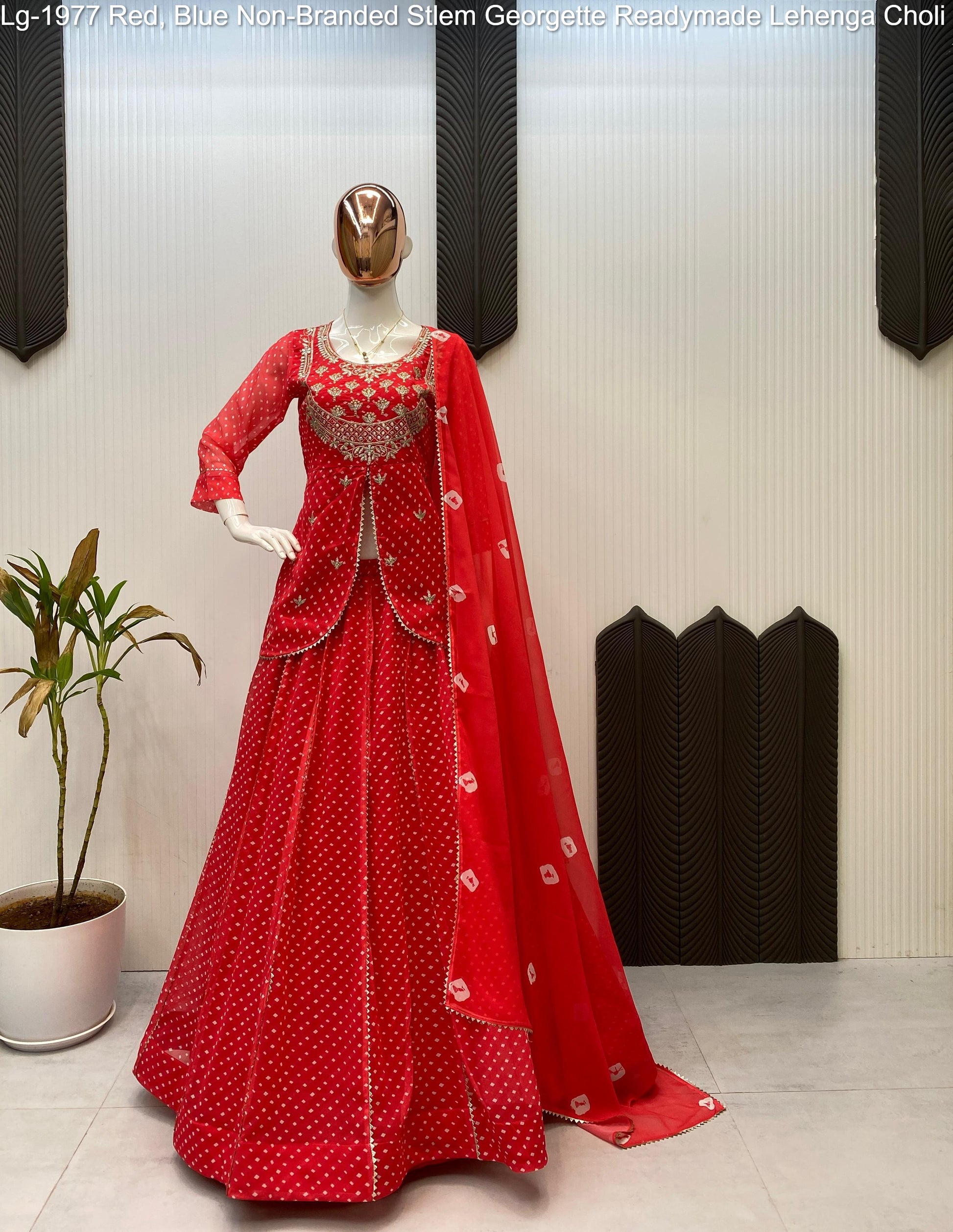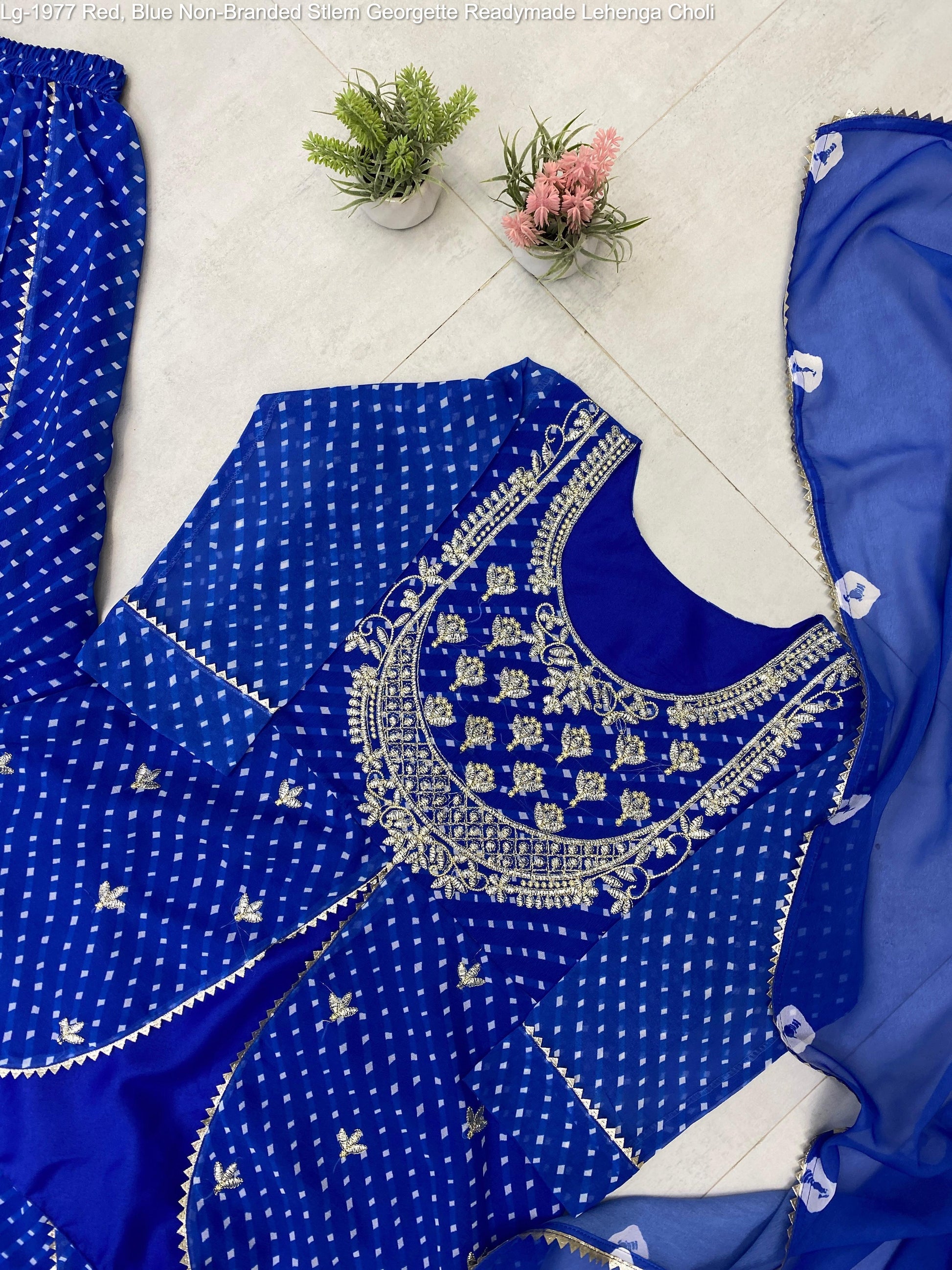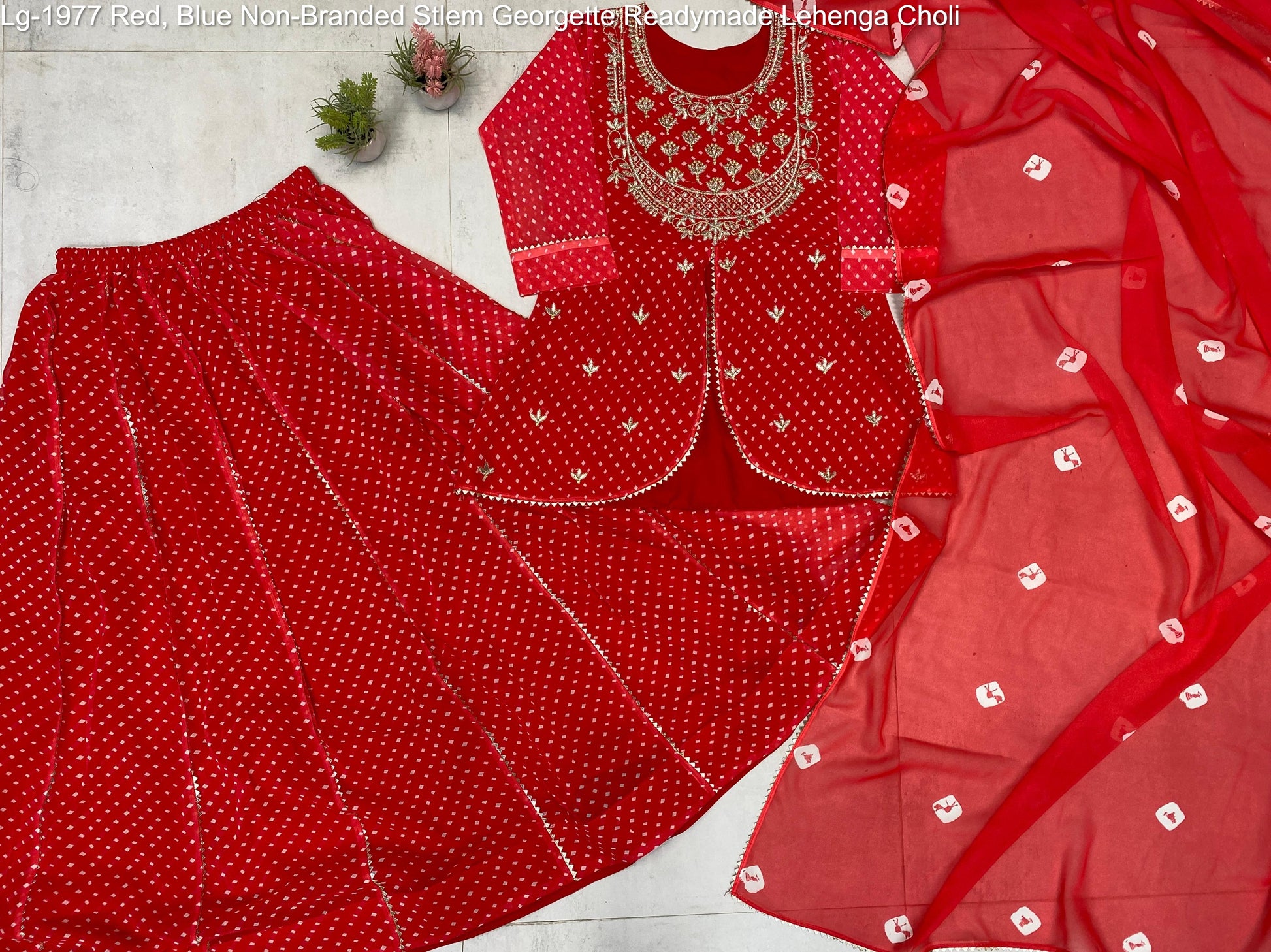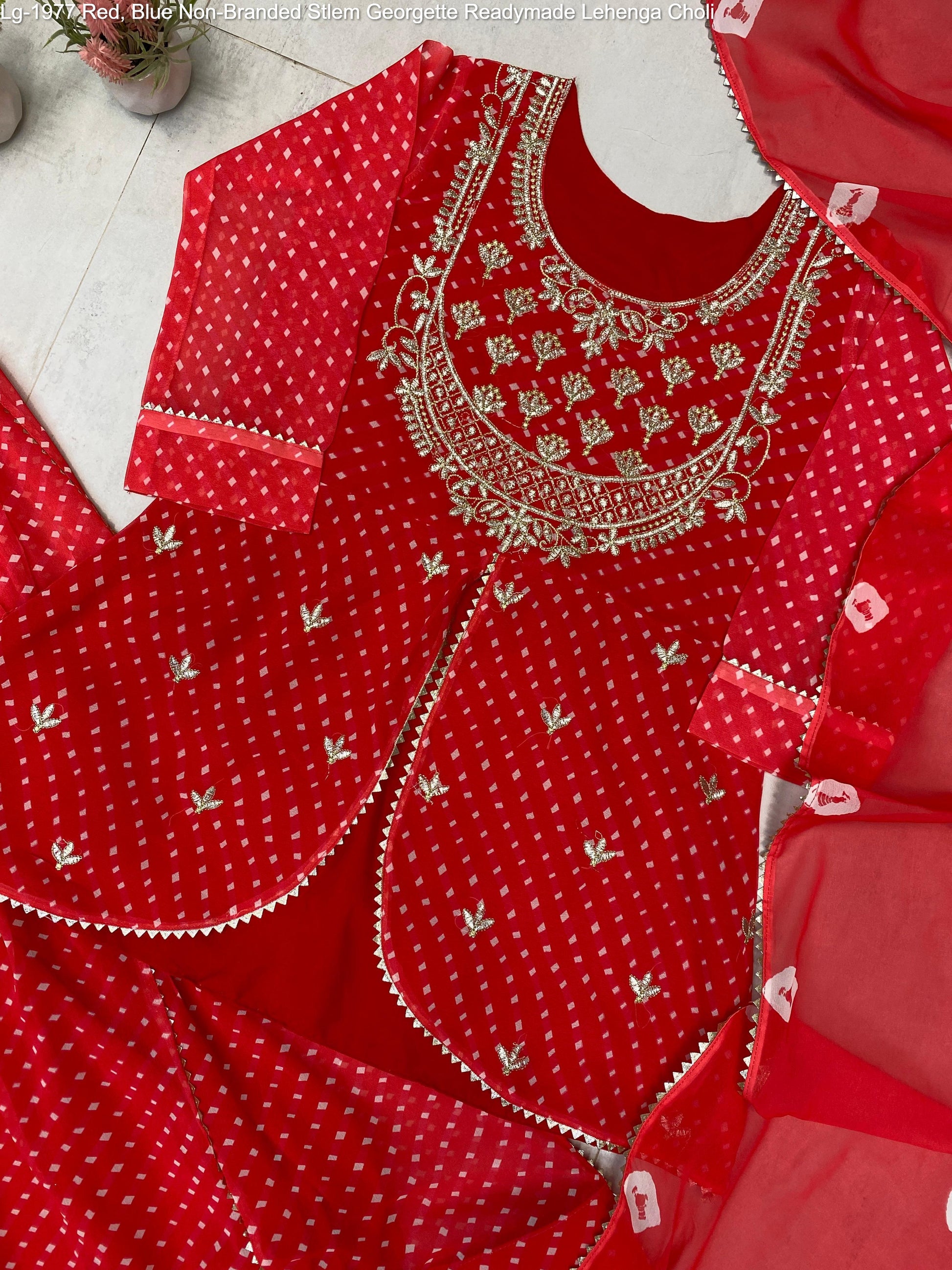 - Lg-1977 Red, Blue Non-Branded Stlem Georgette Readymade Lehenga Choli Dealer Ahmedabad Surat Wholesale Gujarat India Lowest Price Best Quality Buy Purchase Shipping Kurta Salwaar Kameez Also free Cash on delivery