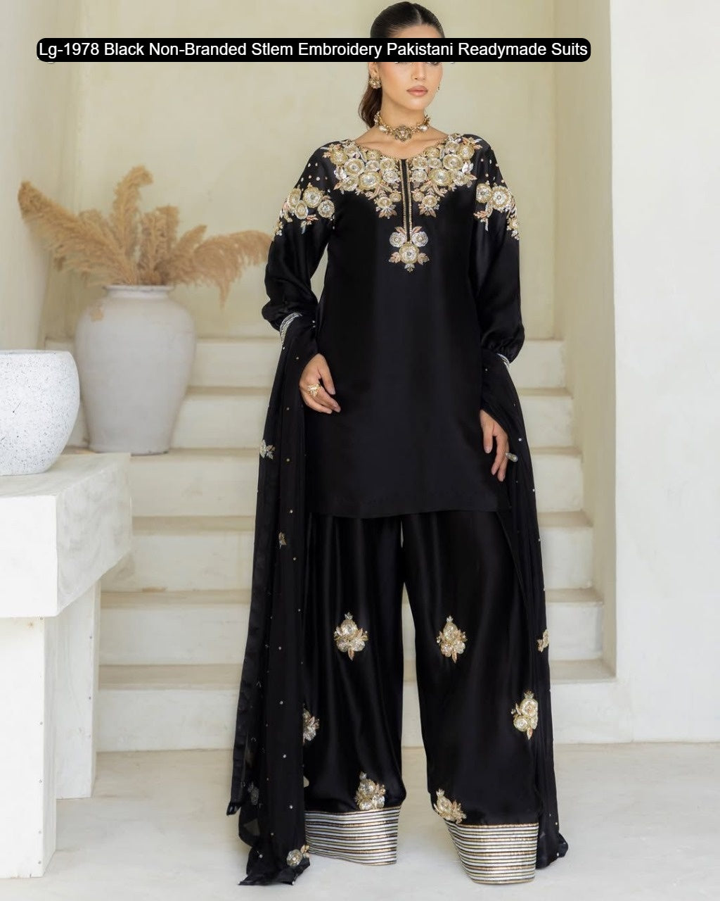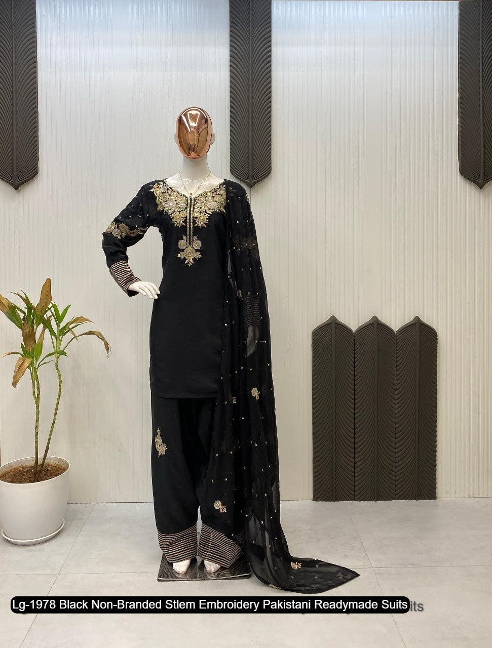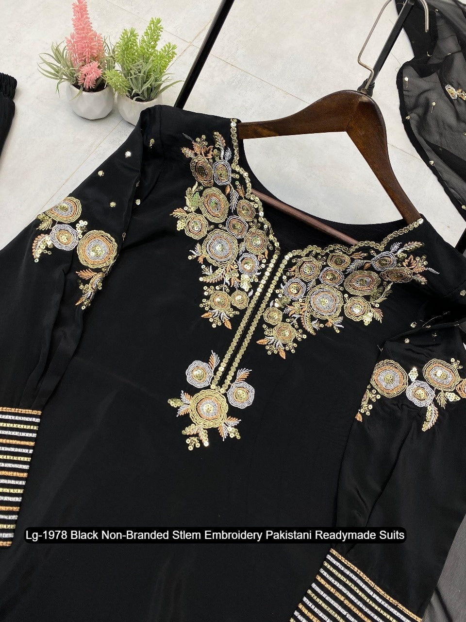 Lg-1978 Black Non-Branded Stlem Embroidery Pakistani Readymade Suits