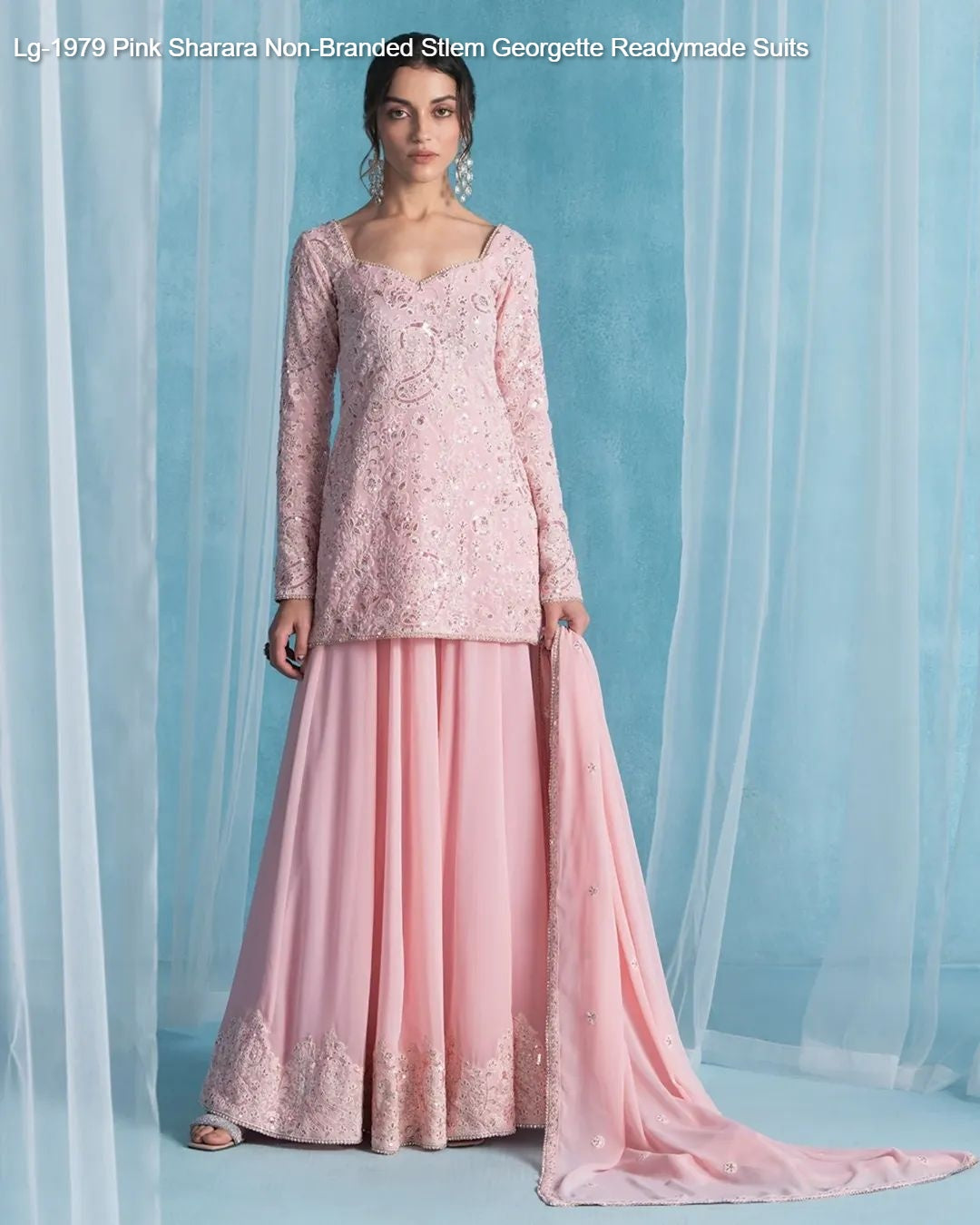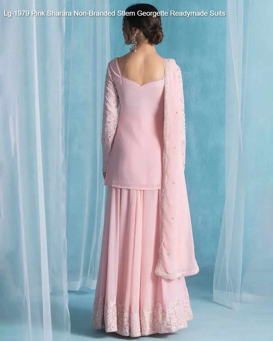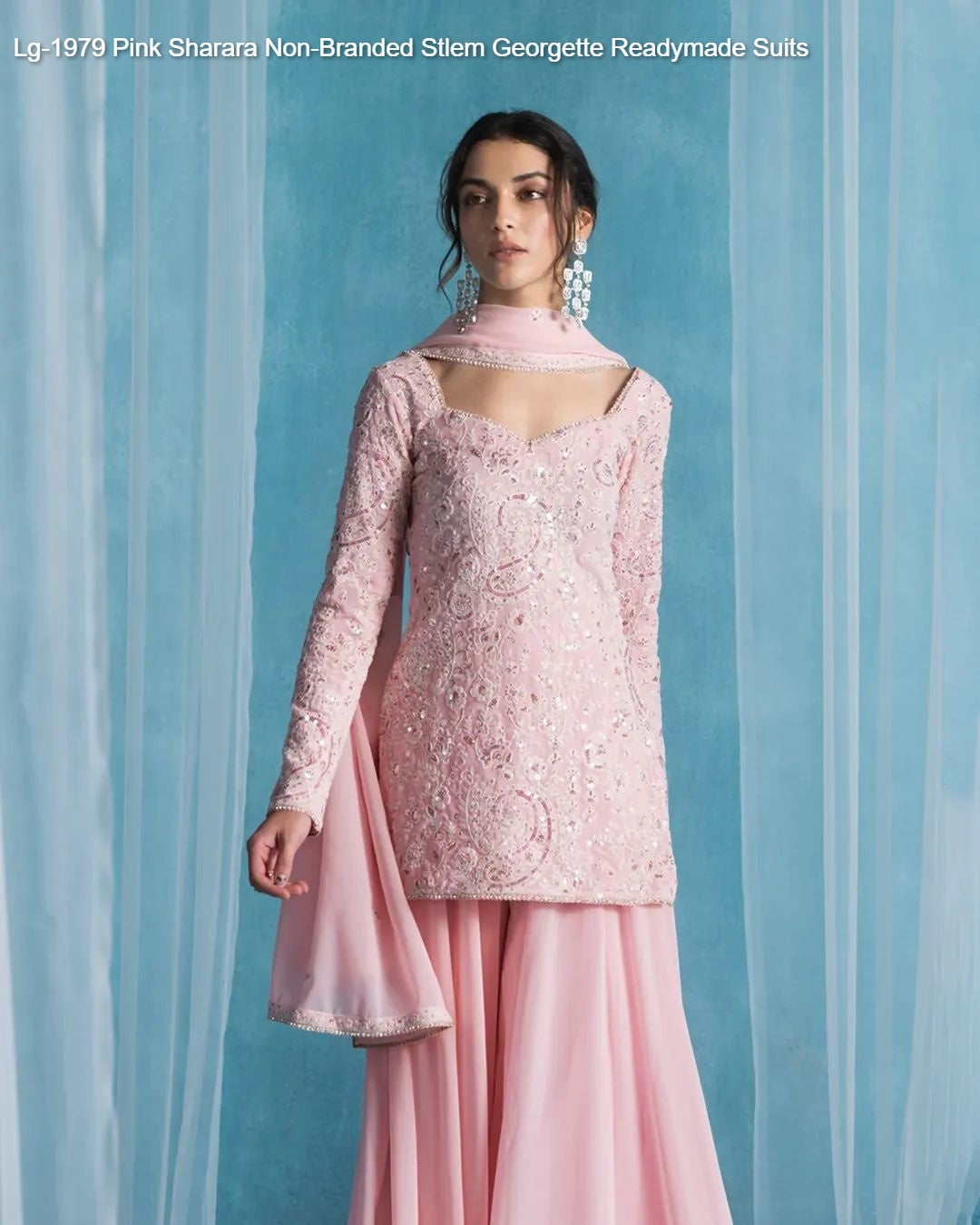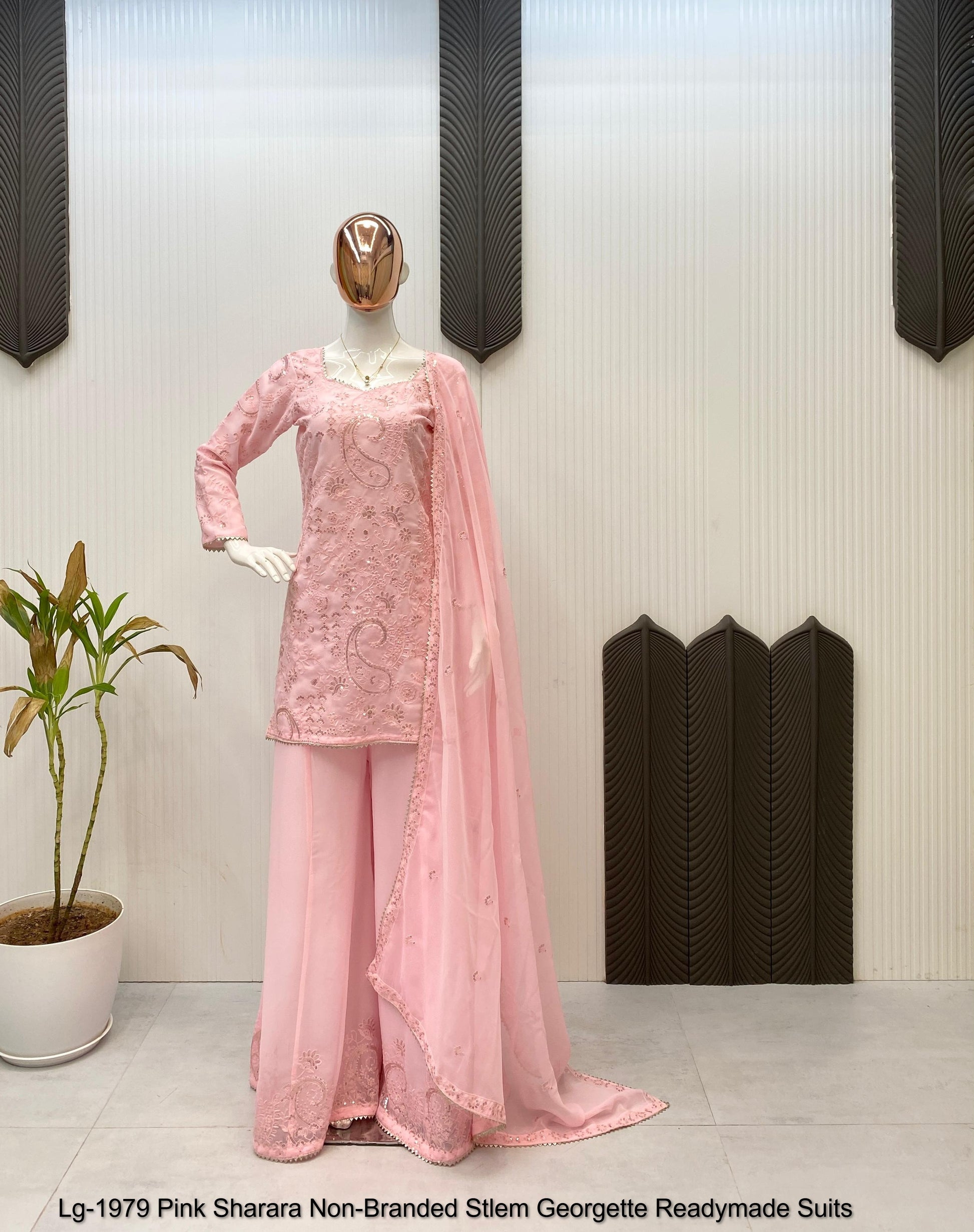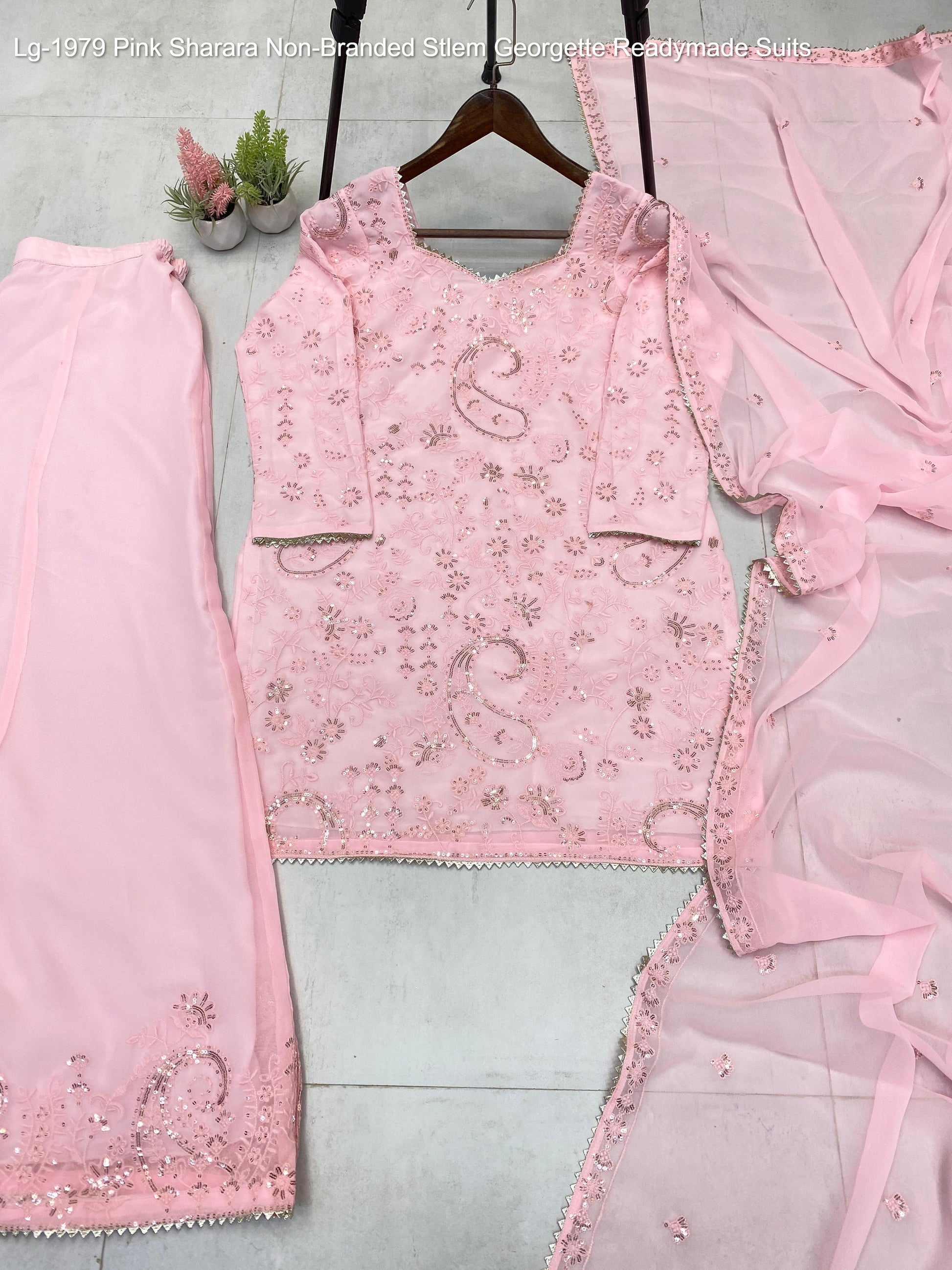 Lg-1979 Pink Sharara Non-Branded Stlem Georgette Readymade Suits