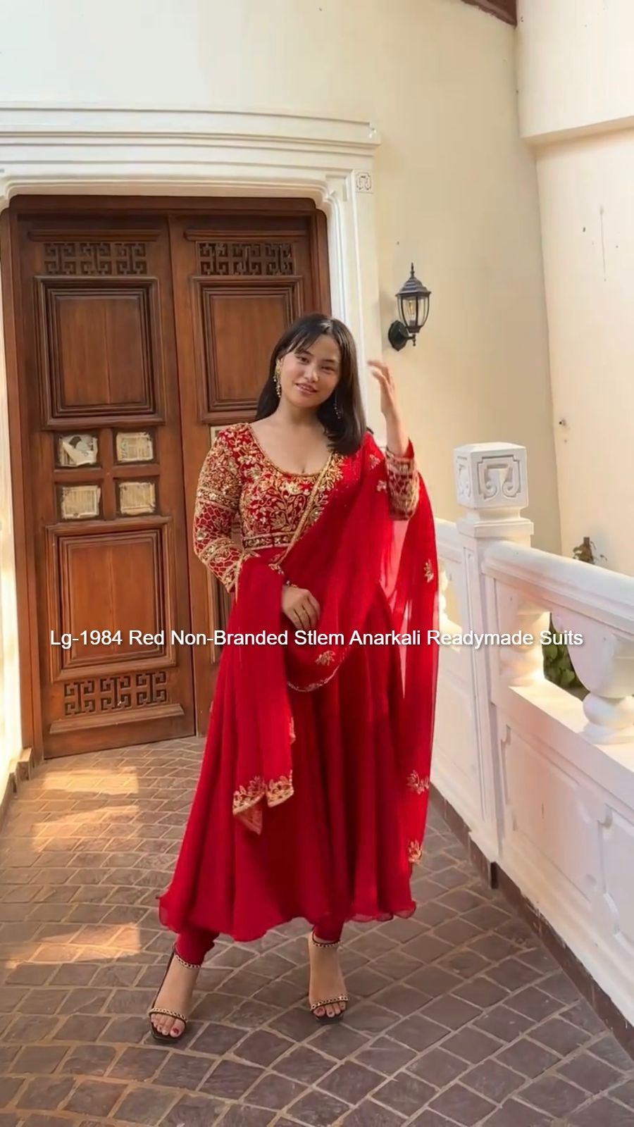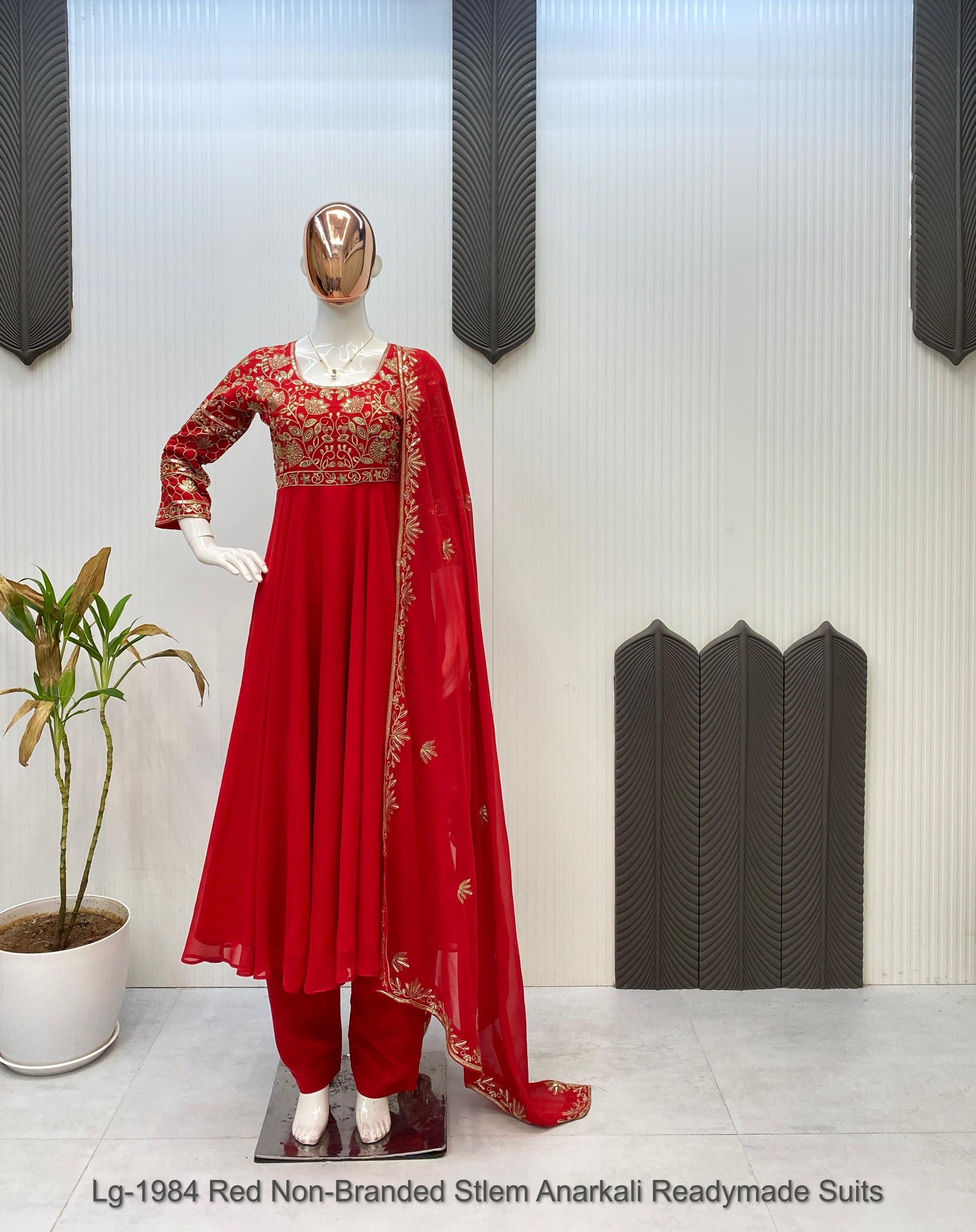 Lg-1984 Red Non-Branded Stlem Anarkali Readymade Suits