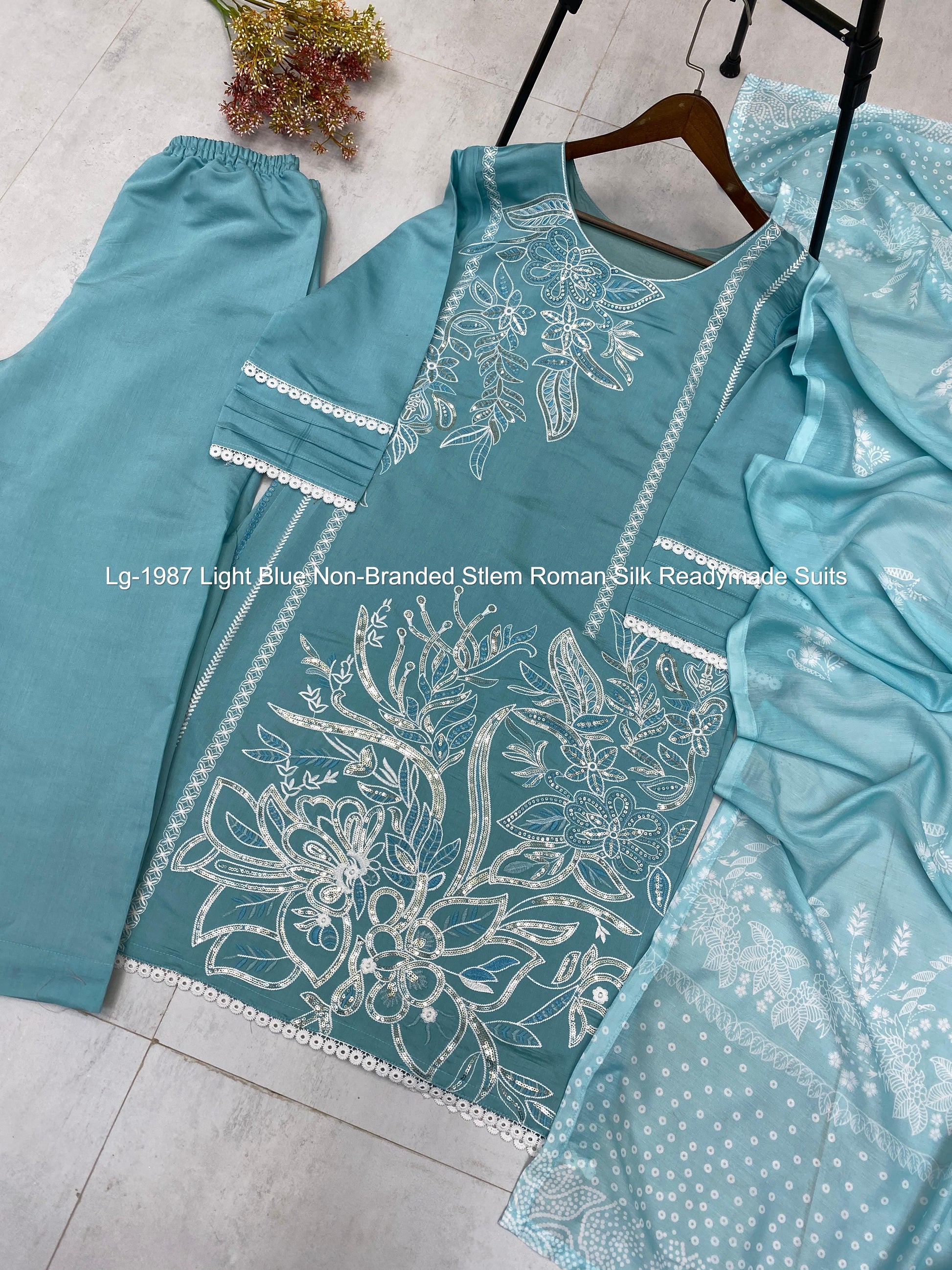 - Lg-1987 Light Blue Non-Branded Stlem Roman Silk Readymade Suits Dealer Ahmedabad Surat Wholesale Gujarat India Lowest Price Best Quality Buy Purchase Shipping Kurta Salwaar Kameez Also free Cash on delivery