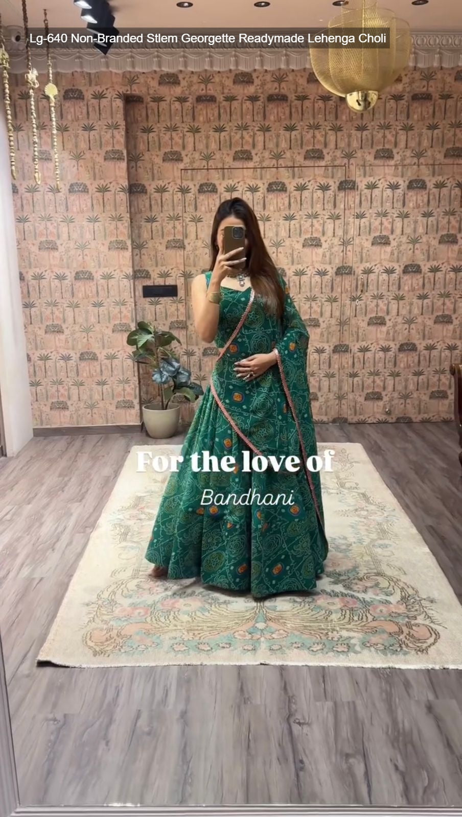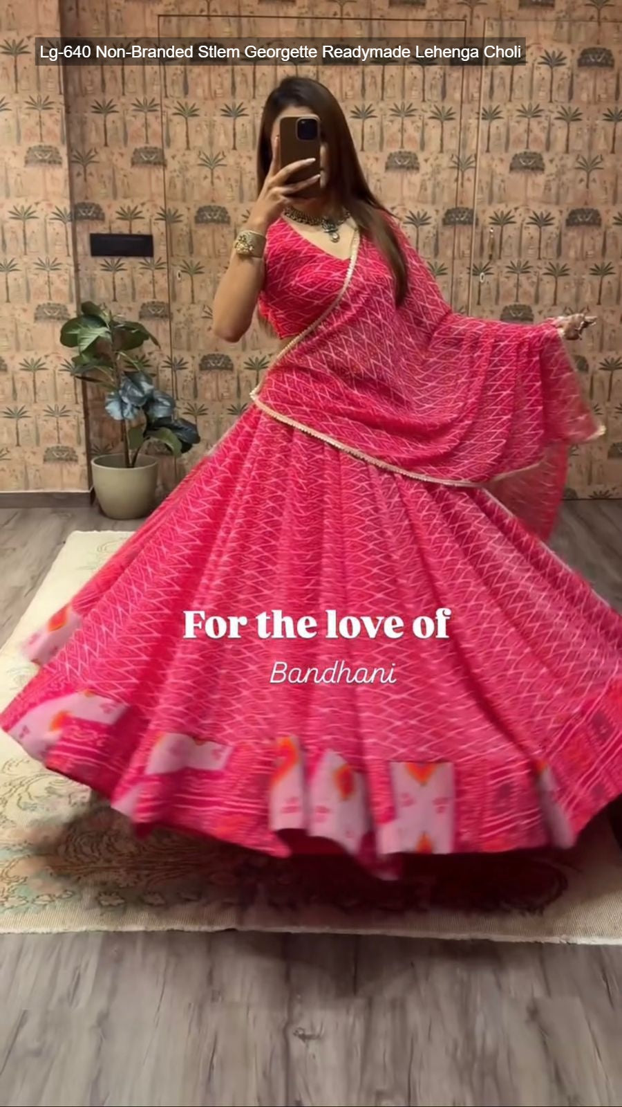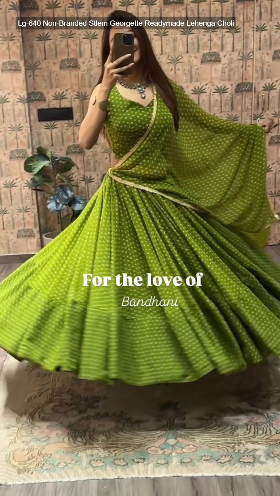 - Fabric Detail: Lehenga : Bandhani Printed Georgette Geometric Motifs Inner : Micro Height : 42 Inch Apx, Full Stitched And Full Flair ( Free Size ) , Blouse : Printed Georgette Sleeve Less Open Sleeves Attached Inner : Micro Height : 14 Inch Apx, Free Size , Dupatta : Georgette With Digital Print And Heavy Lace Work Cut : 2.2 Mtr Apx , Size Free Size ( Colour : Green, Purple, Yellow, Pink, Navy Blue, Lime Green )
