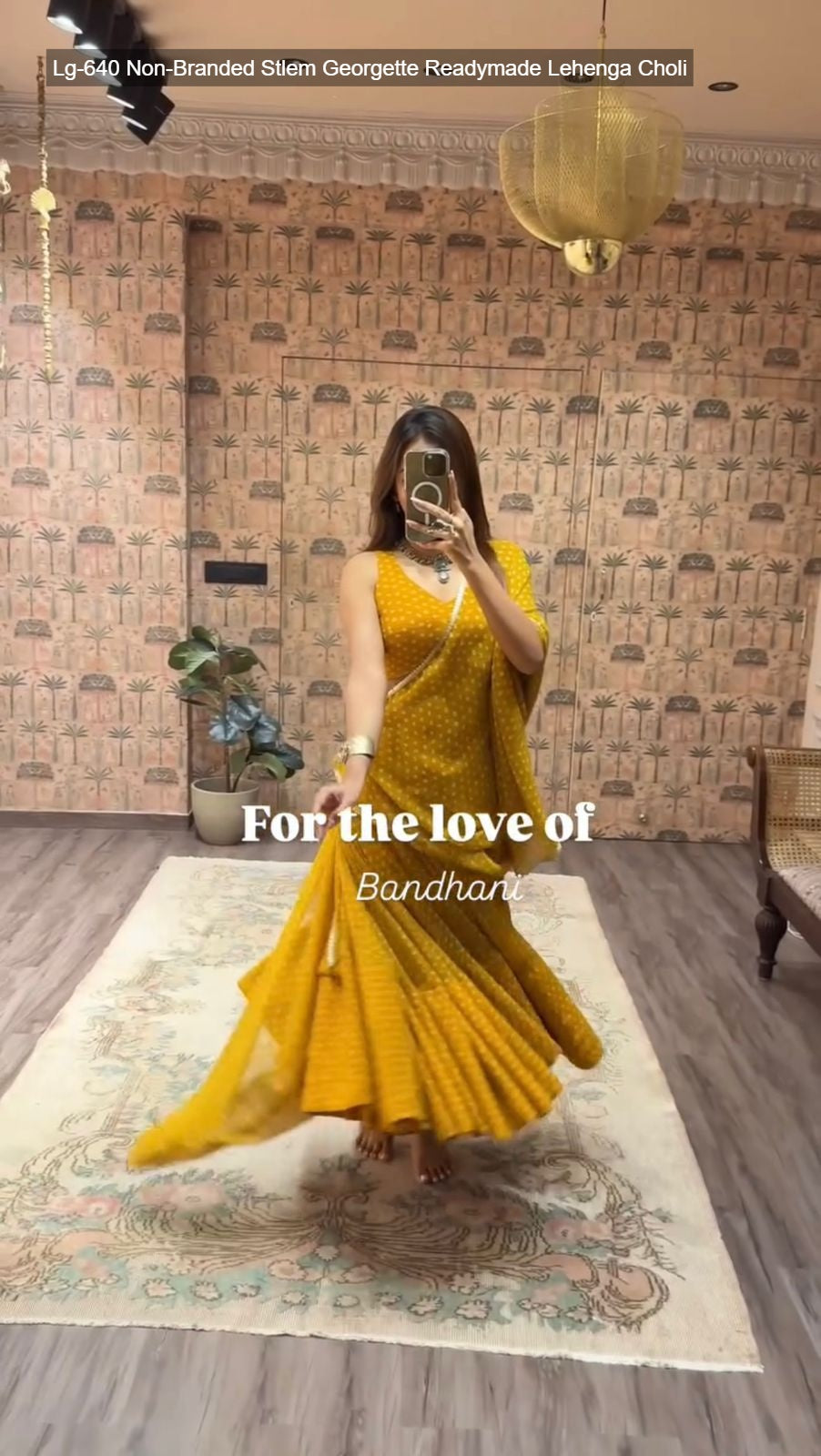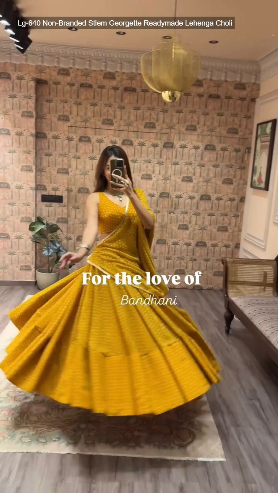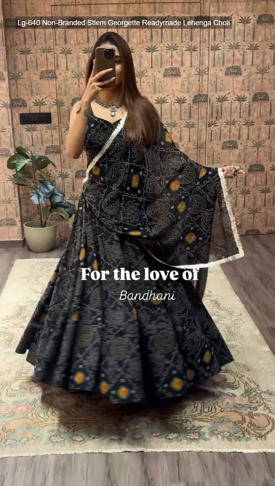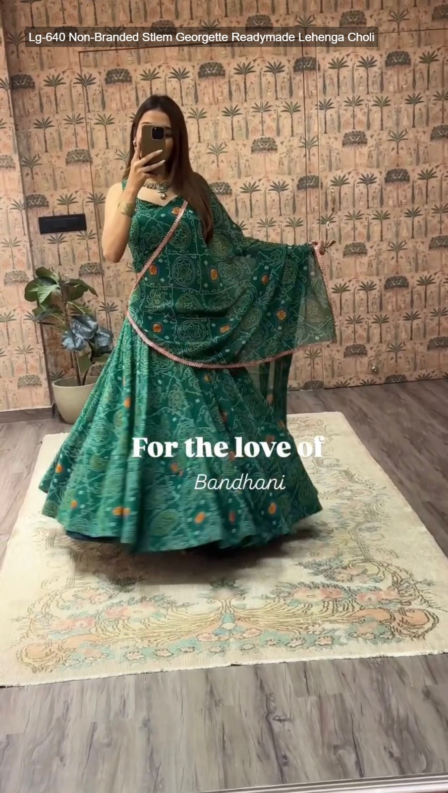 - Fabric Detail: Lehenga : Bandhani Printed Georgette Geometric Motifs Inner : Micro Height : 42 Inch Apx, Full Stitched And Full Flair ( Free Size ) , Blouse : Printed Georgette Sleeve Less Open Sleeves Attached Inner : Micro Height : 14 Inch Apx, Free Size , Dupatta : Georgette With Digital Print And Heavy Lace Work Cut : 2.2 Mtr Apx , Size Free Size ( Colour : Green, Purple, Yellow, Pink, Navy Blue, Lime Green )