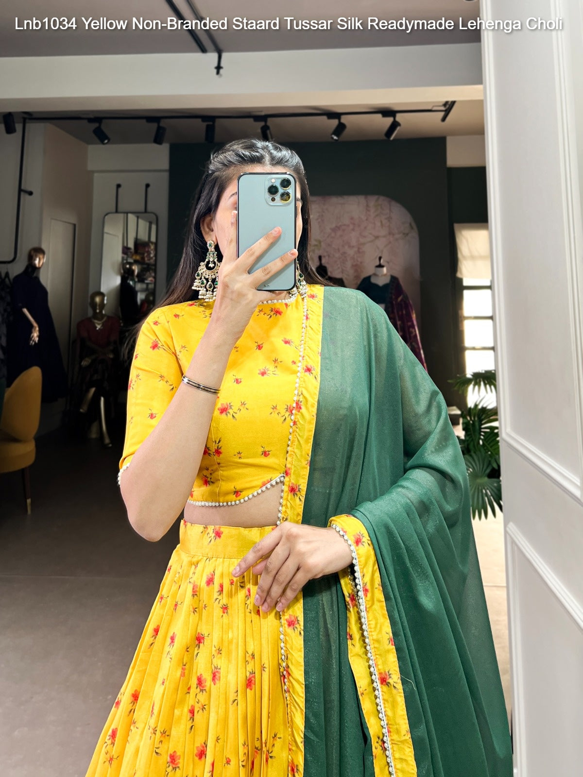 Lnb1034 Yellow Non-Branded Staard Tussar Silk Readymade Lehenga Choli