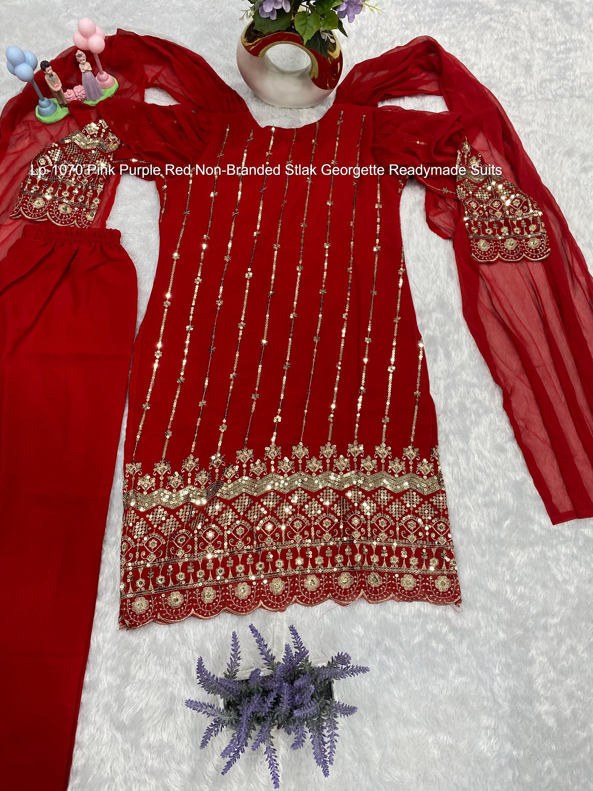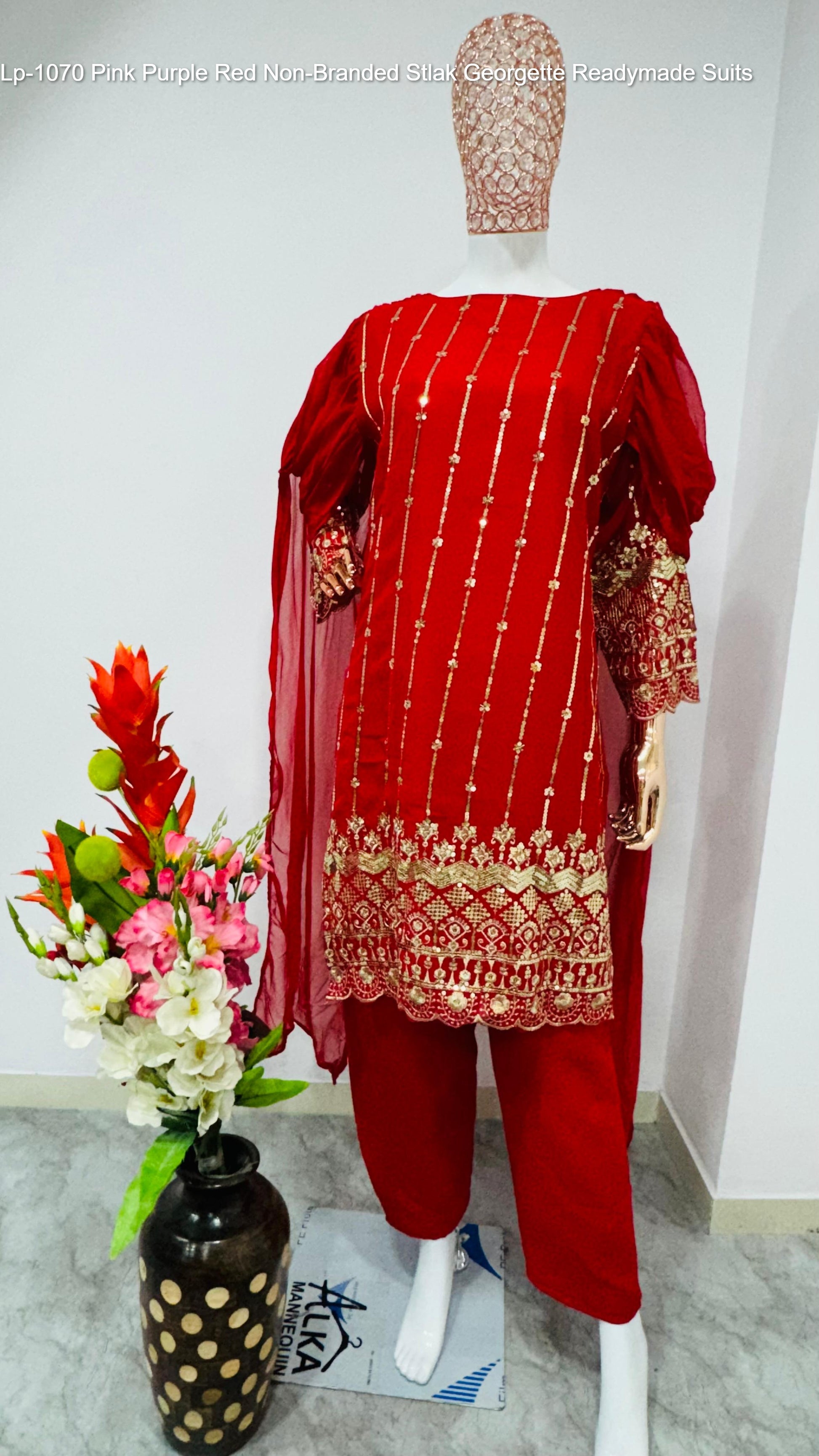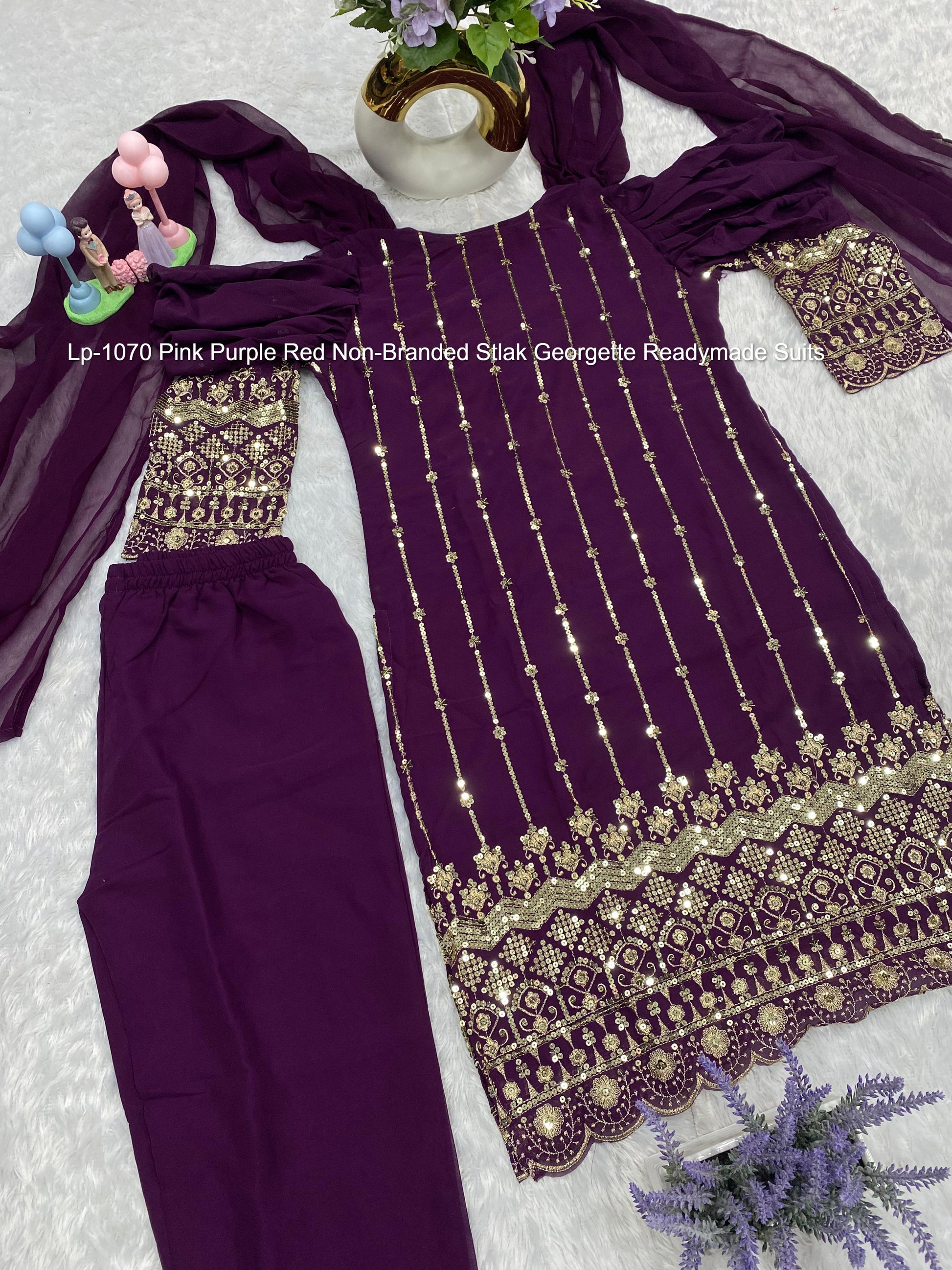 Lp-1070 Pink Purple Red Non-Branded Stlak Georgette Readymade Suits