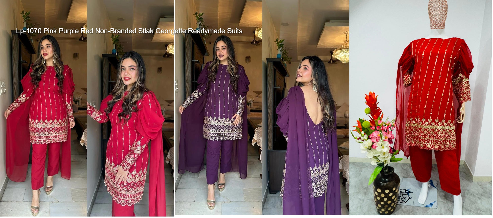 - Lp-1070 Pink Purple Red Non-Branded Stlak Georgette Readymade Suits Dealer Ahmedabad Surat Wholesale Gujarat India Lowest Price Best Quality Buy Purchase Shipping Kurta Salwaar Kameez Also free Cash on delivery