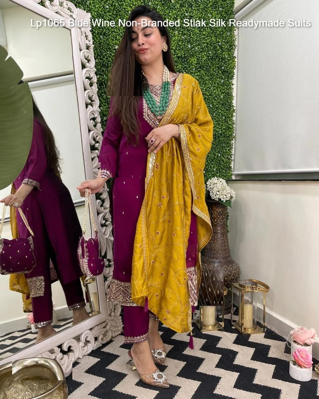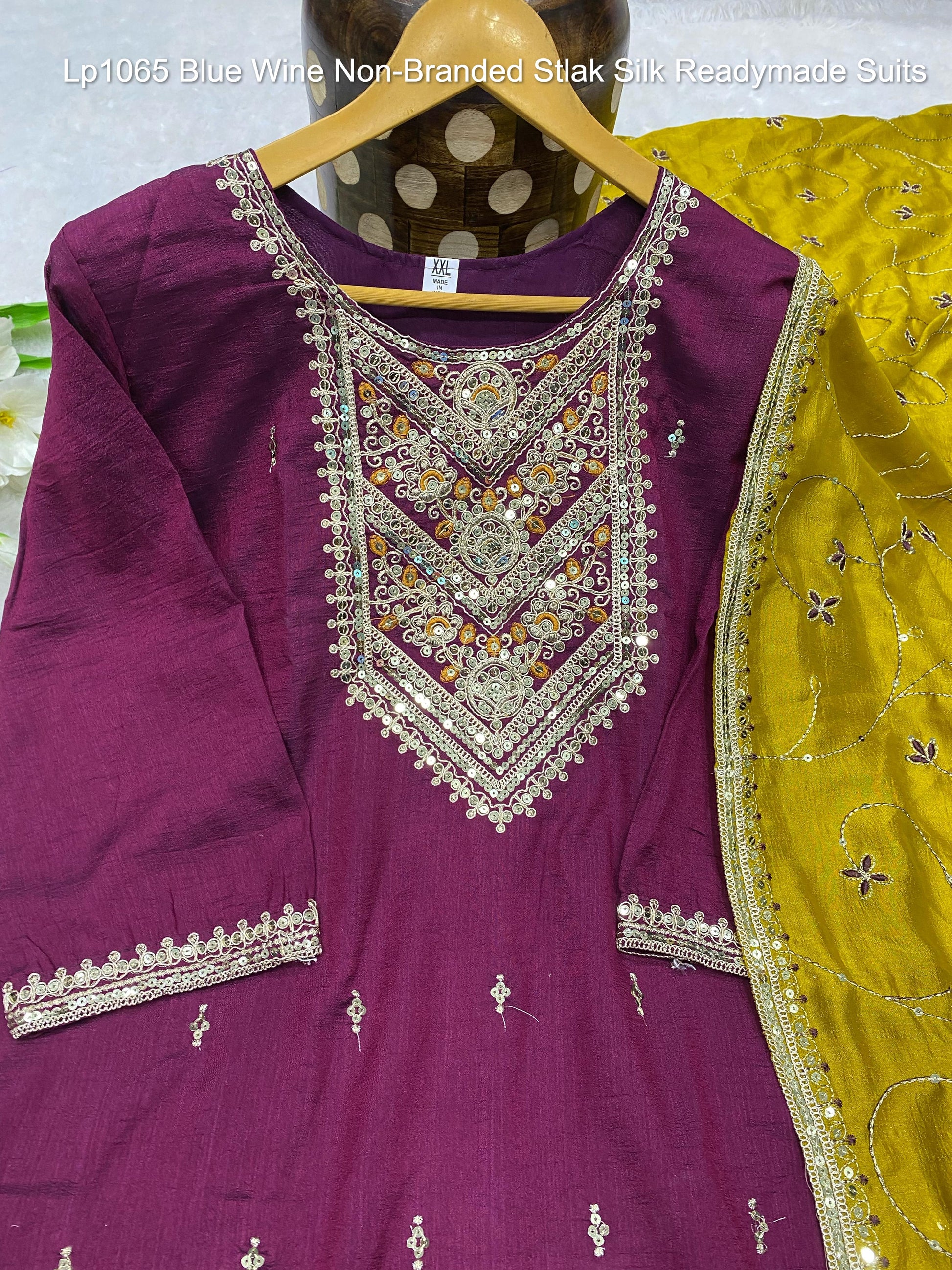 Lp1065 Blue Wine Non-Branded Stlak Silk Readymade Suits