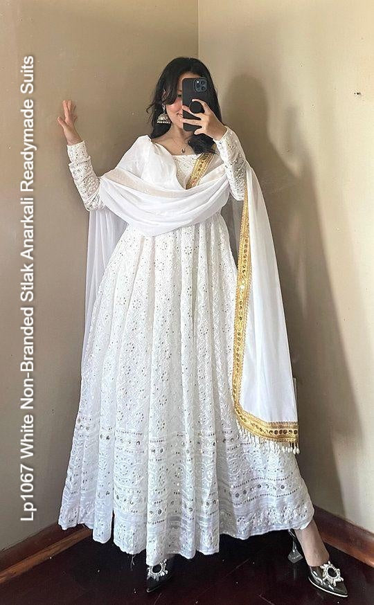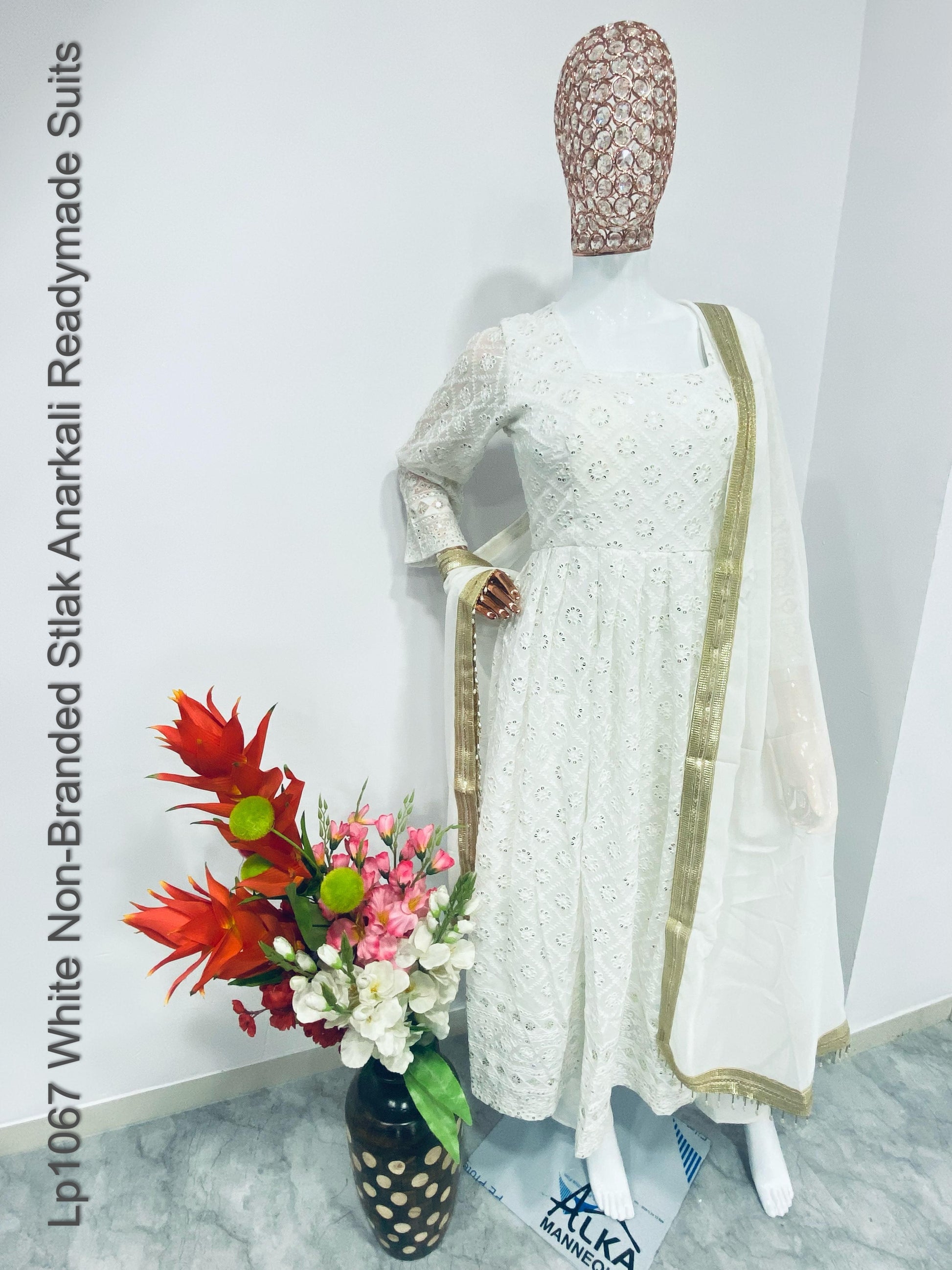 - Lp1067 White Non-Branded Stlak Anarkali Readymade Suits Dealer Ahmedabad Surat Wholesale Gujarat India Lowest Price Best Quality Buy Purchase Shipping Kurta Salwaar Kameez Also free Cash on delivery