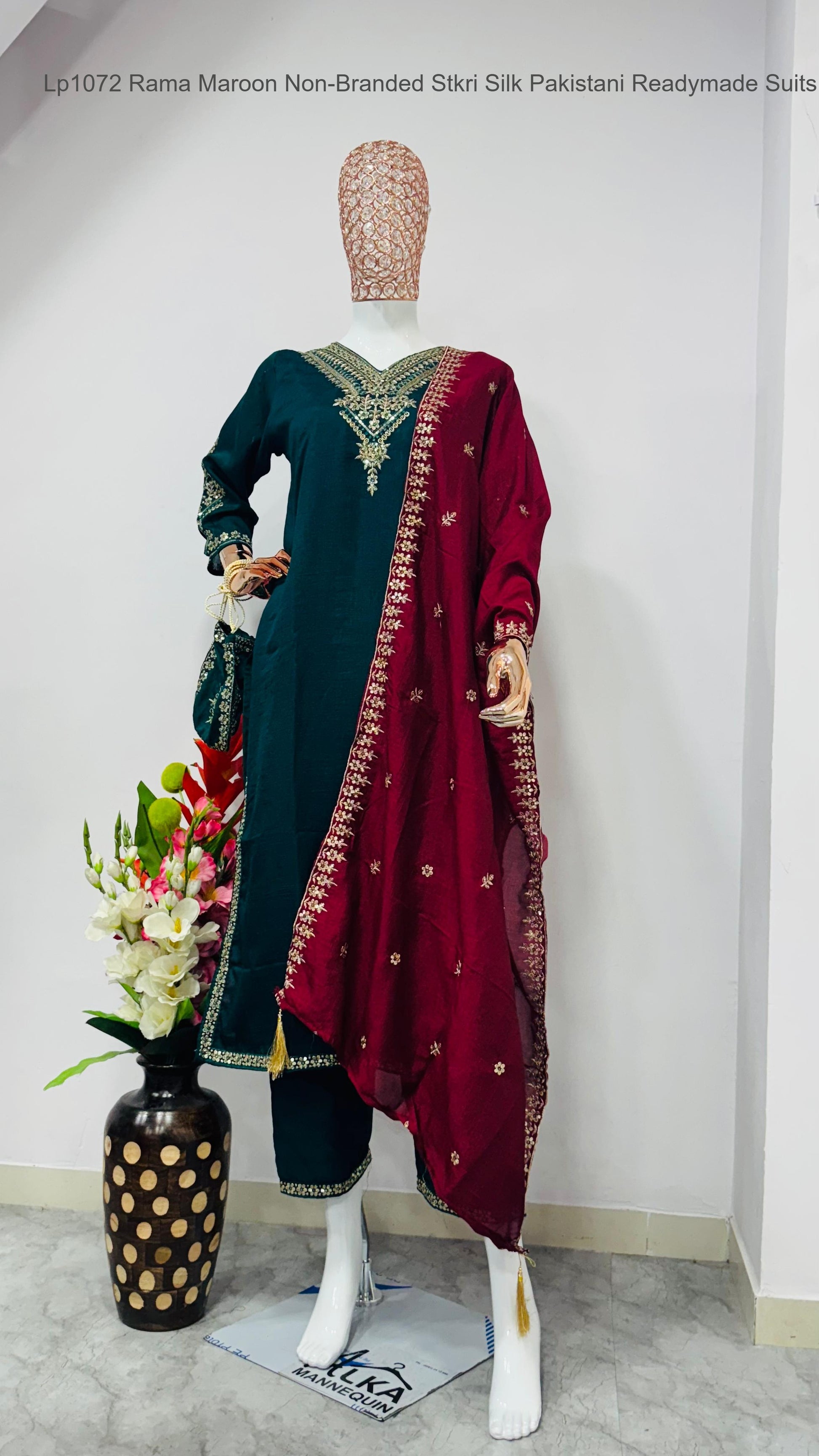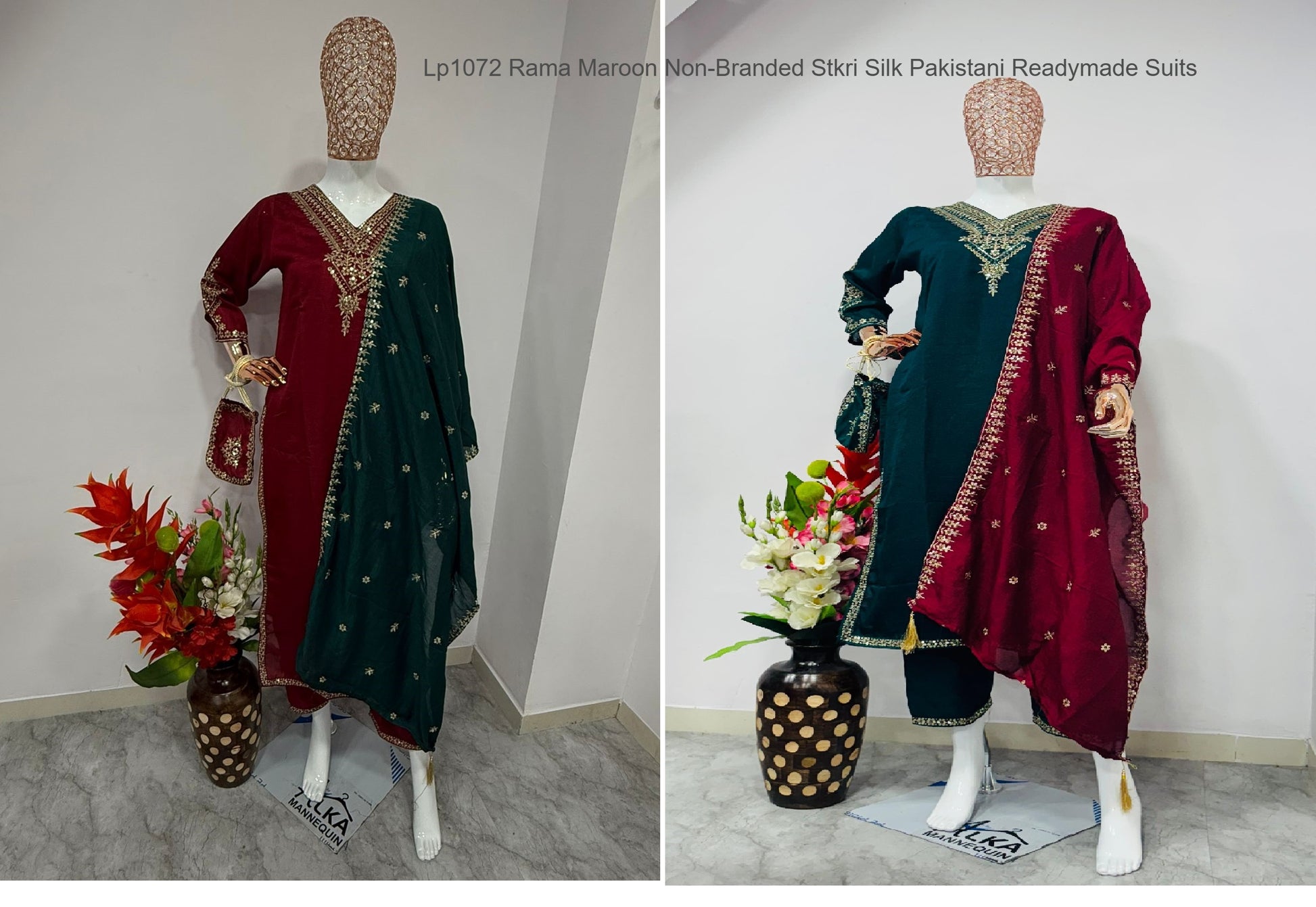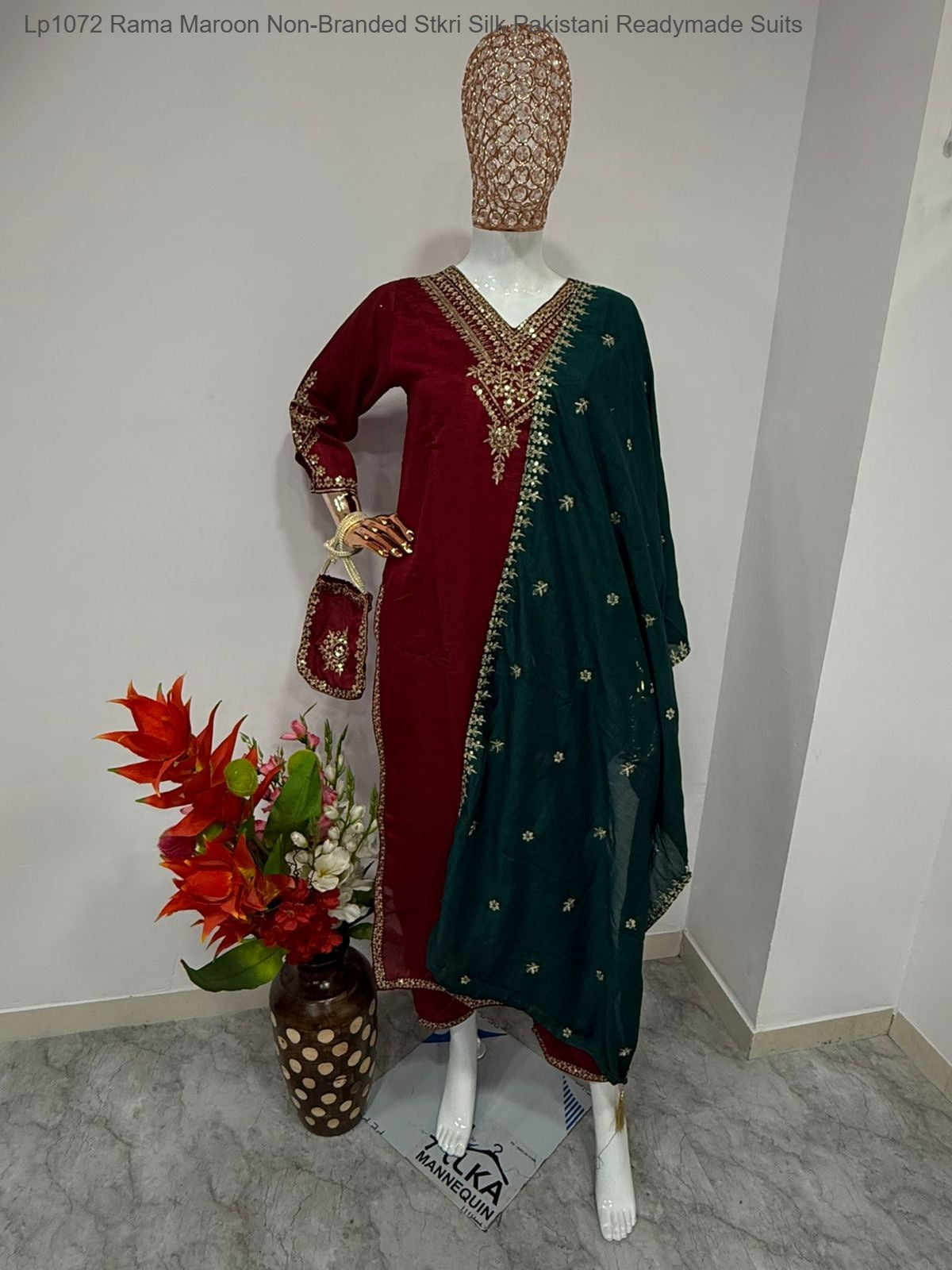Lp1072 Rama Maroon Non-Branded Stkri Silk Pakistani Readymade Suits