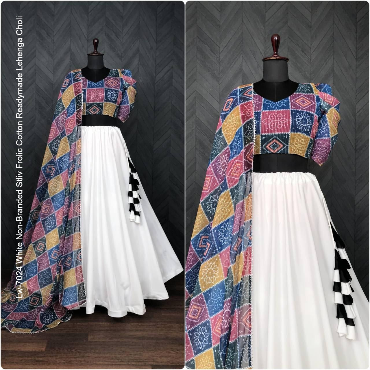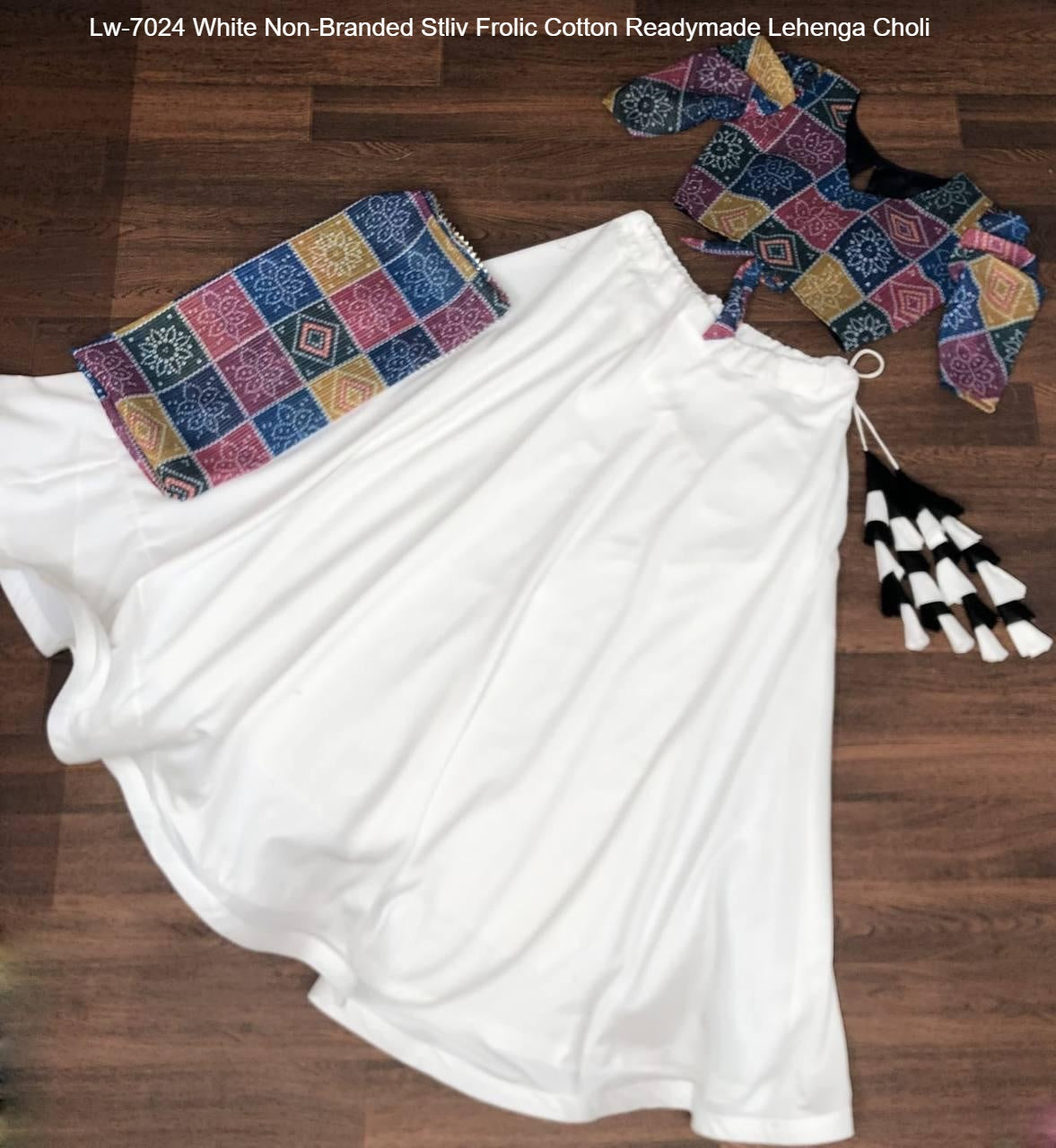 - Lw-7024 White Non-Branded Stliv Frolic Cotton Readymade Lehenga Choli Dealer Ahmedabad Surat Wholesale Gujarat India Lowest Price Best Quality Buy Purchase Shipping Kurta Salwaar Kameez Also free Cash on delivery
