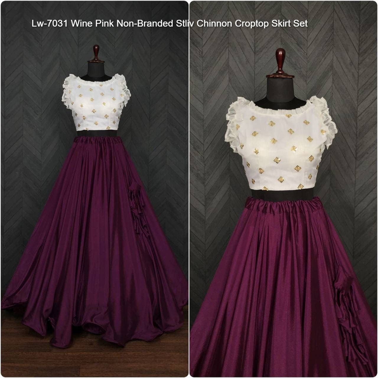 - Lw-7031 Wine Pink Non-Branded Stliv Chinnon Croptop Skirt Set Dealer Ahmedabad Surat Wholesale Gujarat India Lowest Price Best Quality Buy Purchase Shipping Kurta Salwaar Kameez Also free Cash on delivery