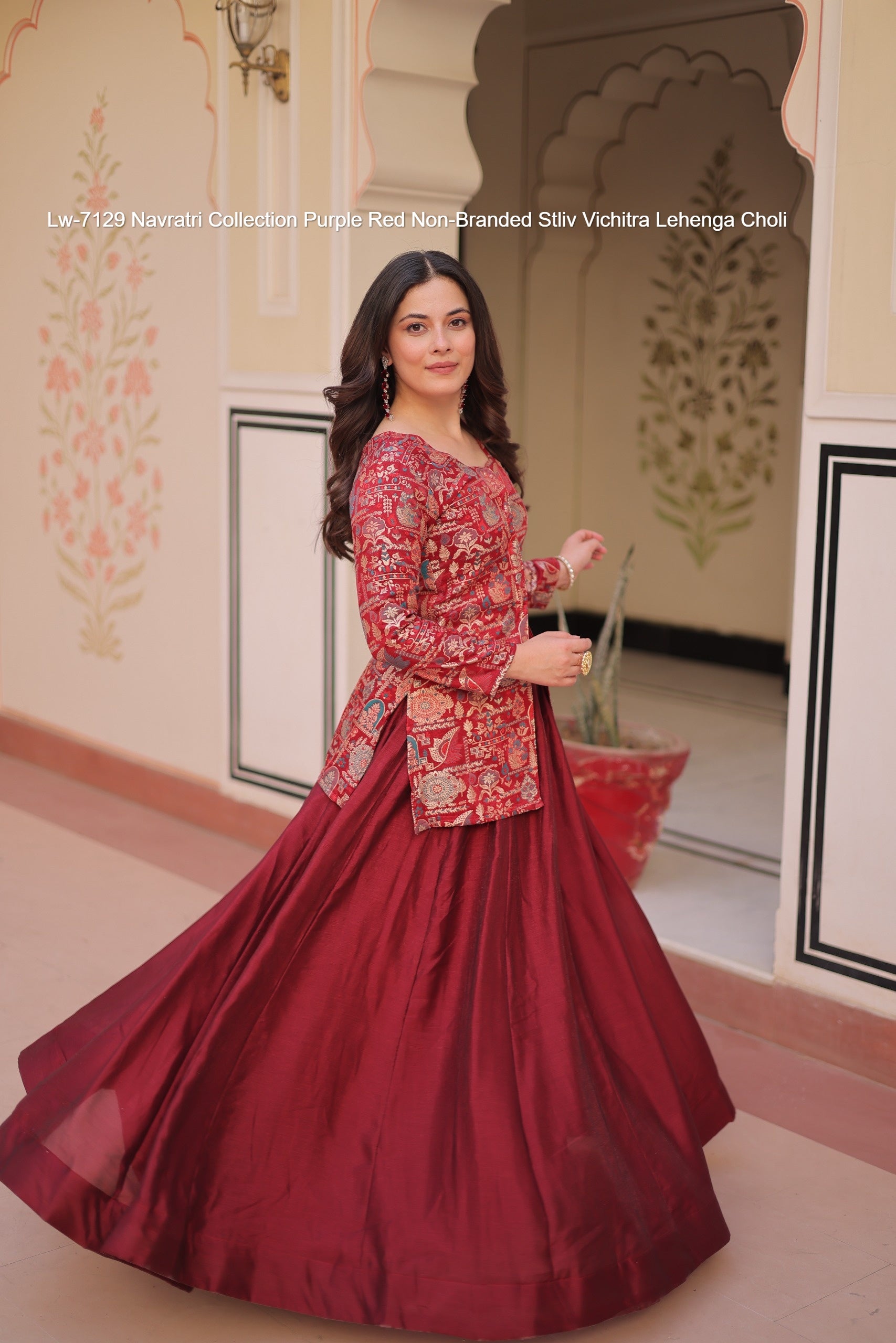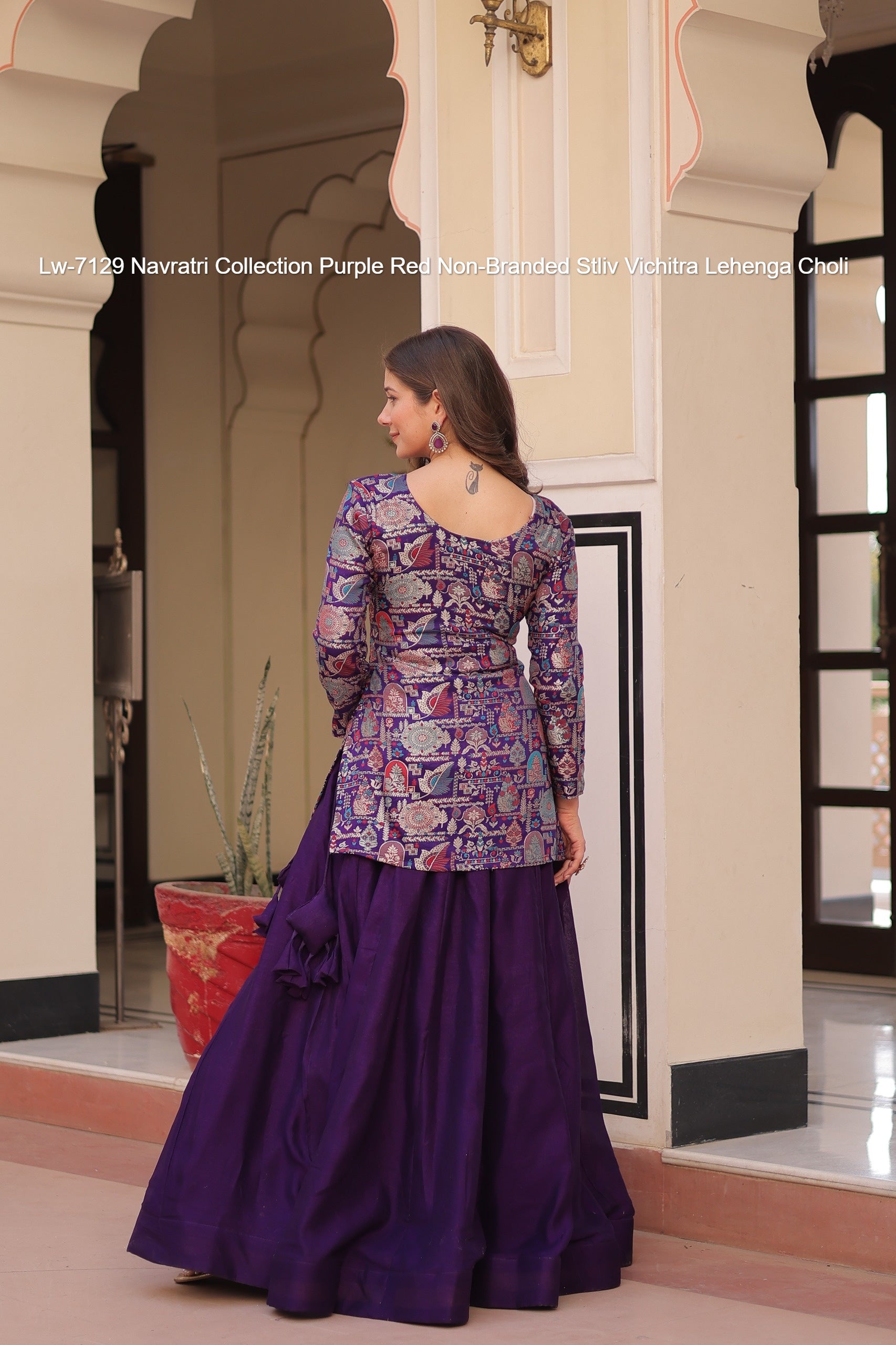 Lw-7129 Navratri Collection Purple Red Non-Branded Stliv Vichitra Lehenga Choli