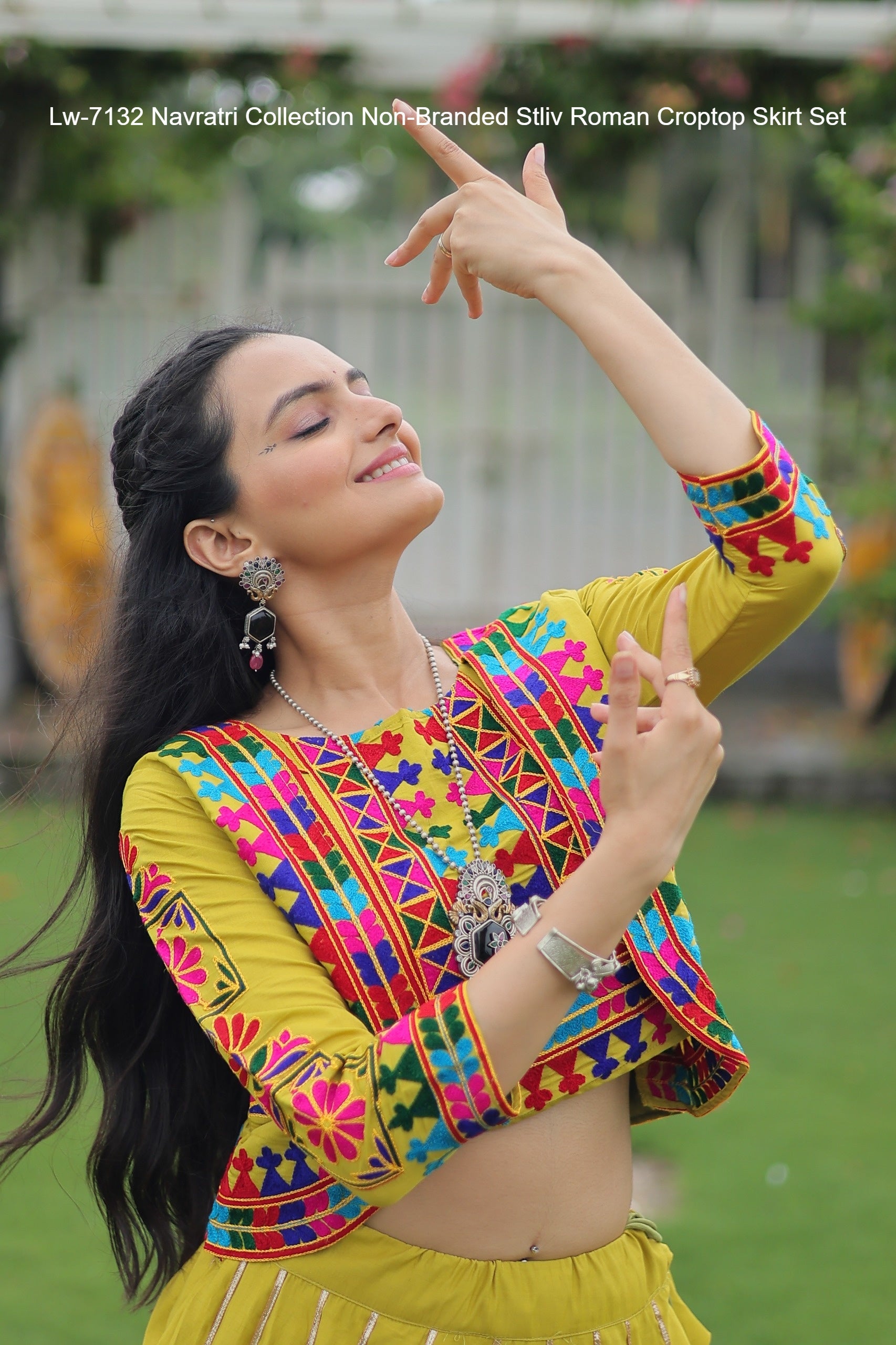 Lw-7132 Navratri Collection Non-Branded Stliv Roman Croptop Skirt Set