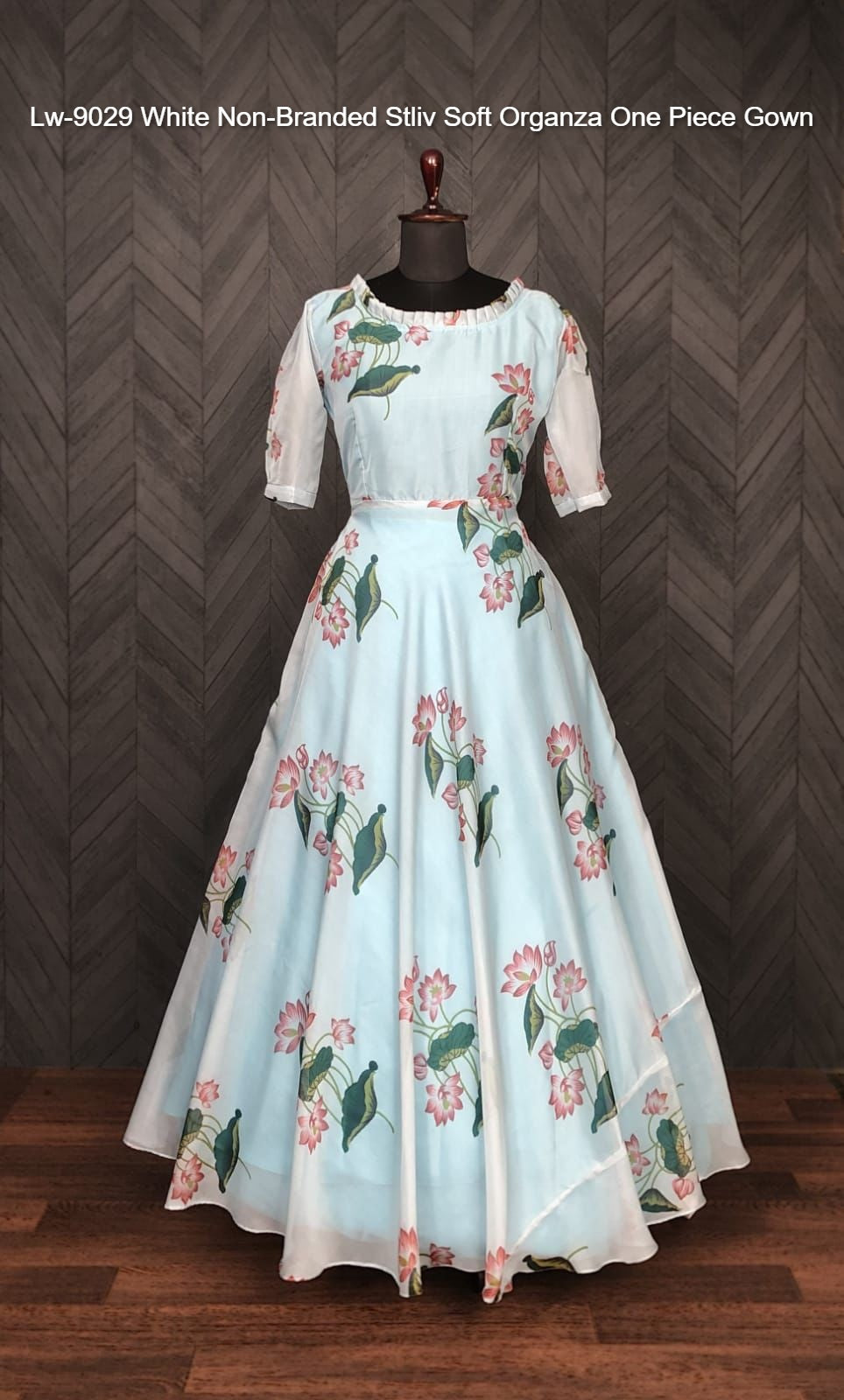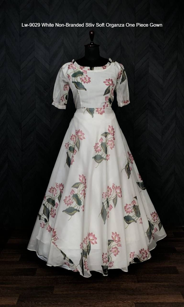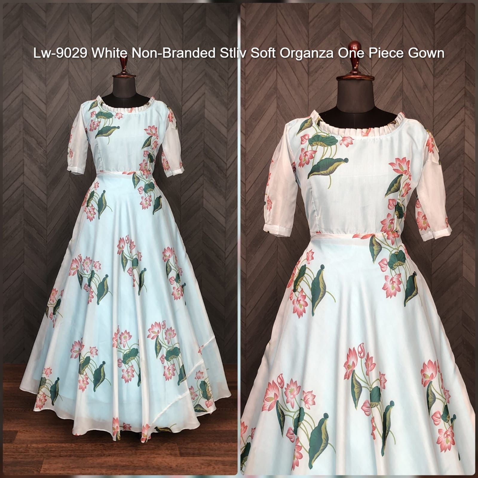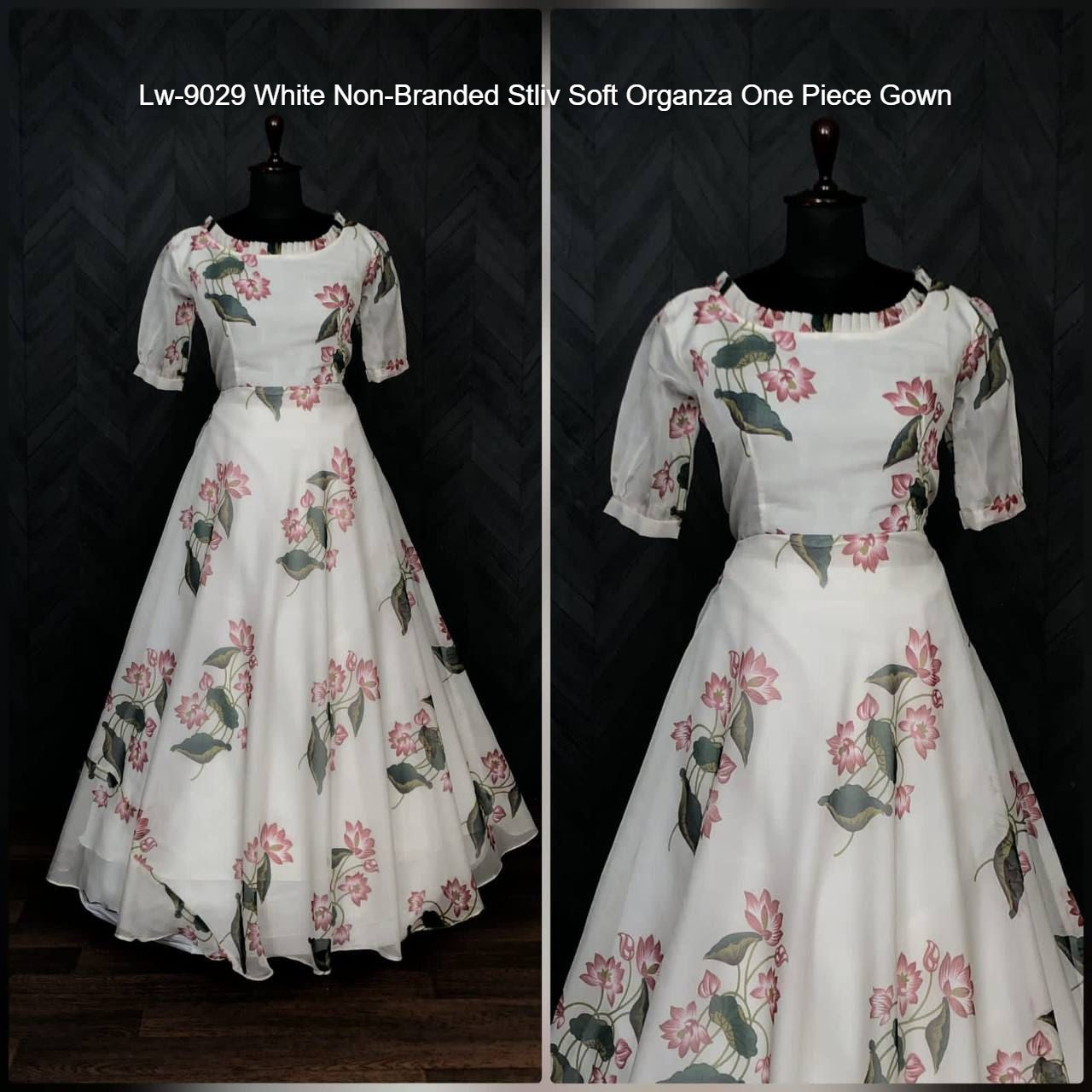 - Lw-9029 White Non-Branded Stliv Soft Organza One Piece Gown Dealer Ahmedabad Surat Wholesale Gujarat India Lowest Price Best Quality Buy Purchase Shipping Kurta Salwaar Kameez Also free Cash on delivery