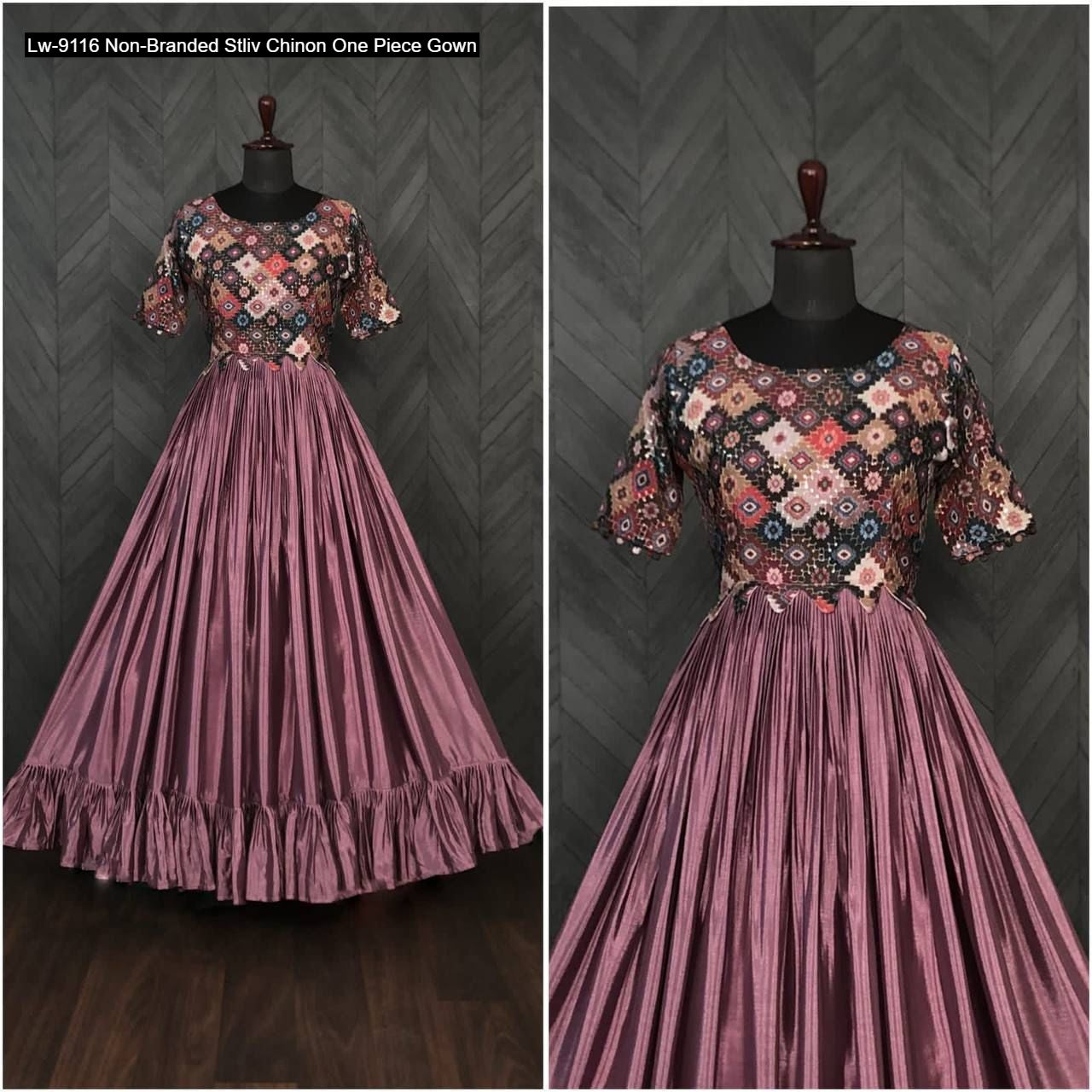 - Lw-9116 Non-Branded Stliv Chinon One Piece Gown Dealer Ahmedabad Surat Wholesale Gujarat India Lowest Price Best Quality Buy Purchase Shipping Kurta Salwaar Kameez Also free Cash on delivery