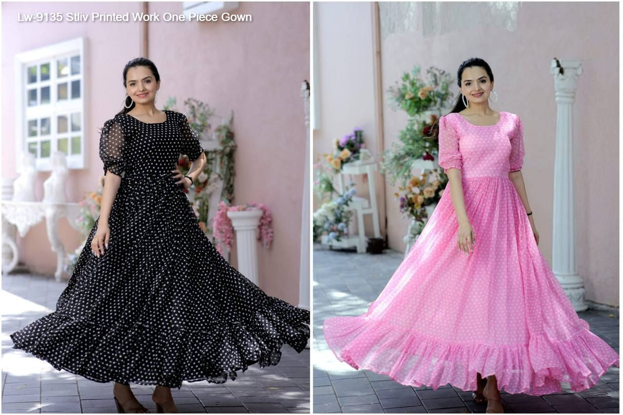 - Lw-9135 Stliv Printed Work One Piece Gown Dealer Ahmedabad Surat Wholesale Gujarat India Lowest Price Best Quality Buy Purchase Shipping Kurta Salwaar Kameez Also free Cash on delivery