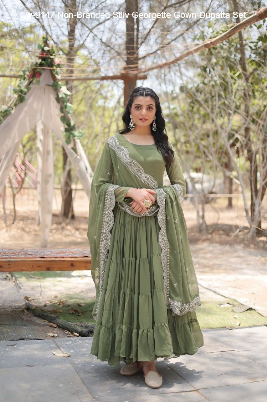 Lw-9147 Non-Branded Stliv Georgette Gown Dupatta Set