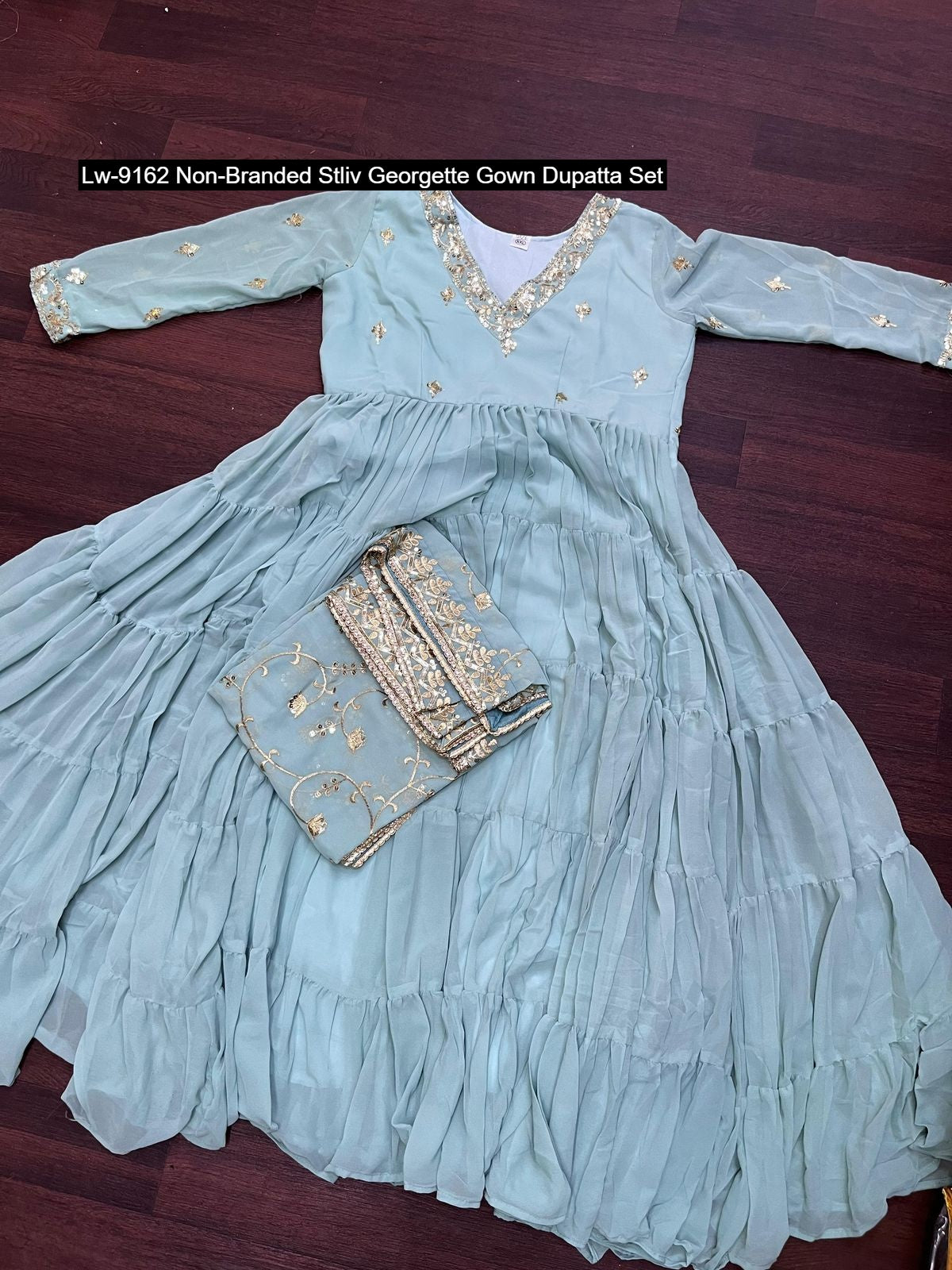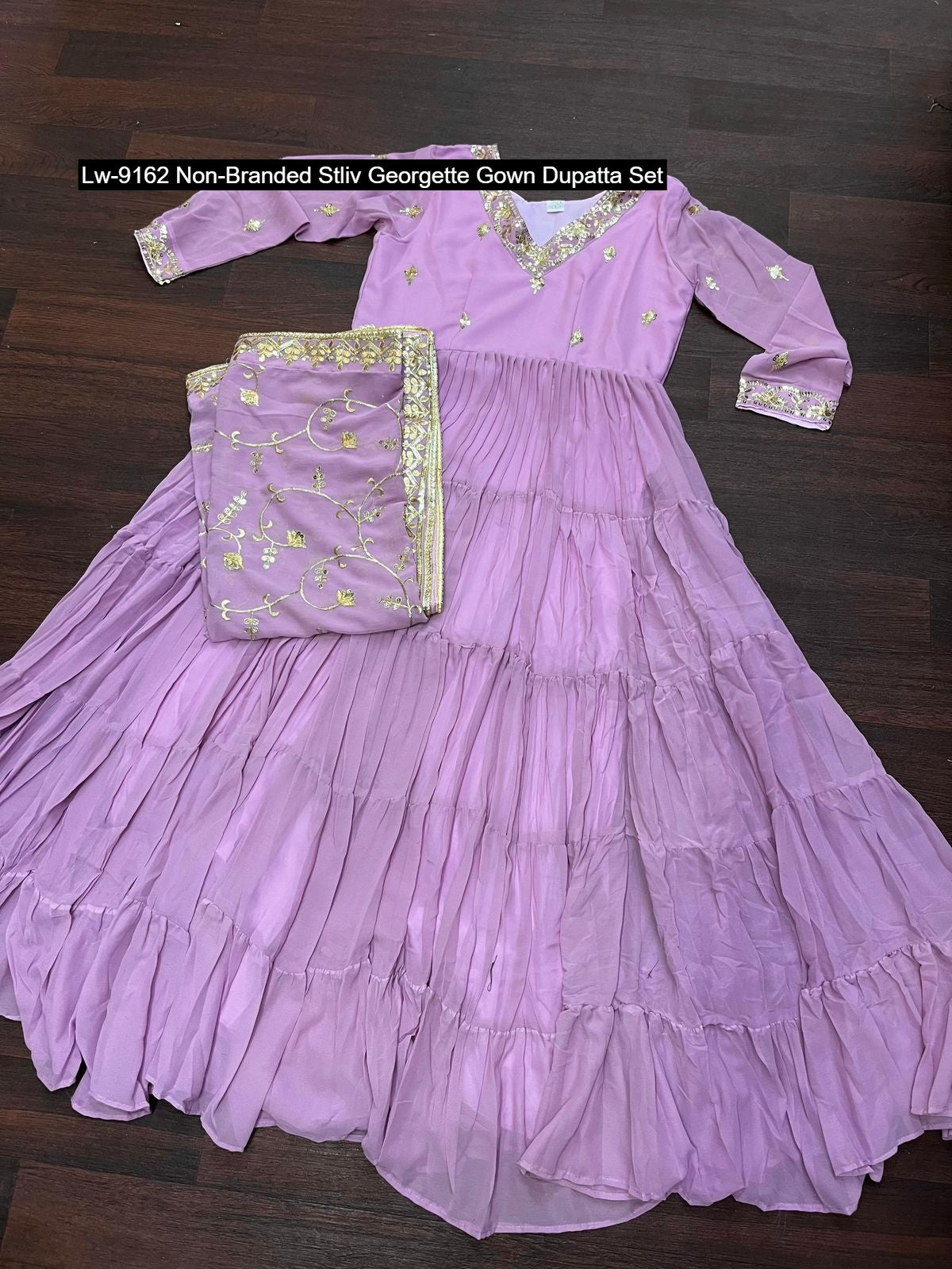 - Lw-9162 Non-Branded Stliv Georgette Gown Dupatta Set Dealer Ahmedabad Surat Wholesale Gujarat India Lowest Price Best Quality Buy Purchase Shipping Kurta Salwaar Kameez Also free Cash on delivery