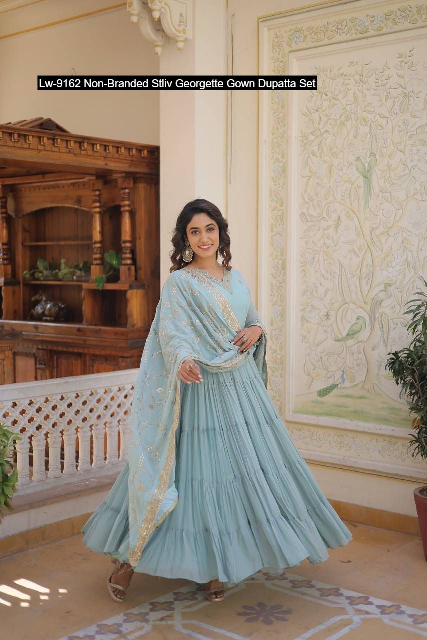 Lw-9162 Non-Branded Stliv Georgette Gown Dupatta Set