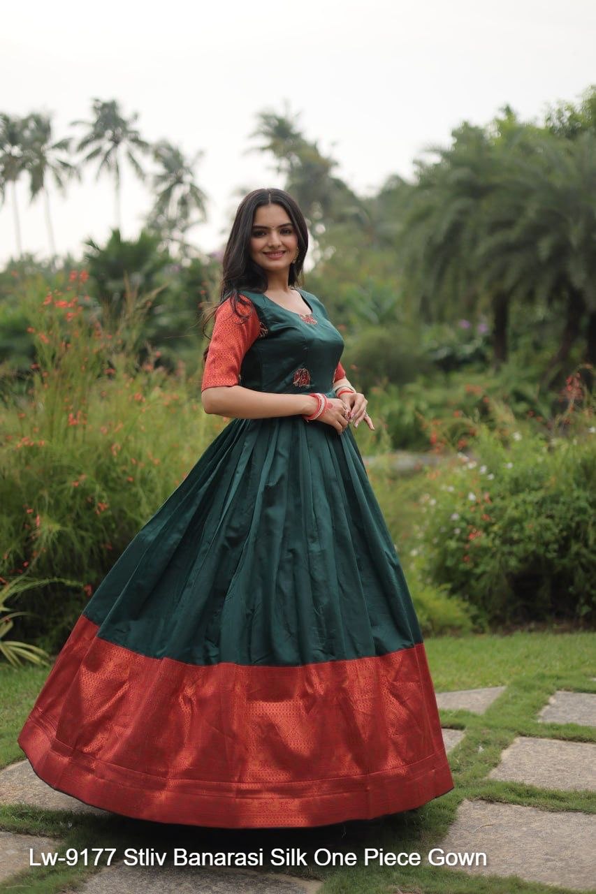 Lw-9177 Stliv Banarasi Silk One Piece Gown