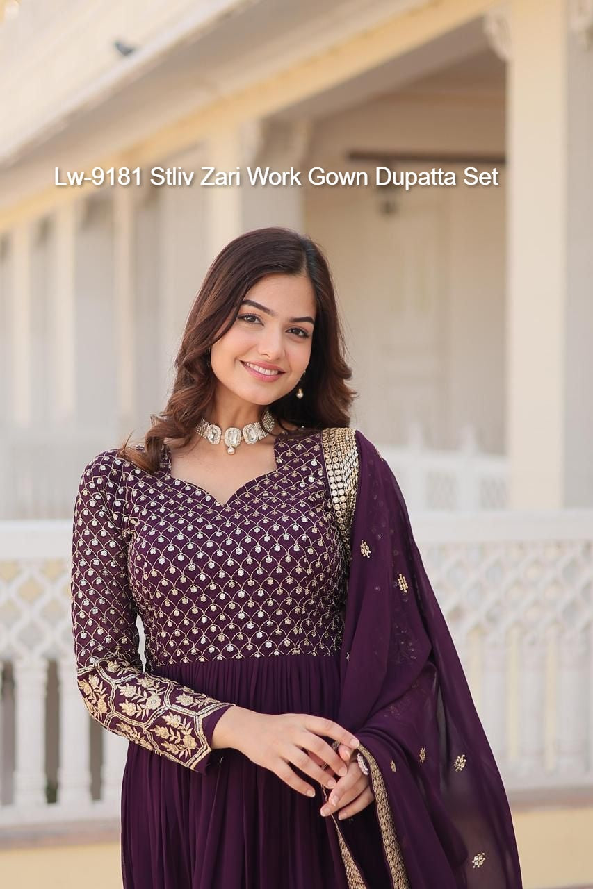 Lw-9181 Stliv Zari Work Gown Dupatta Set
