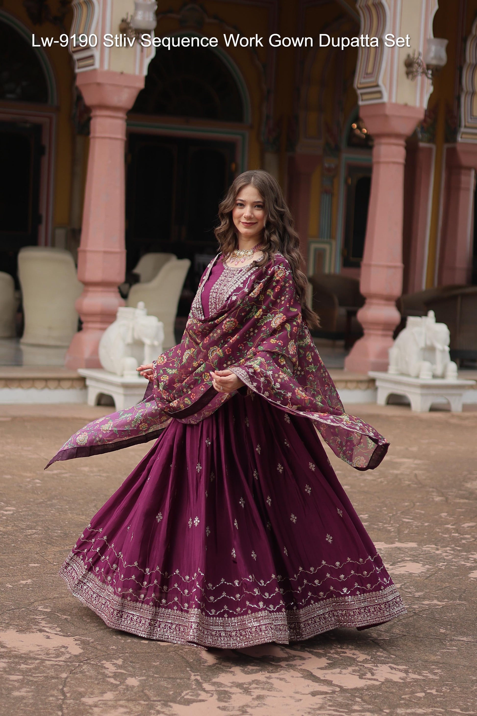 Lw-9190 Stliv Sequence Work Gown Dupatta Set