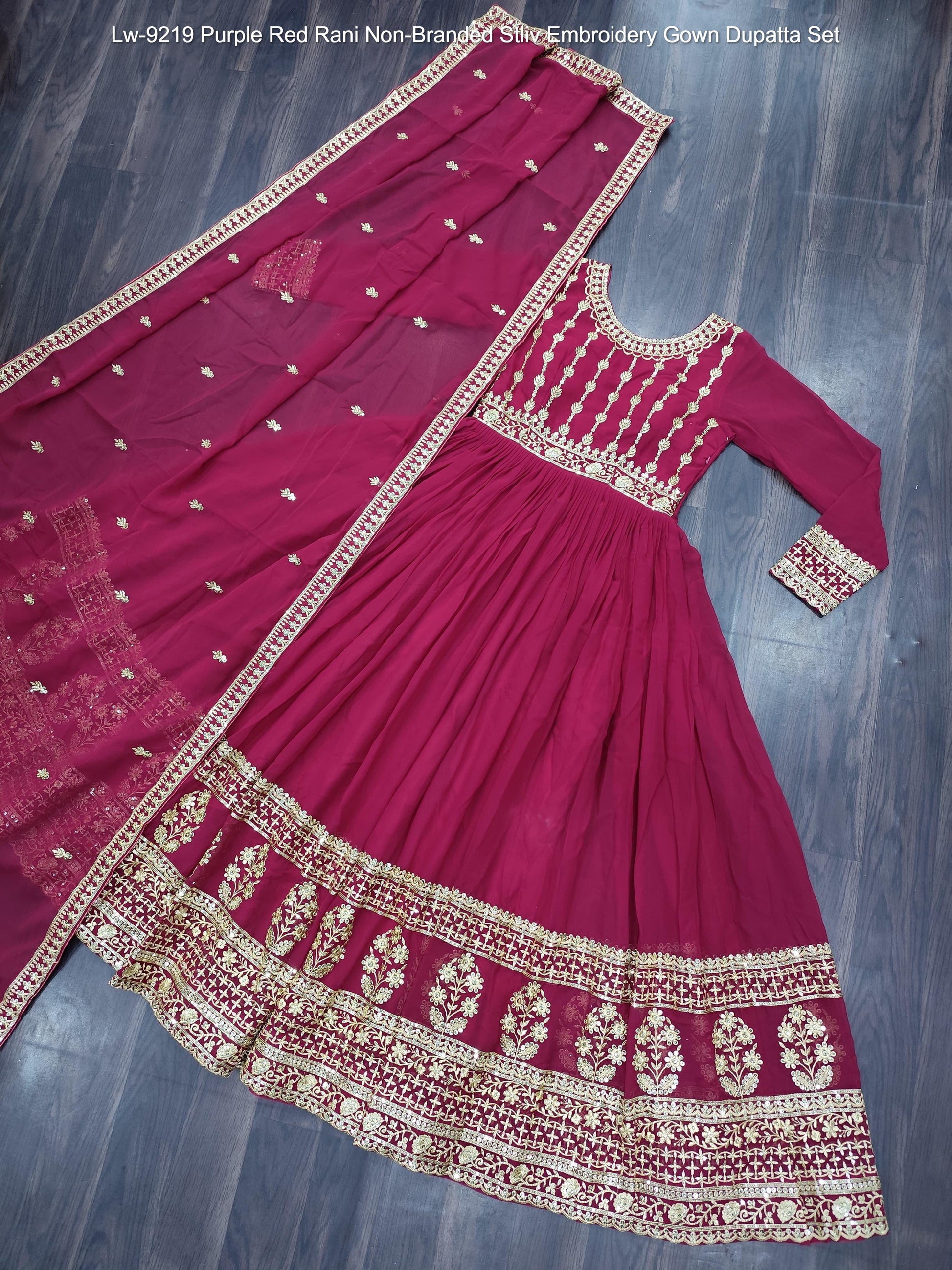 - Lw-9219 Purple Red Rani Non-Branded Stliv Embroidery Gown Dupatta Set Dealer Ahmedabad Surat Wholesale Gujarat India Lowest Price Best Quality Buy Purchase Shipping Kurta Salwaar Kameez Also free Cash on delivery