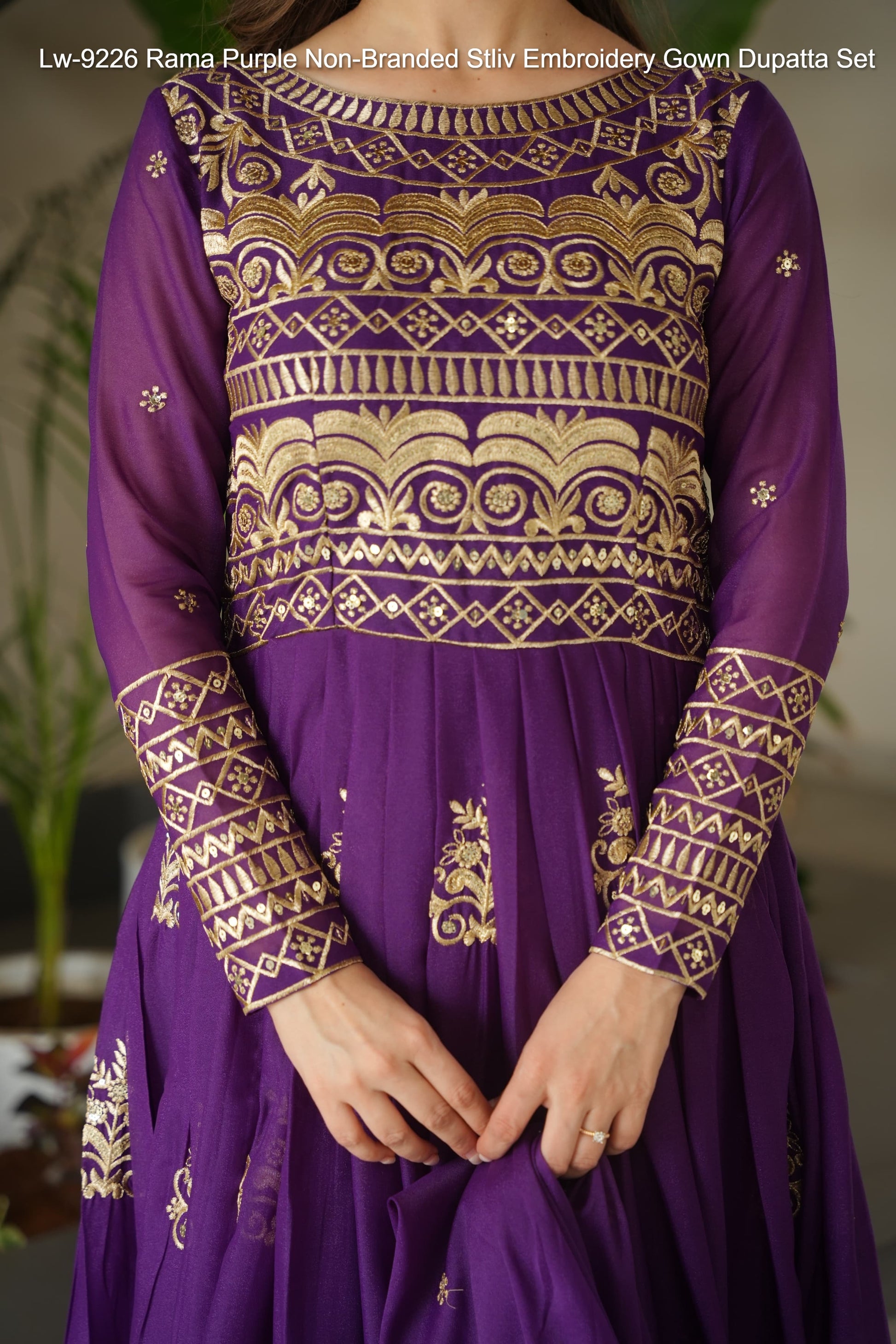 Lw-9226 Rama Purple Non-Branded Stliv Embroidery Gown Dupatta Set