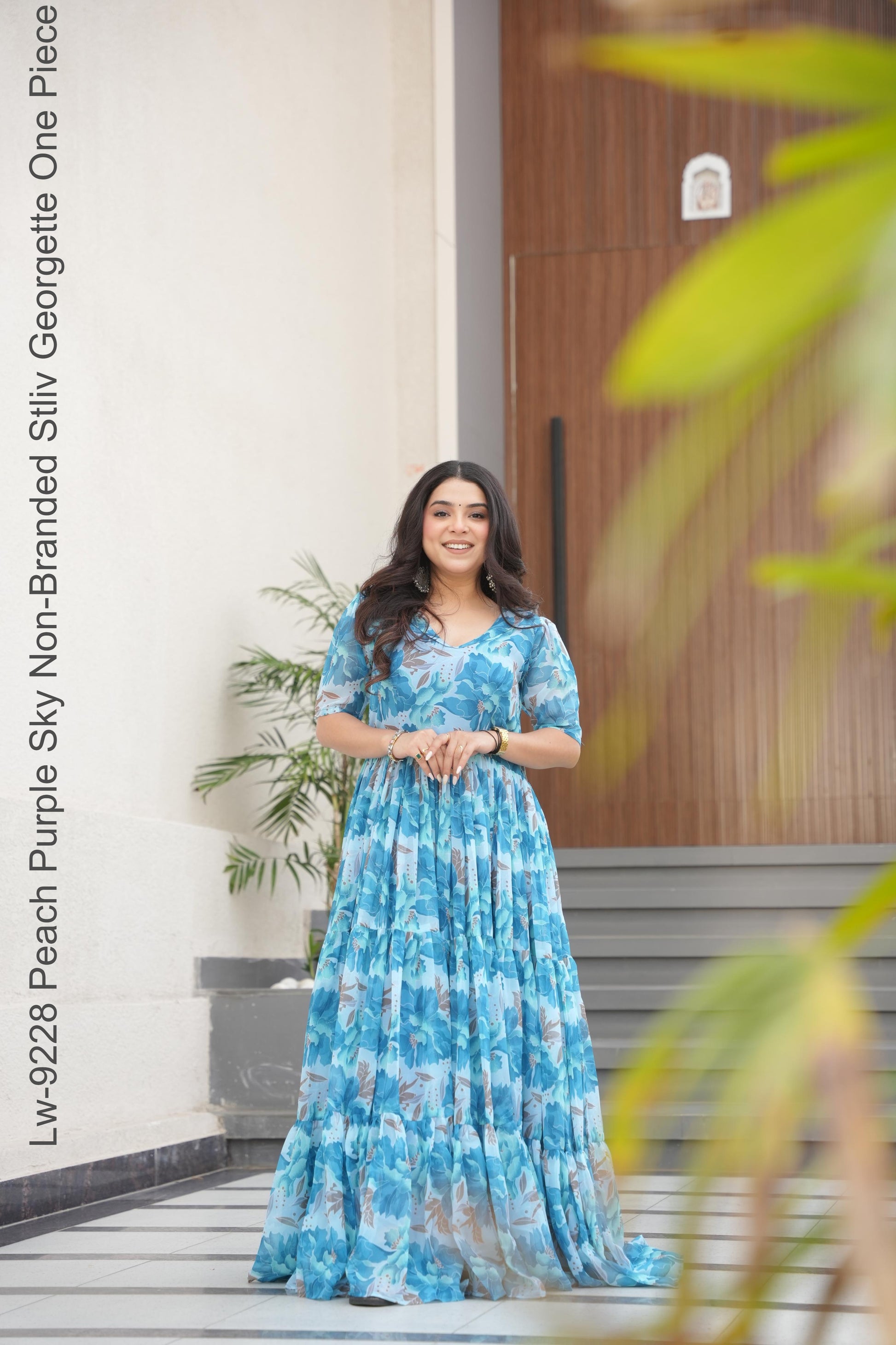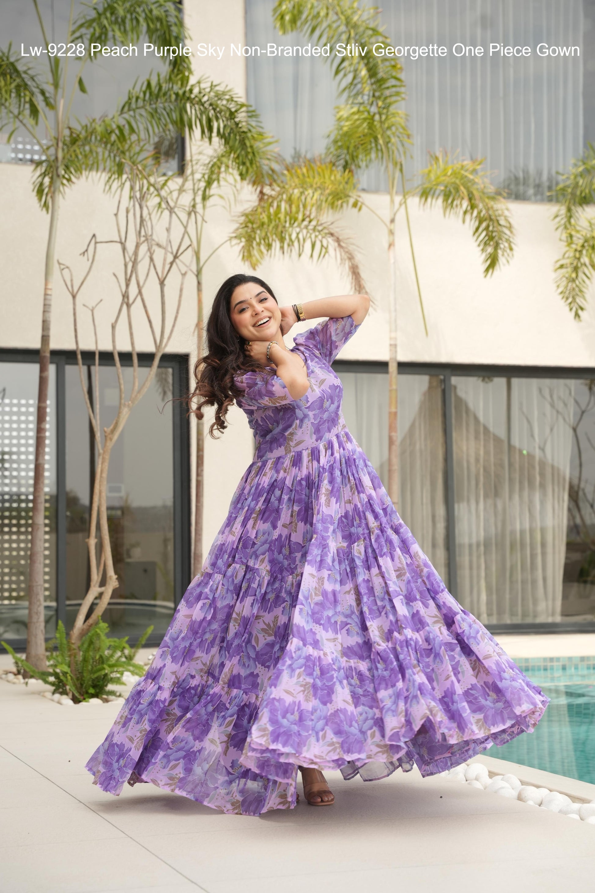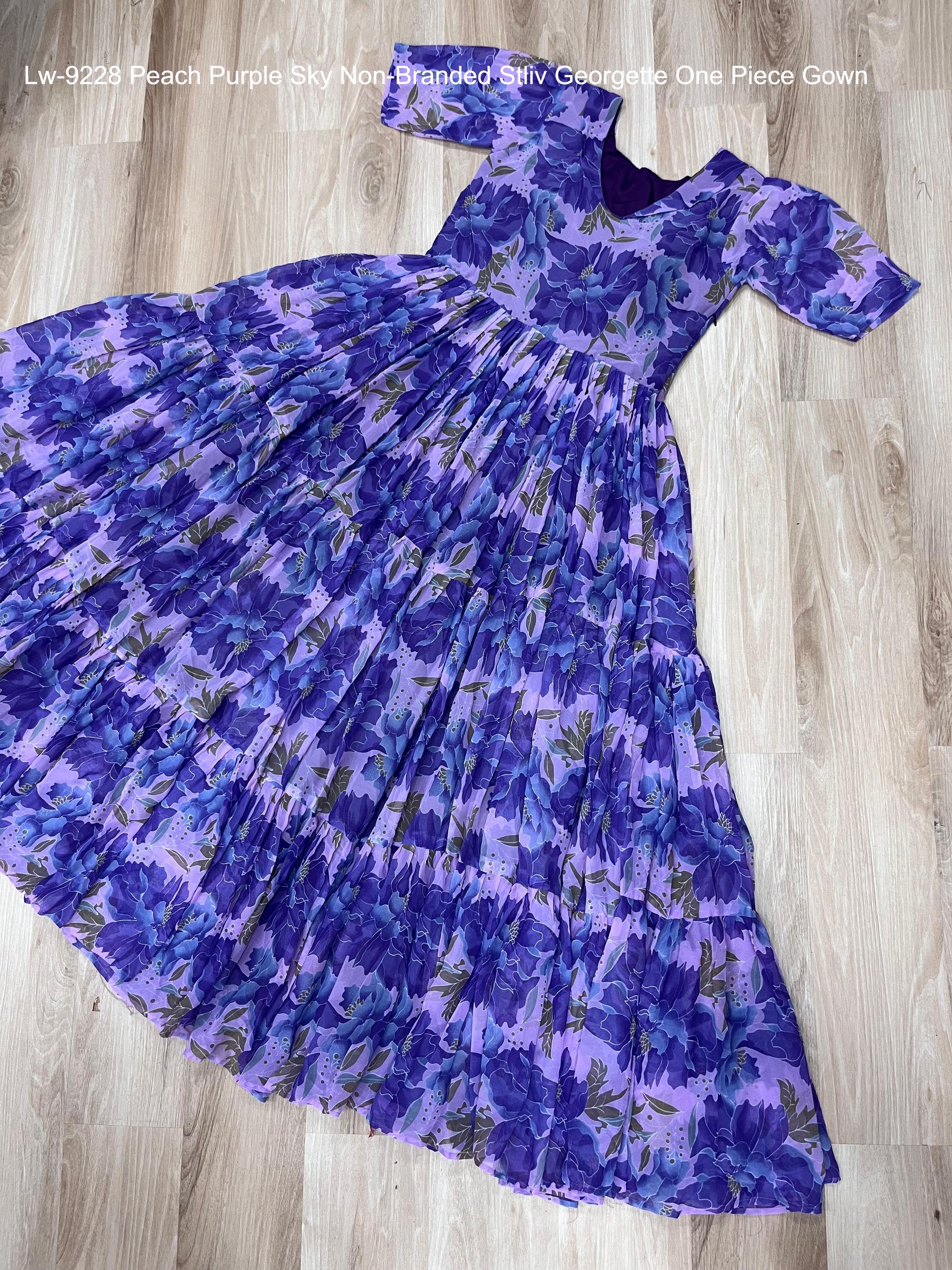 - Lw-9228 Peach Purple Sky Non-Branded Stliv Georgette One Piece Gown Dealer Ahmedabad Surat Wholesale Gujarat India Lowest Price Best Quality Buy Purchase Shipping Kurta Salwaar Kameez Also free Cash on delivery