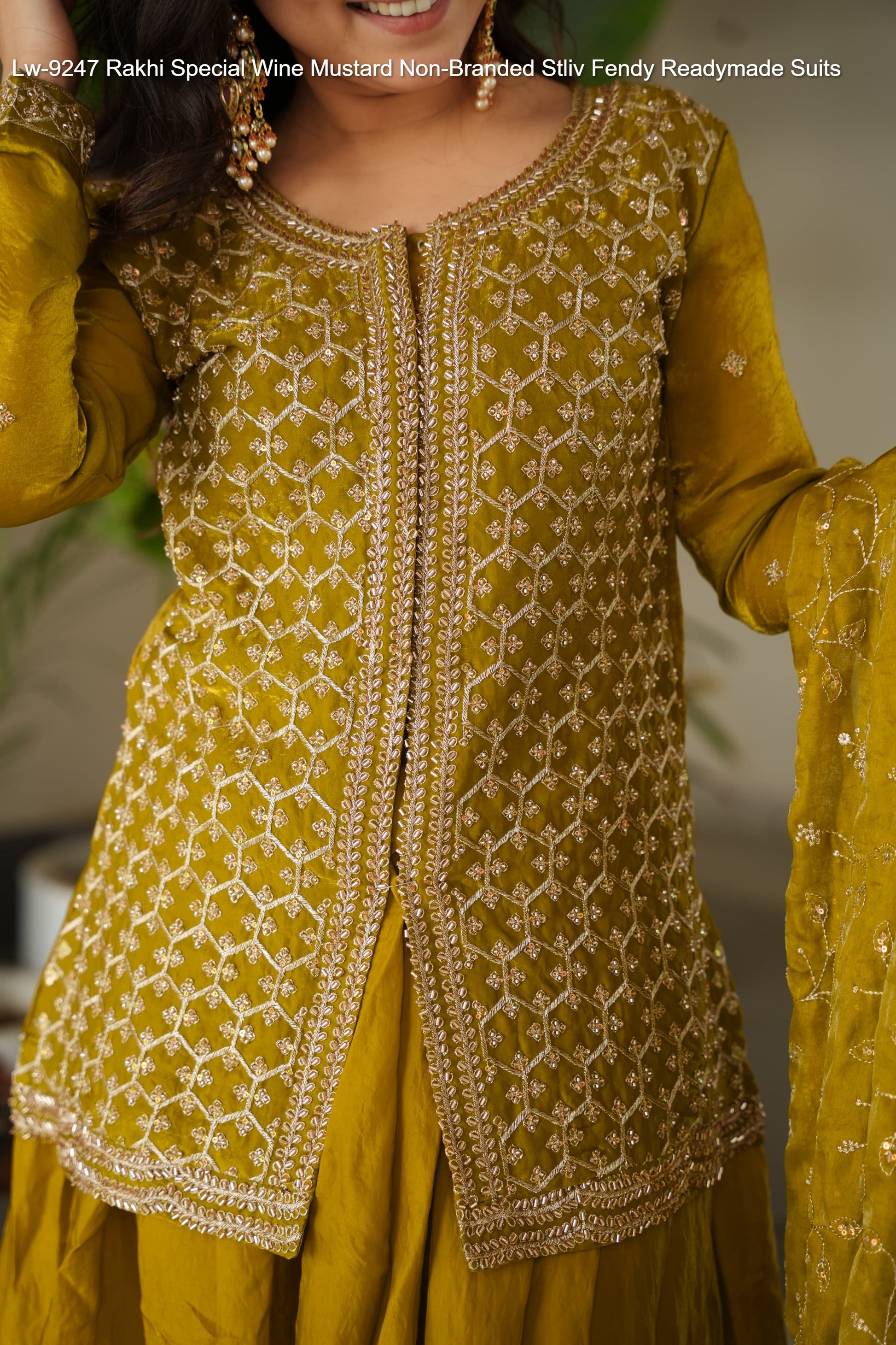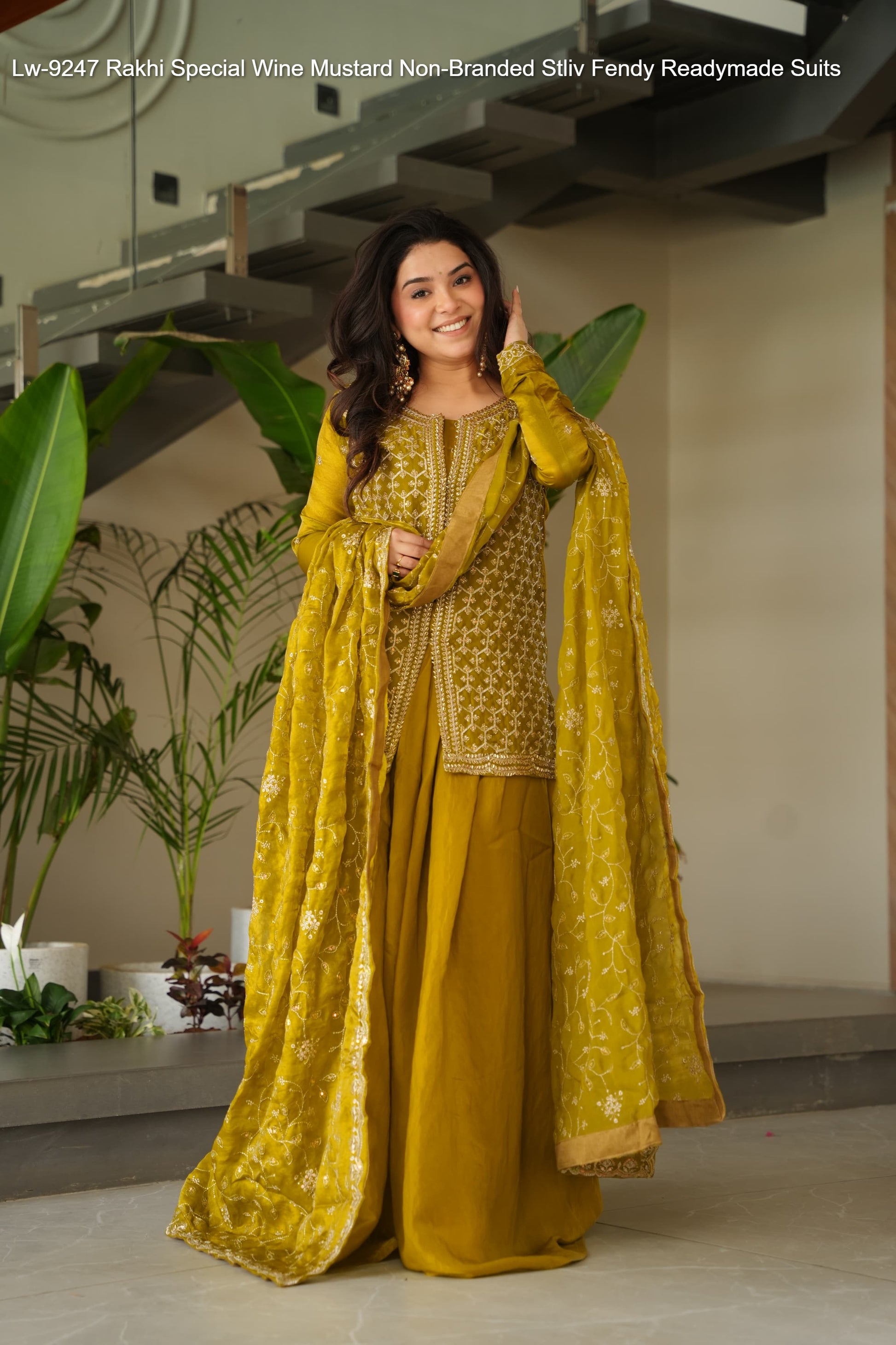 Lw-9247 Rakhi Special Wine Mustard Non-Branded Stliv Fendy Readymade Suits