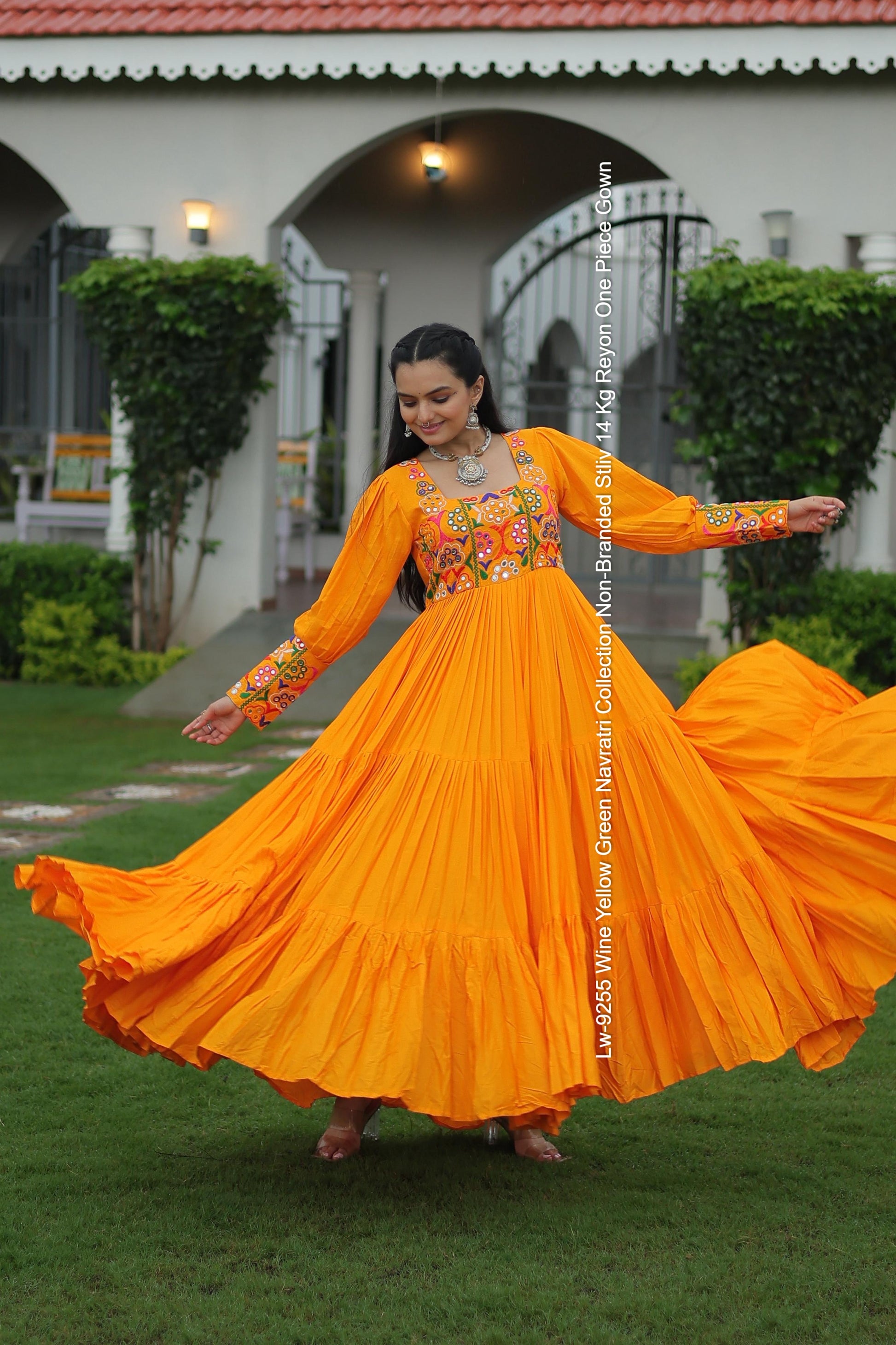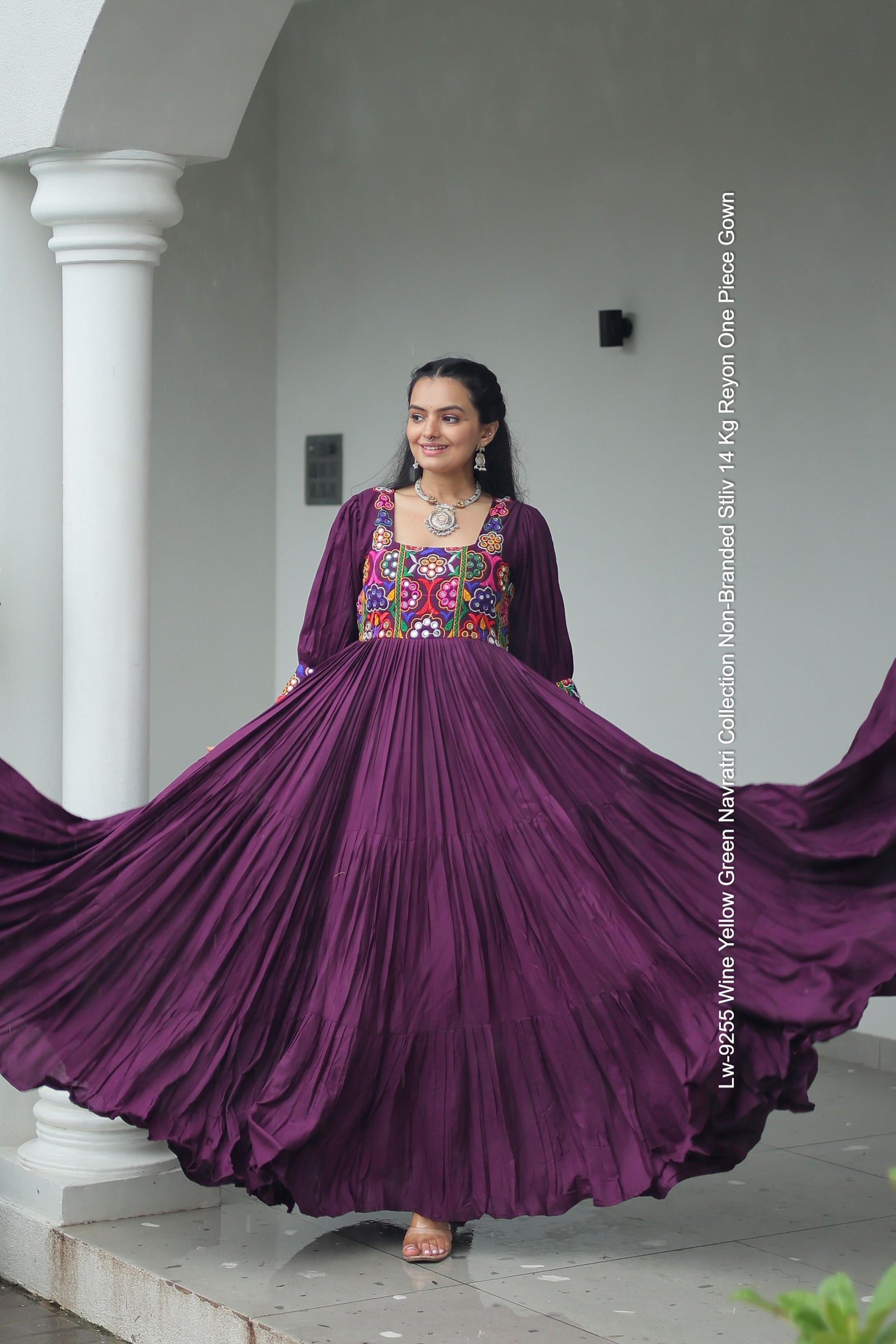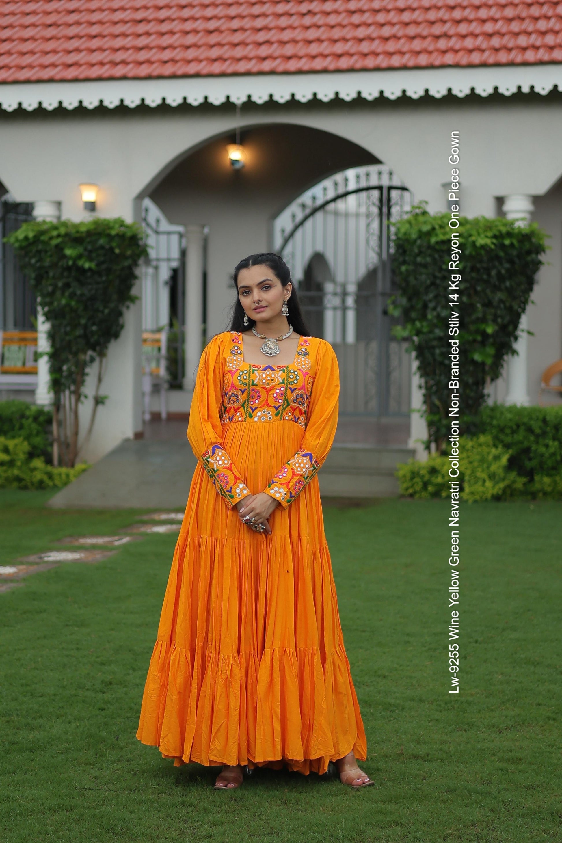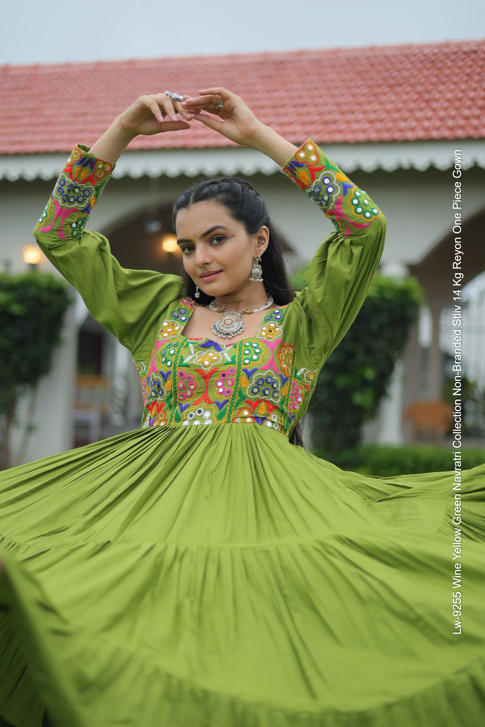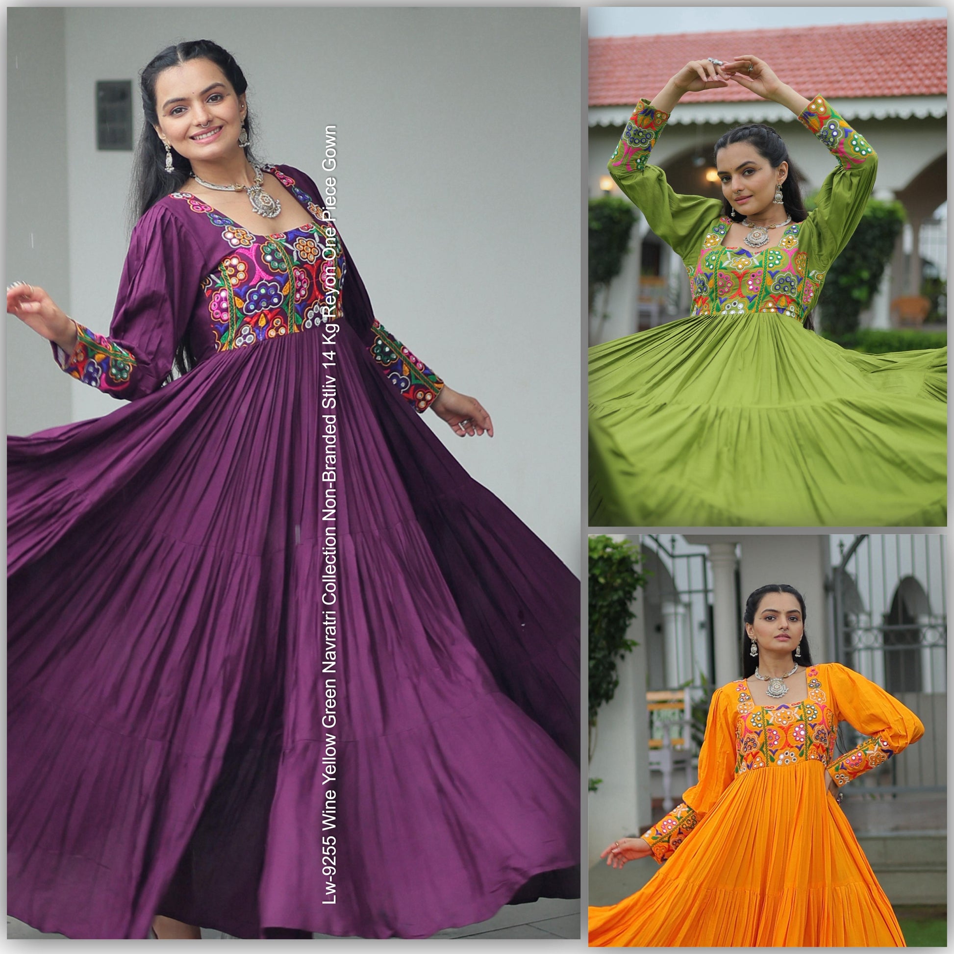 - Lw-9255 Wine Yellow Green Navratri Collection Non-Branded Stliv 14 Kg Reyon One Piece Gown Dealer Ahmedabad Surat Wholesale Gujarat India Lowest Price Best Quality Buy Purchase Shipping Kurta Salwaar Kameez Also free Cash on delivery